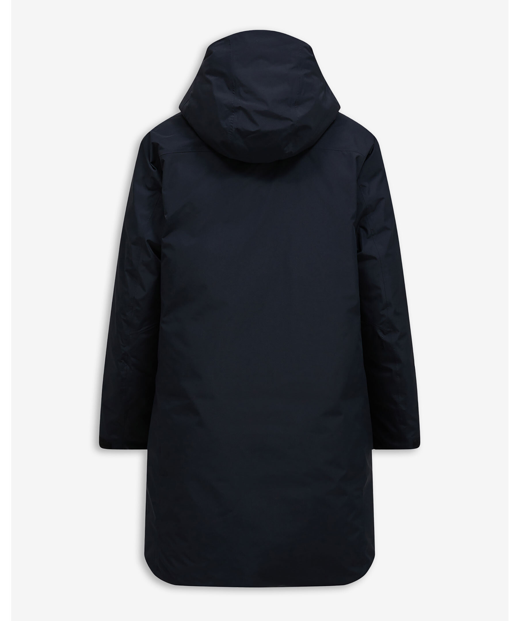 Svart lätt och varm fodrad skalparka från Peak Performance. Jackan stängs med dold tvåvägsdragkedja och tryckknappar och har två sidfickor med lock och dragkedja, dold bröstficka med dragkedja samt inre förvaringsfickor i mesh och huva med dragsko. Det tekniska 2-lagers tyget ger vind- och vattentätt skydd samtidigt som det andas även i de tuffaste förhållandena. Tillverkad i polyester med dunfyllning.