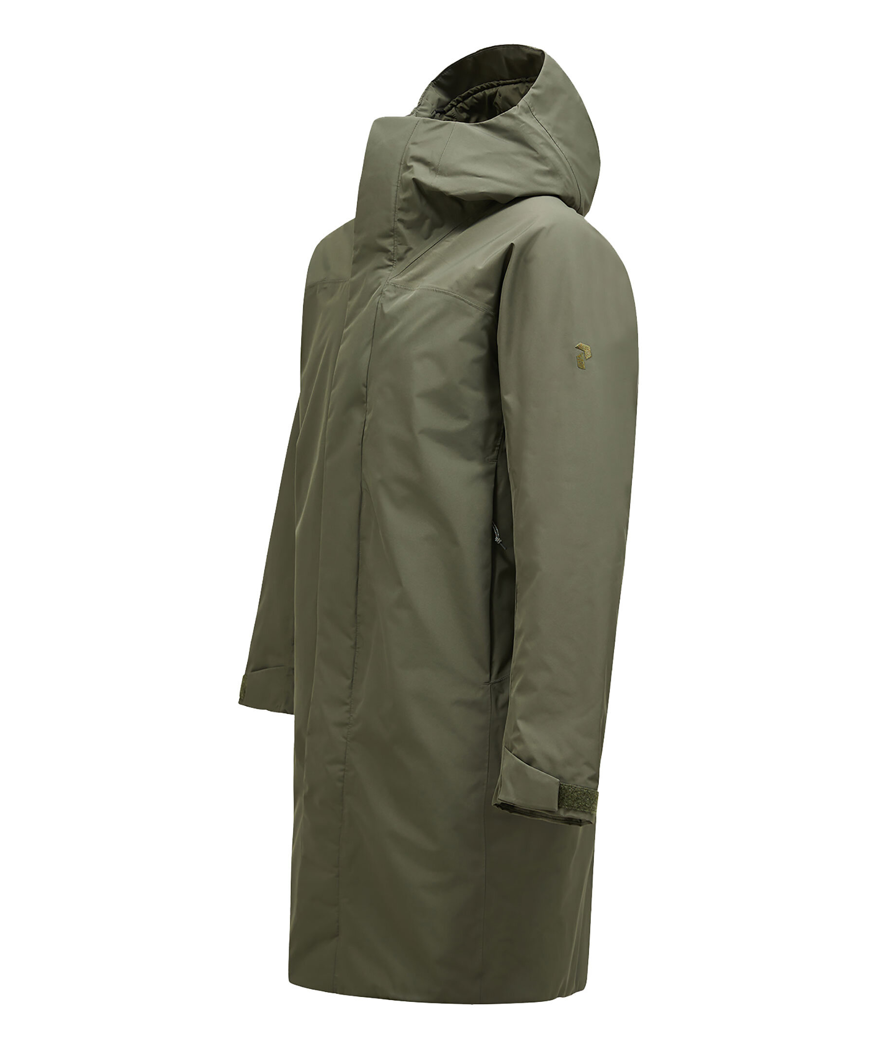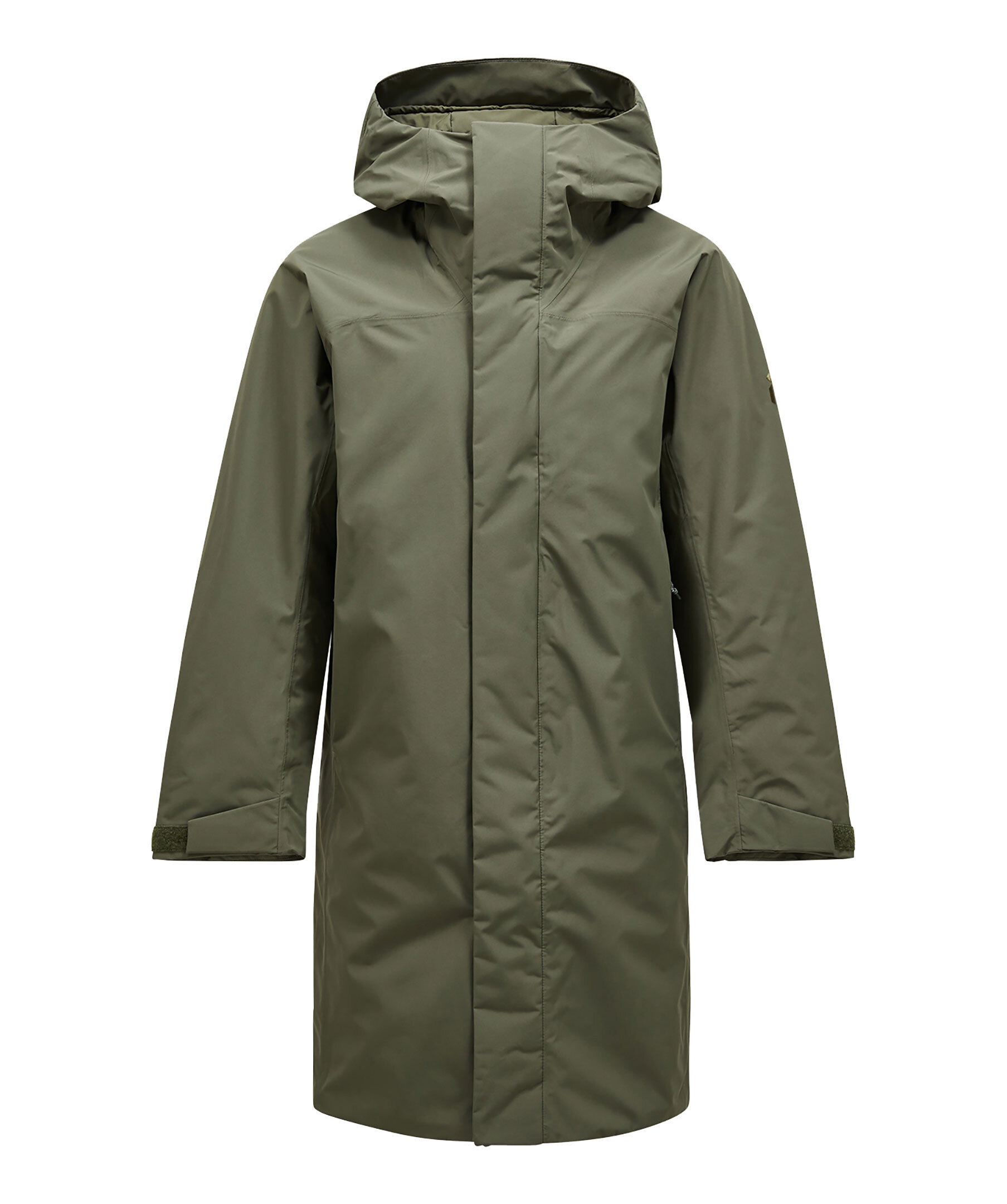 Grön parkajacka från Peak Performance. Jackan stängs med dold tvåvägsdragkedja och har justerbart ärmslut med kardborreband, två sidfickor med dragkedja, dold bröstficka och broderad logotyp på vänster ärm. Jackan är vind- och vattentät. Tillverkad i en polyesterblandning.
