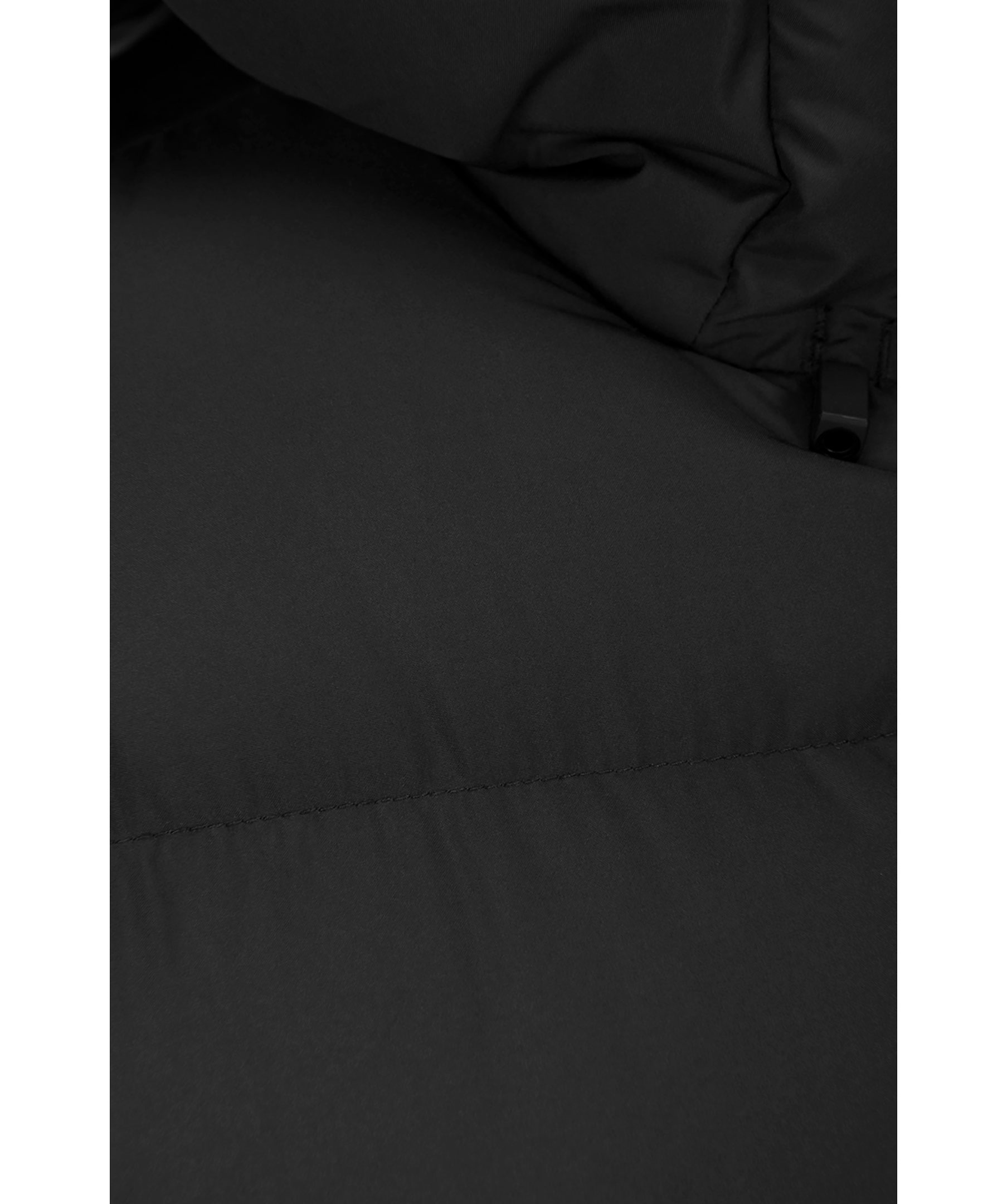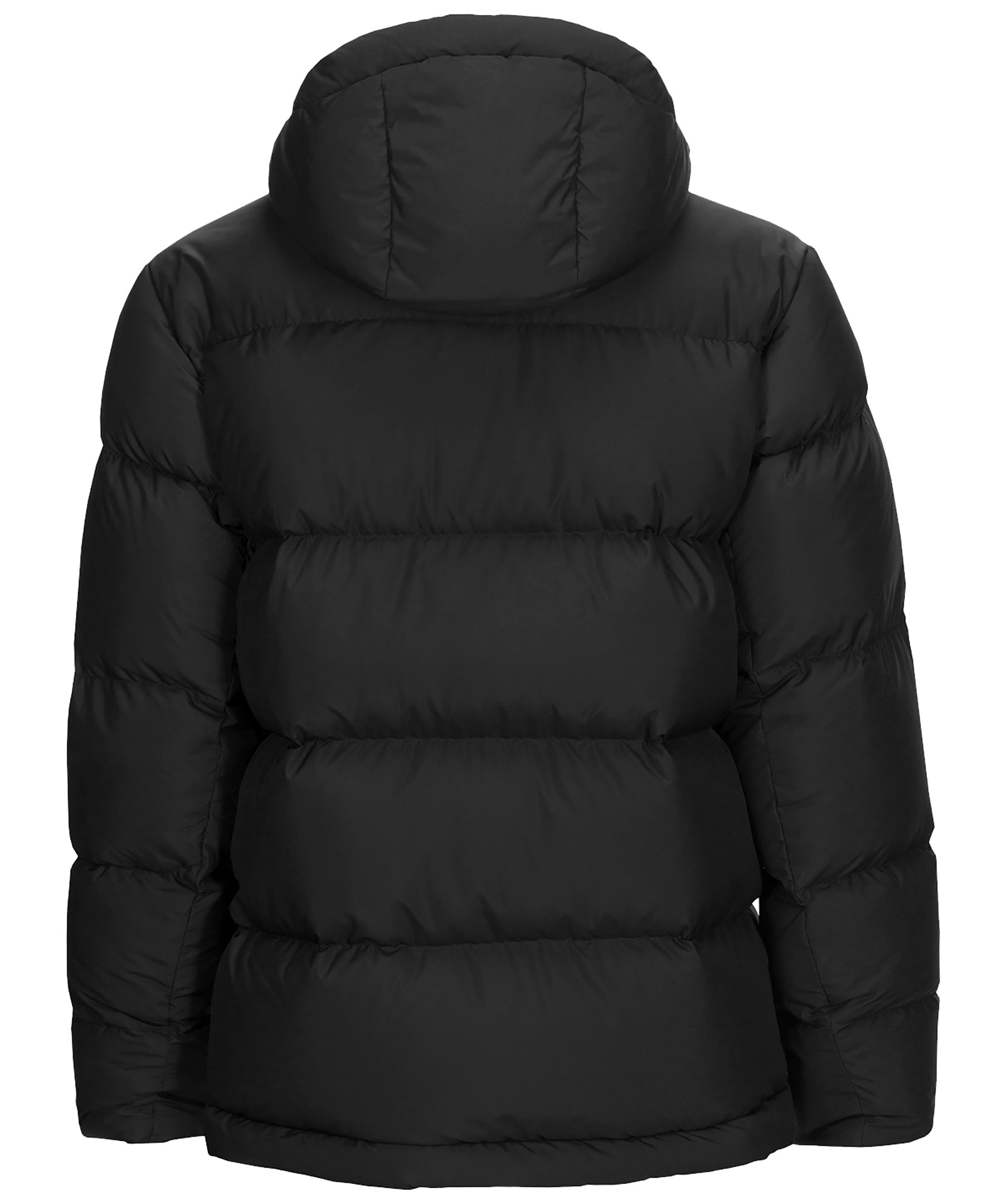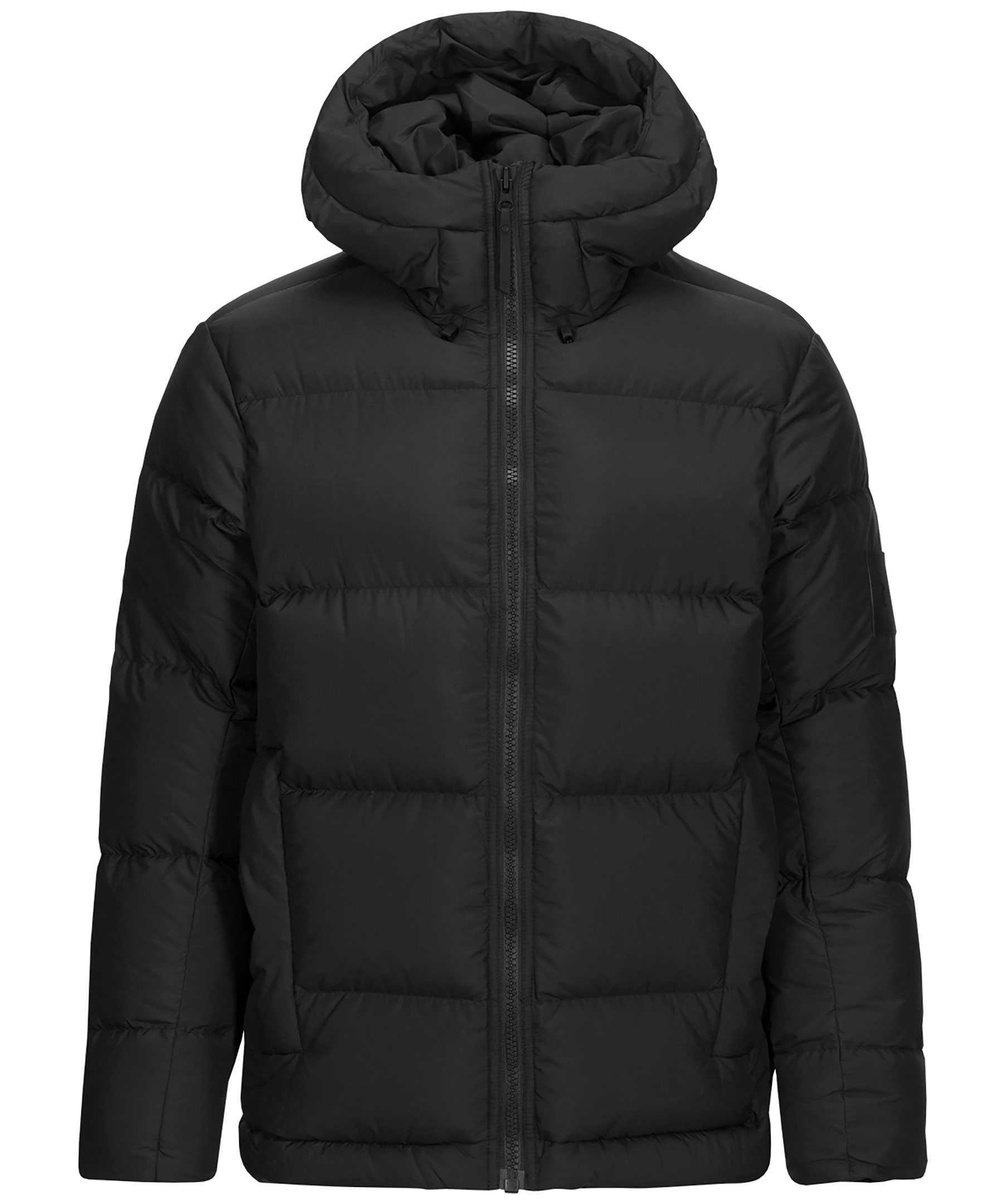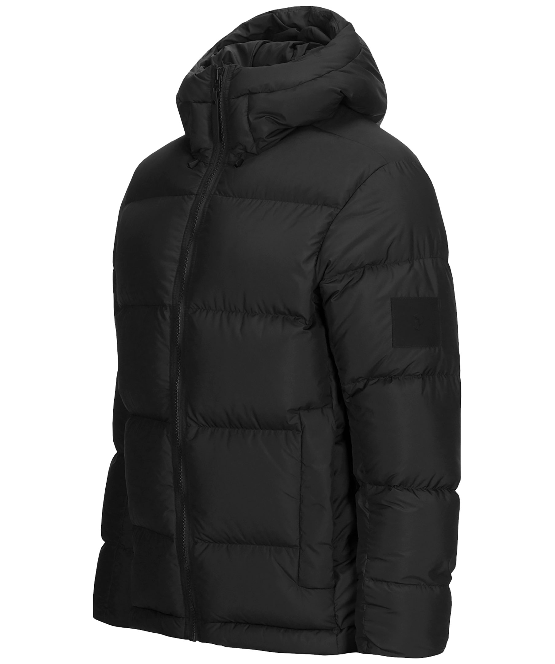 Svart dunjacka från Peak Performance. Justerbar midja för en figurnära men avslappnad passform. Två fickor fram och en innerficka. Dragsko i luvan samt muddar i ärmslut.