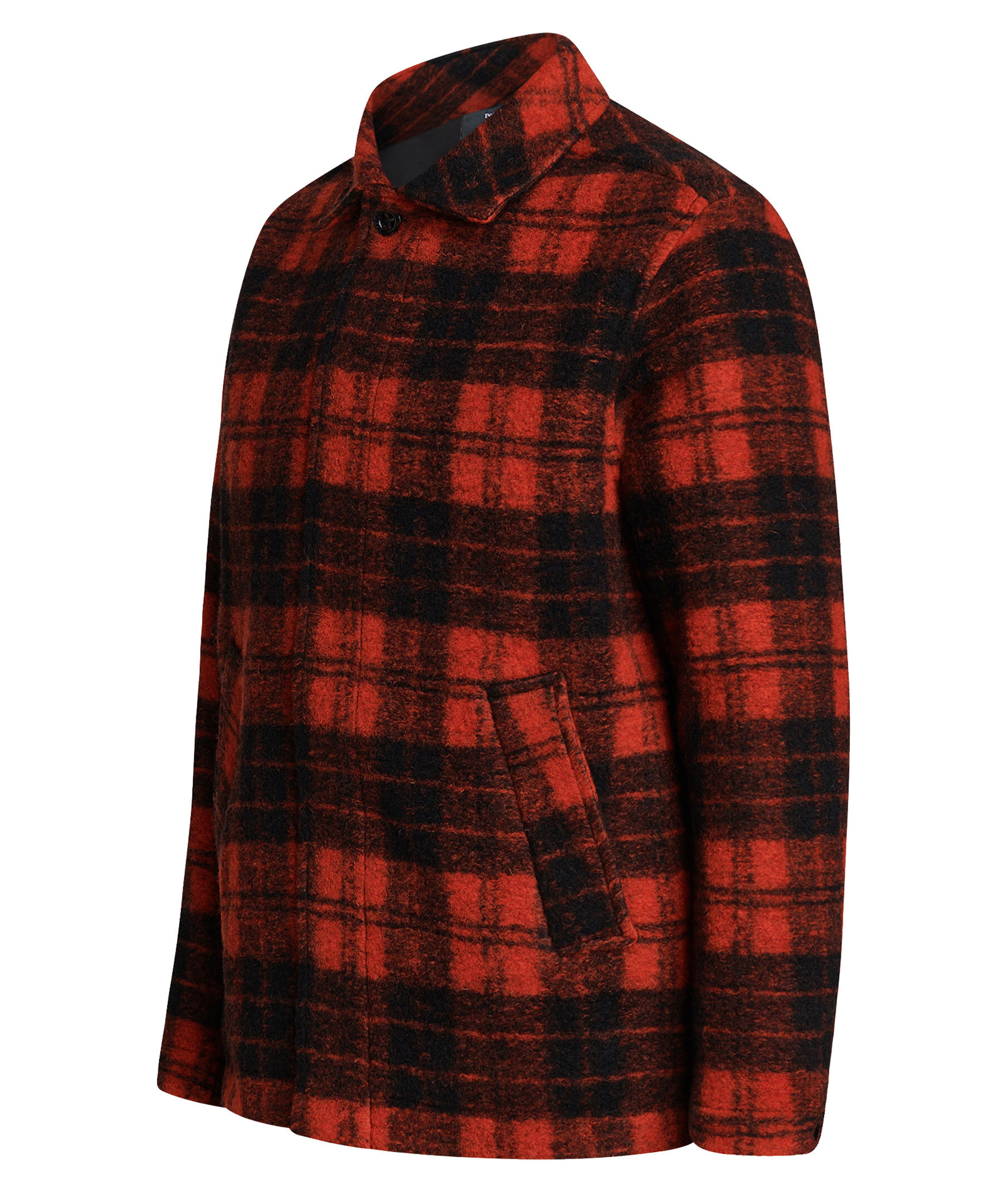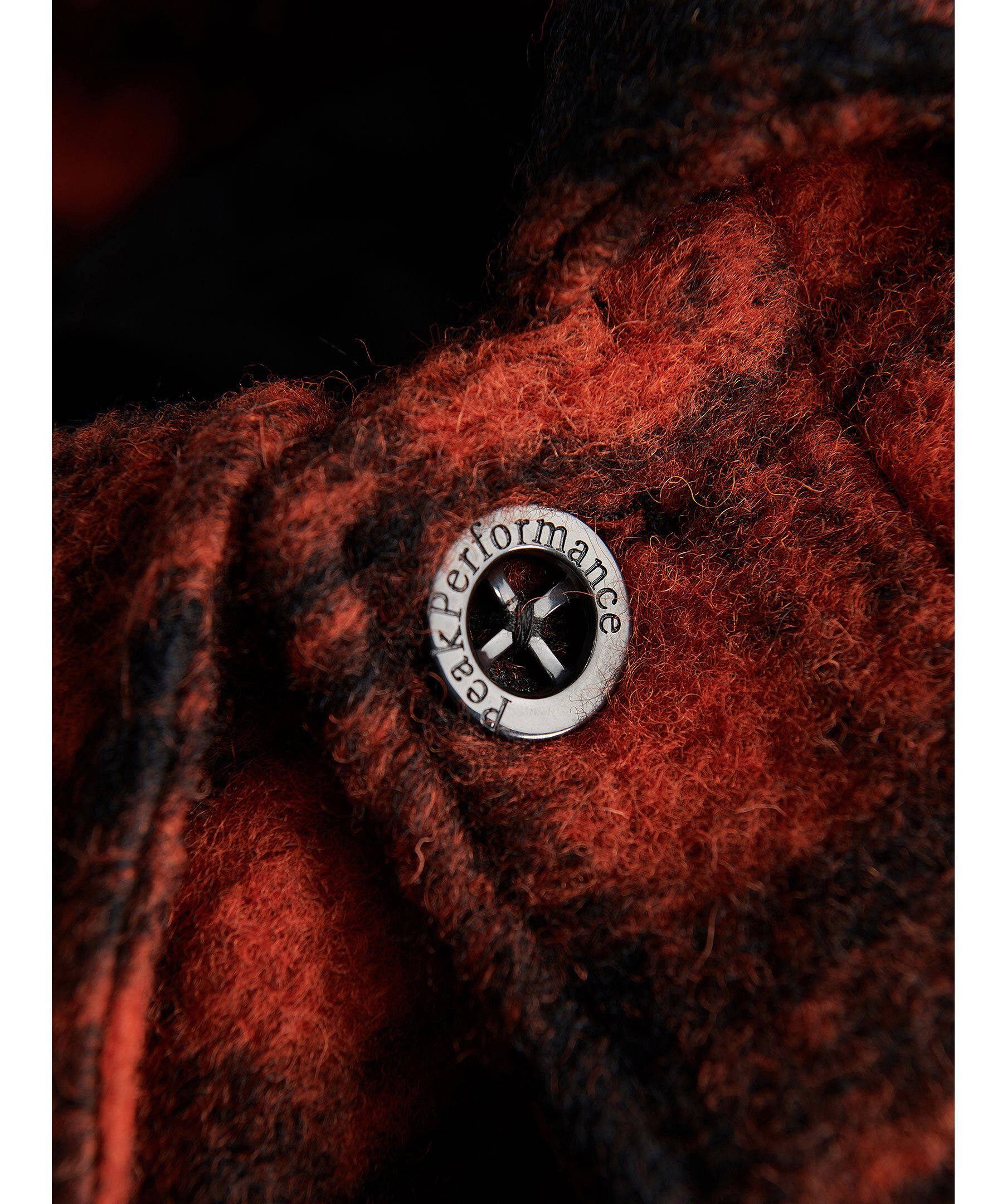 Orange och svart, rutig overshirt i ullblanding från Peak Performance. En modern version av flanellskjortan och är perfekt som ett extra vinterlager. Designad med en dold knäppning med tryckknappar för ett rent och snyggt utseende och en knapp med logotyp ingraverad längst upp vid kragen. Spetsig krage och öppna fickor i sidorna med knapp. Ärmfåll med knäppta slitsar. Helt fodrad och inre upphängningsögla i nacken.