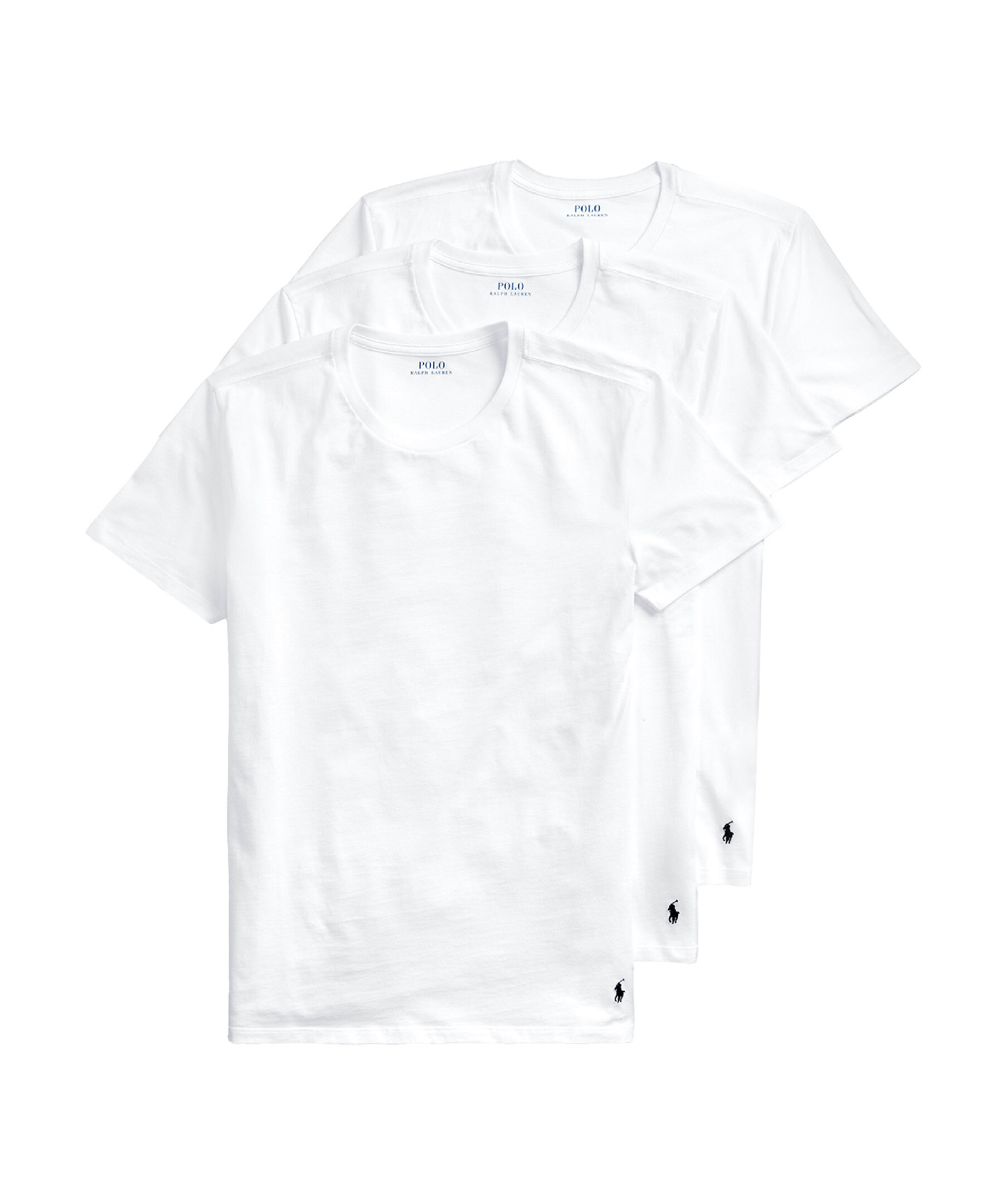3-pack vita t-shirts från Polo Ralph Lauren. T-shirtarna har rundad halsringning och liten broderad logotyp i nederkant. Tillverkade i bomull.