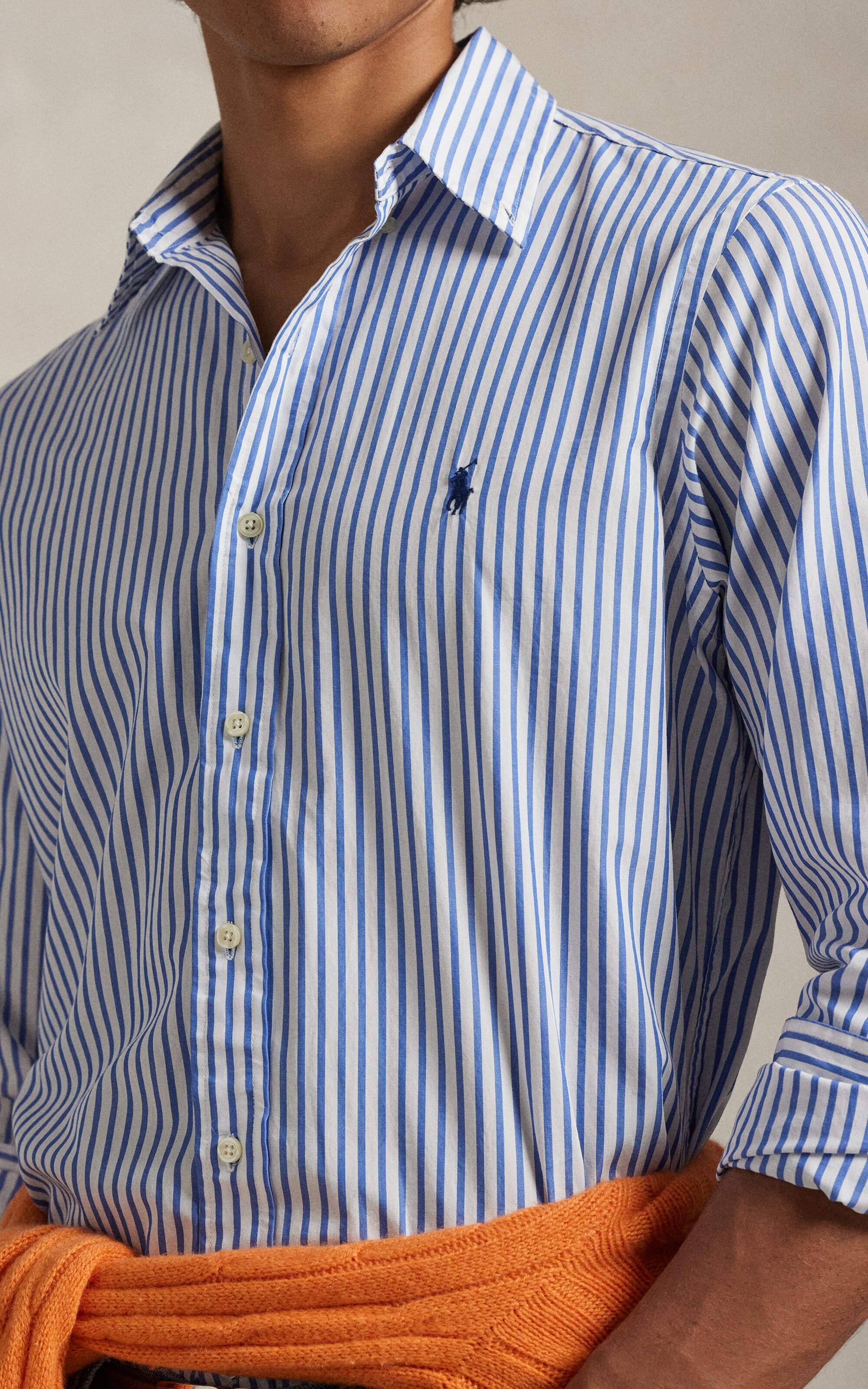 Blåvitrandig skjorta från Polo Ralph Lauren. Tillverkad av bomullstyg som är tvättat för extra mjukhet. På vänster bröst är den broderad med den ikoniska Ponyn för en signaturfinish.