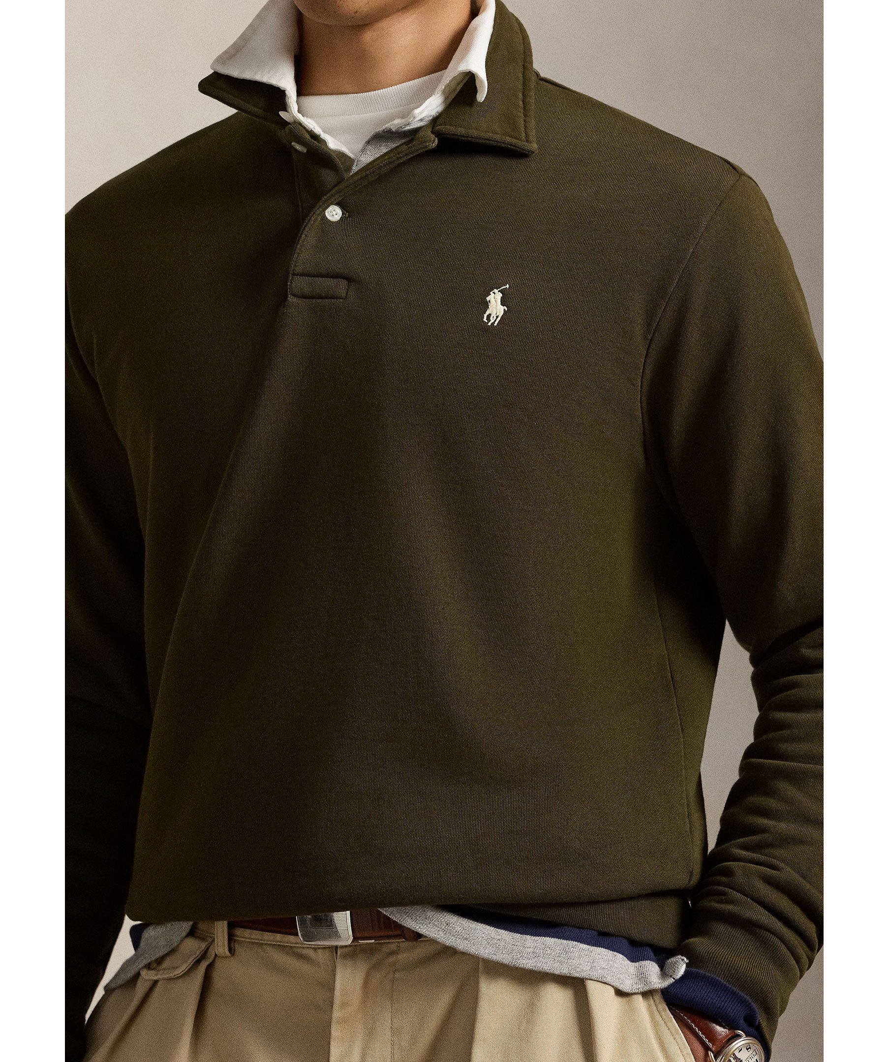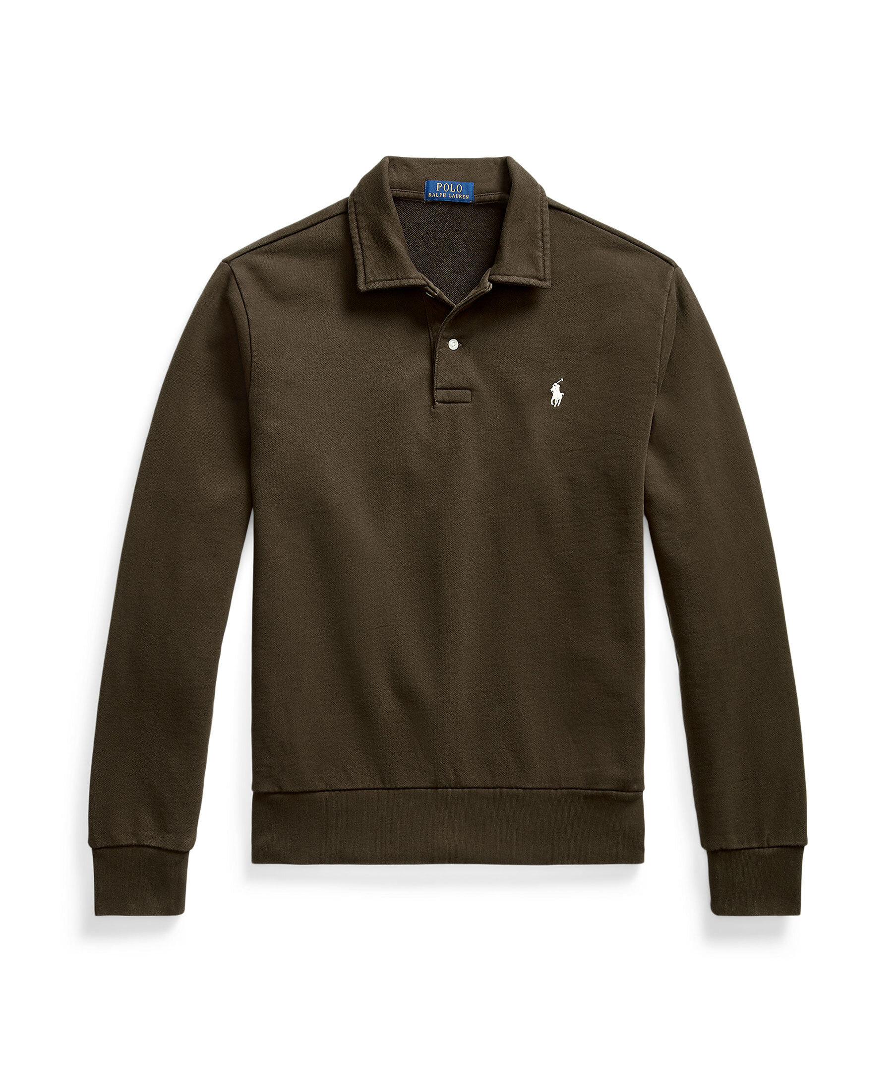 Mörkgrön, långärmad pikétröja från Polo Ralph Lauren. Tröjan har krage med två knappar, ribbstickade muddar vid ärm- och plaggslut samt broderad logotyp på bröstet. Tillverkad i bomull.