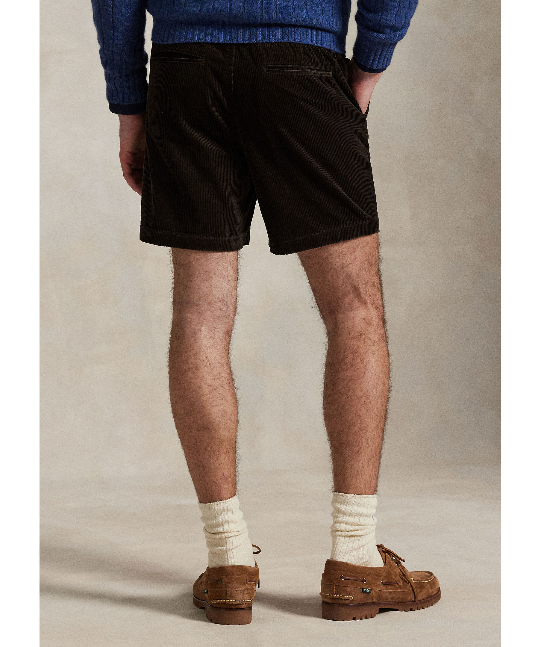 Mörkbruna manchestershorts från Polo Ralph Lauren. Två fickor framtill, bakfickor. Resår och dragsko i midjan. Broderad logotyp på vänster lår. Tillverkade i 100% bomull.
