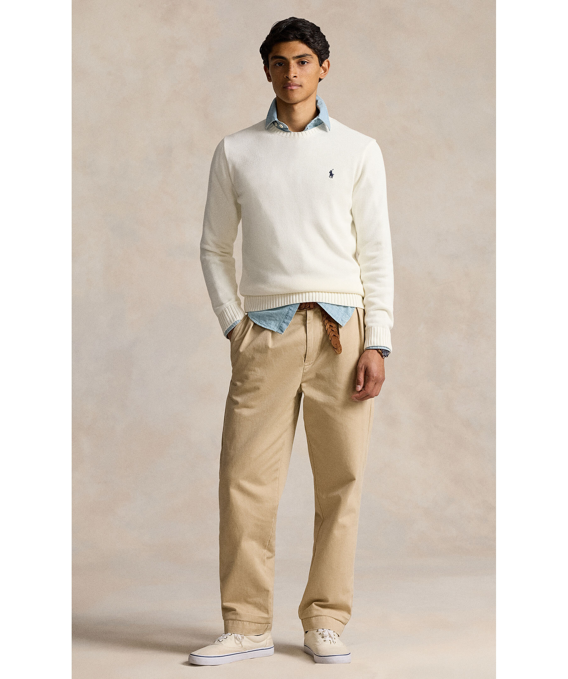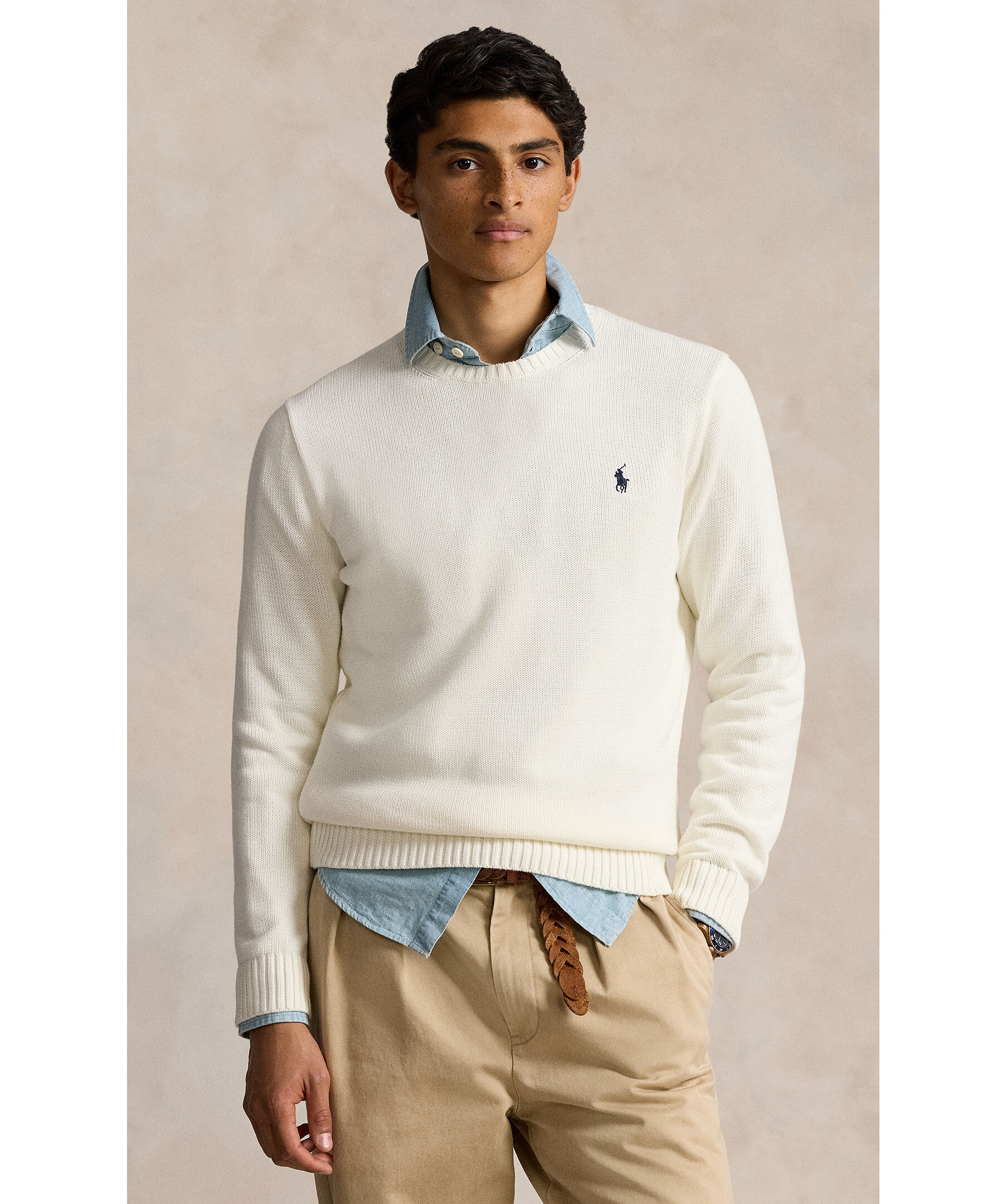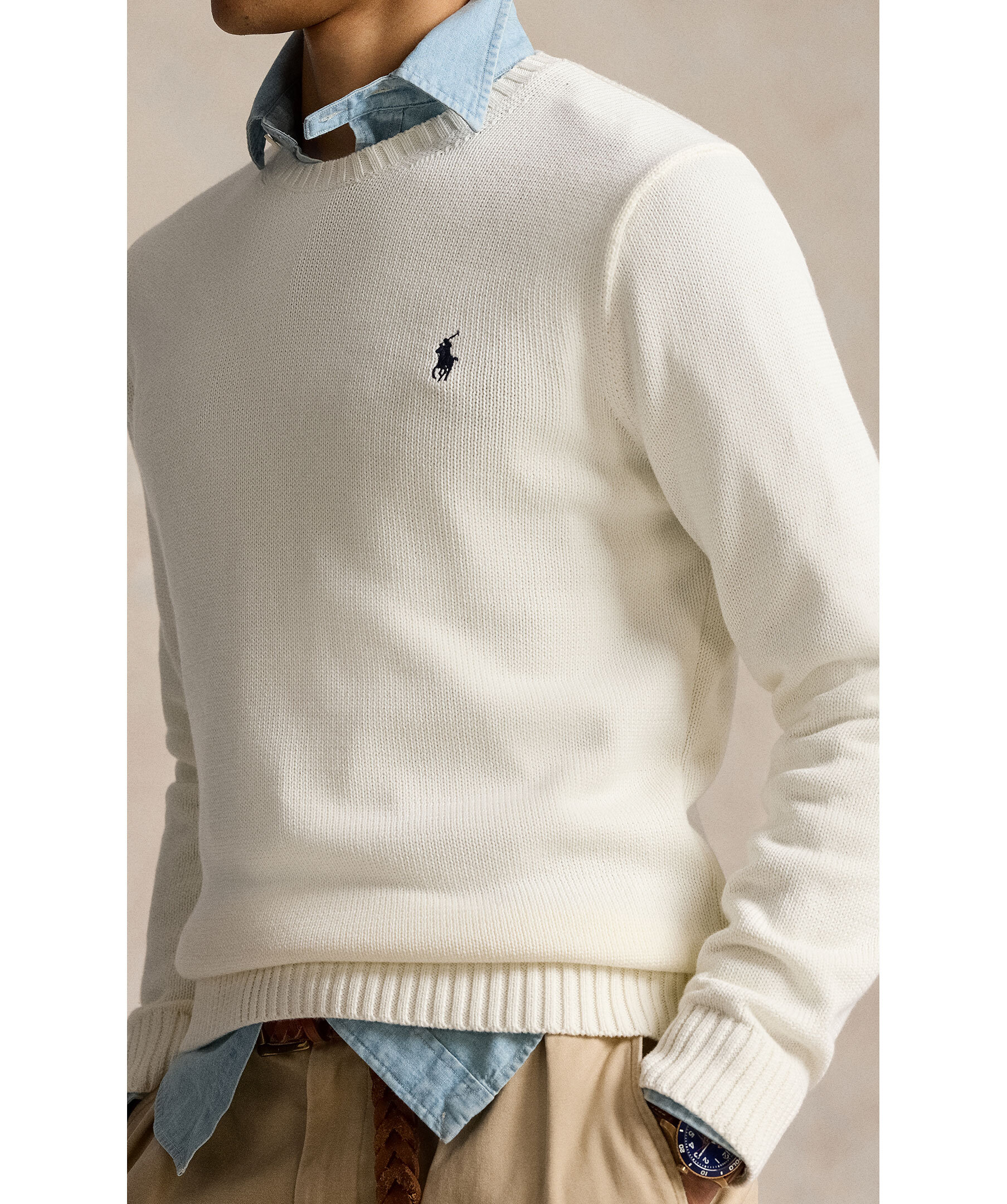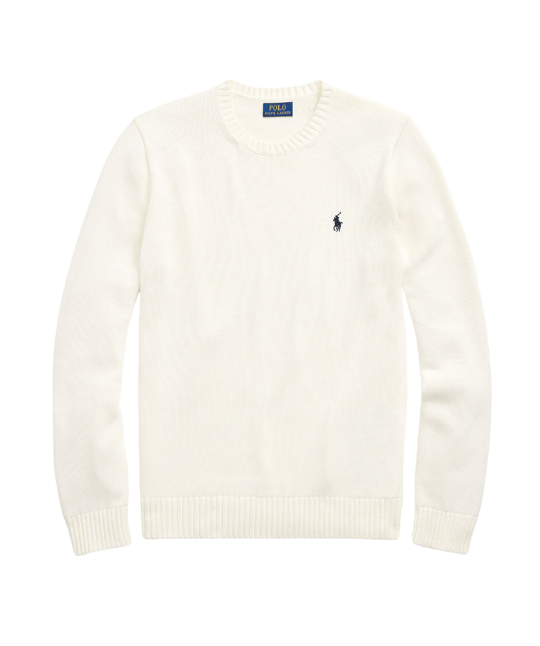 Benvit crewneck från Polo Ralph Lauren. Gjord i mjuk bomull och har en normal passform. Ribbstickade muddar och broderad logotyp på bröstet. Modellen är 185 cm lång och har på sig strl M.