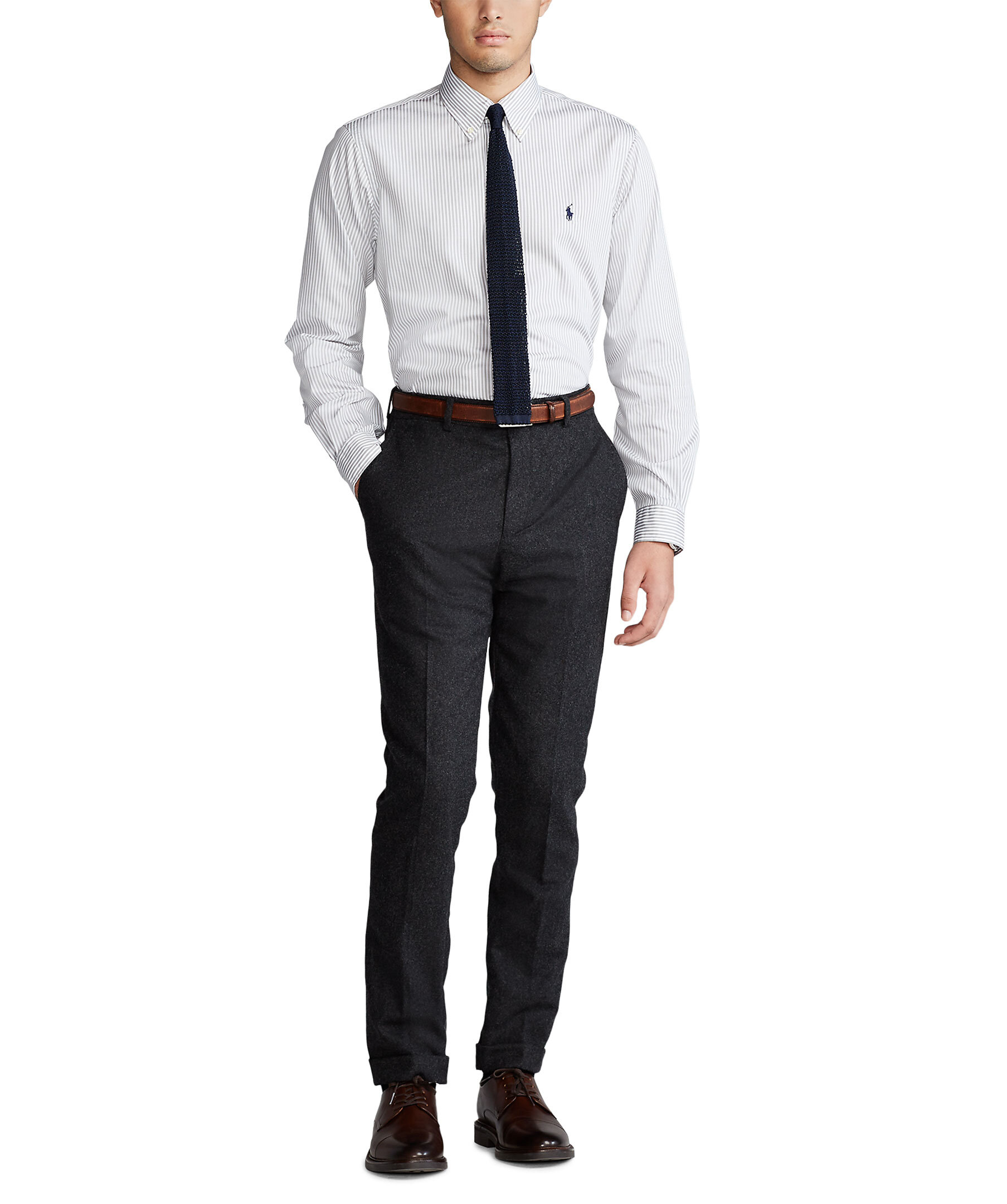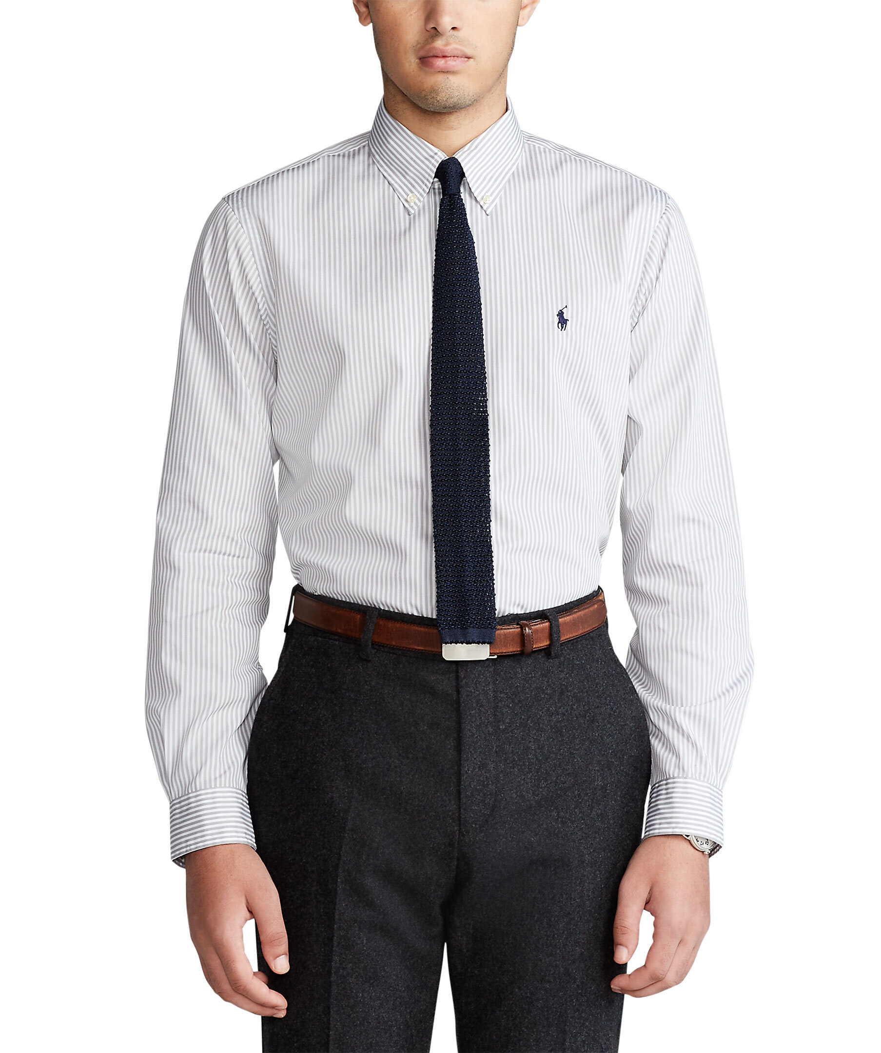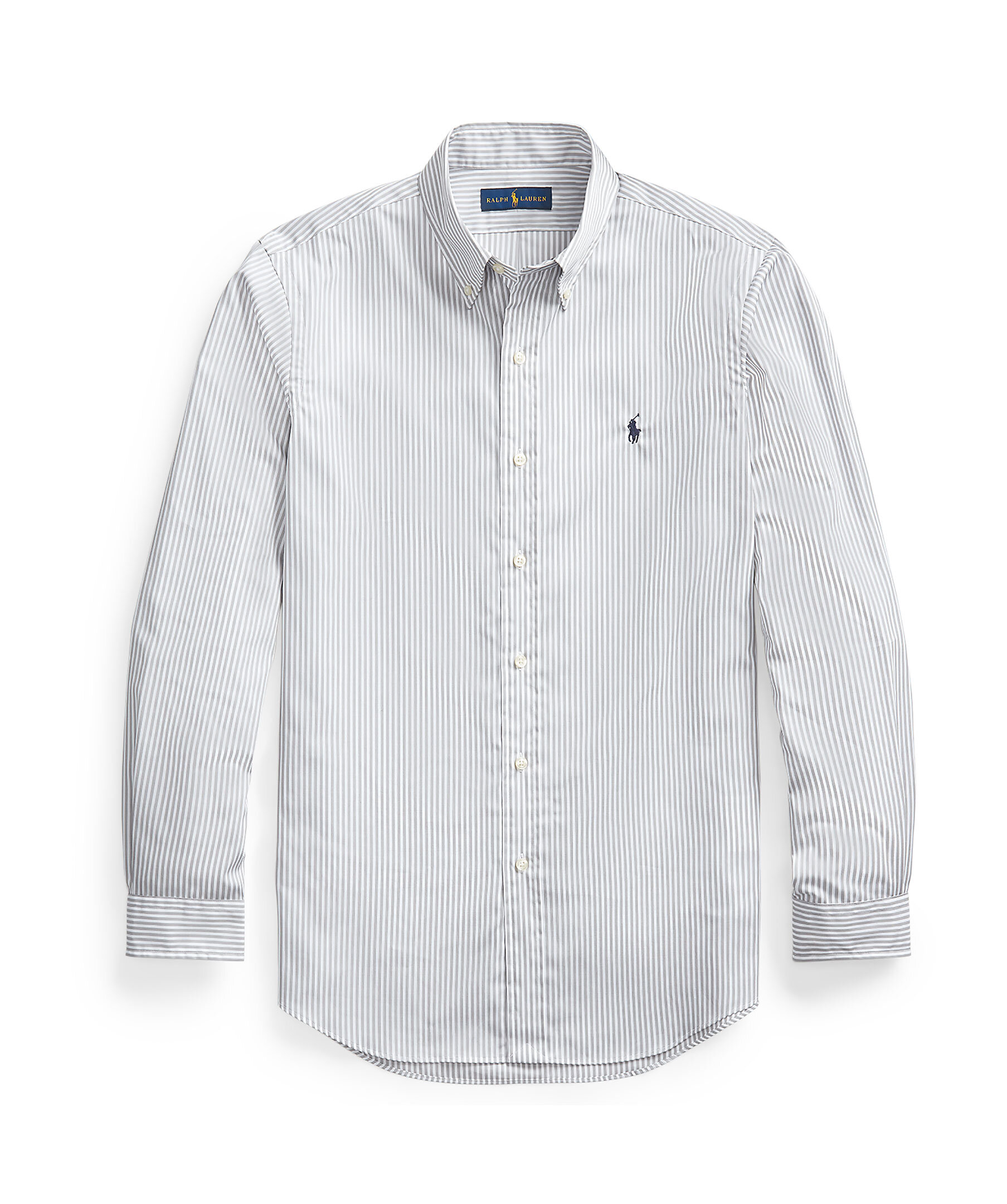 Grå och vitrandig skjorta från Polo Ralph Lauren i custom fit. Skjortan är gjord i ett stretchigt bomullstyg har en button down krage och broderad logga på bröstet.