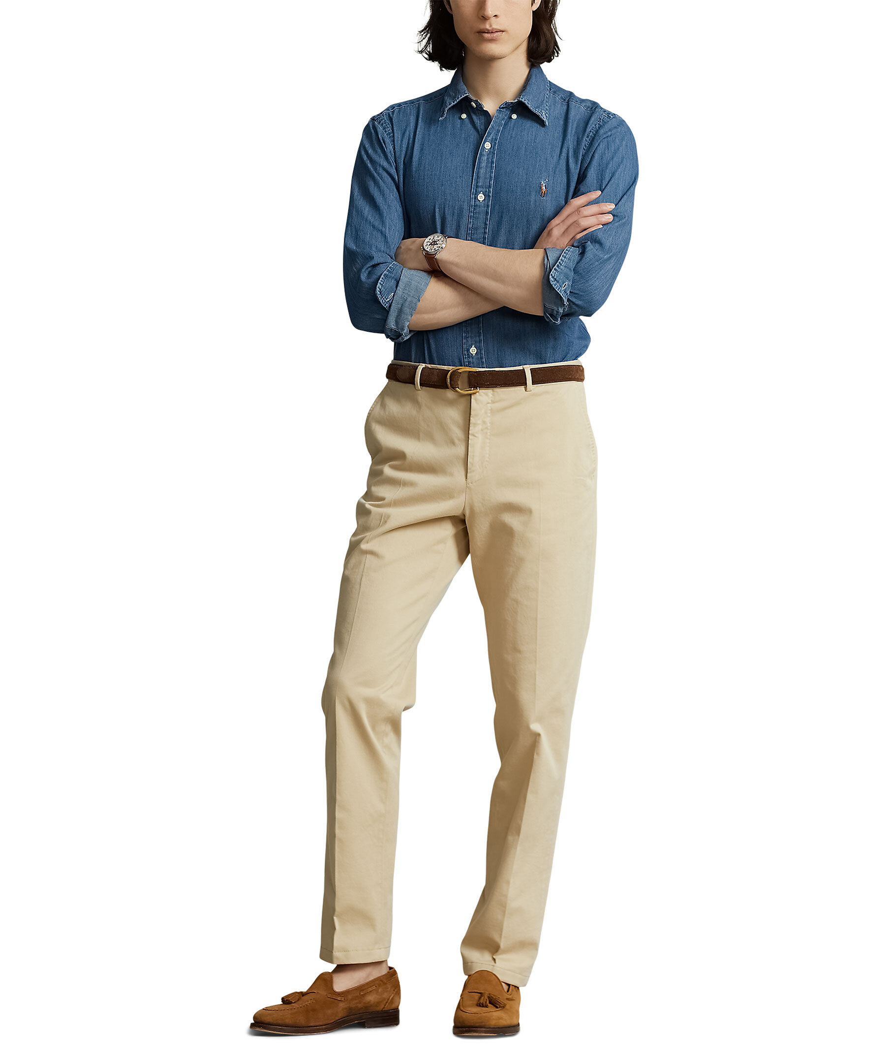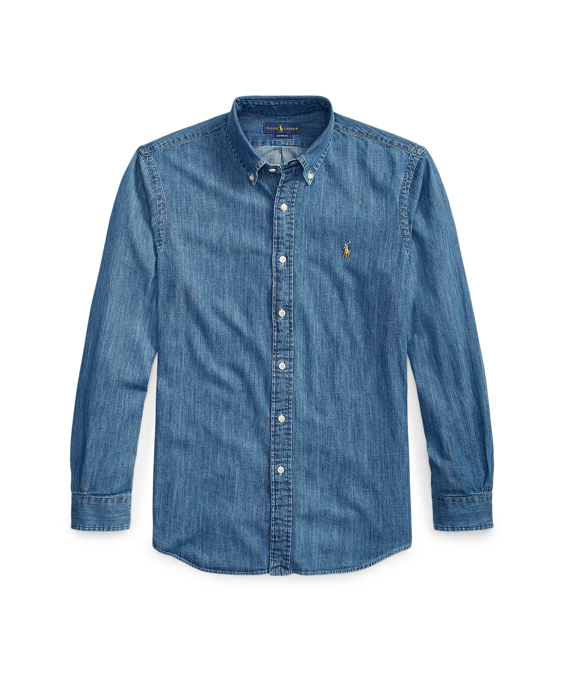 Klassisk blå denim skjorta från Polo Ralph Lauren i custom fit. Skräddarsydd genom midjan. Button-down krage med knappslå. Långa ärmar med manschetter med knäppning. Delat bak ok med ett veck ger en bekväm passform och ett större rörelseomfång. Broderad signaturponny på vänster bröst. Tillverkad i 100% bomull.