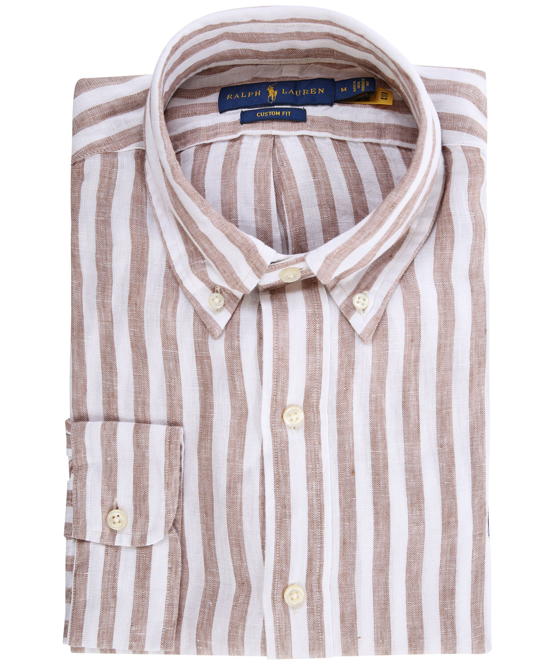 Beige och vit randig linneskjorta från Polo Ralph Lauren. Tillverkad i 100% linne. Custom fit, button down krage, broderad logotyp på bröstet. *100% linne *Custom fit *Button down krage