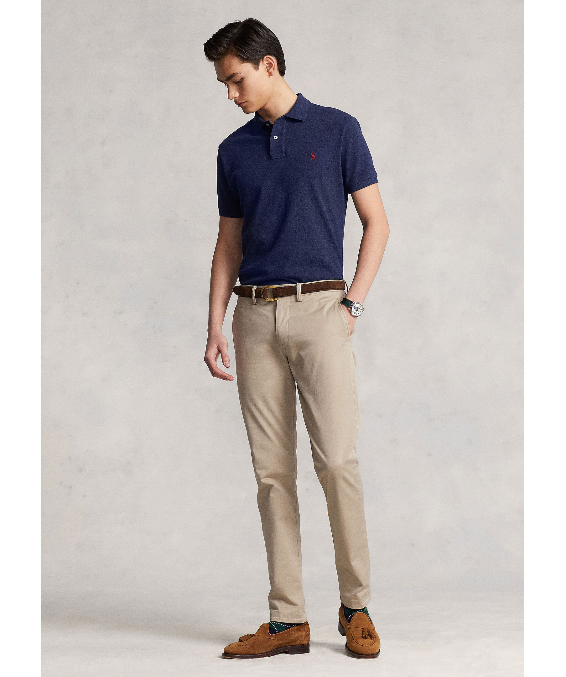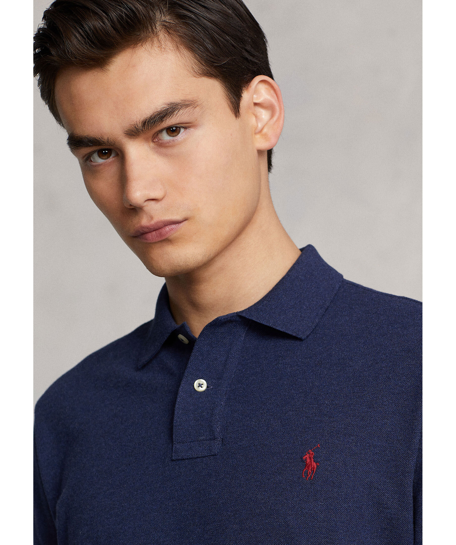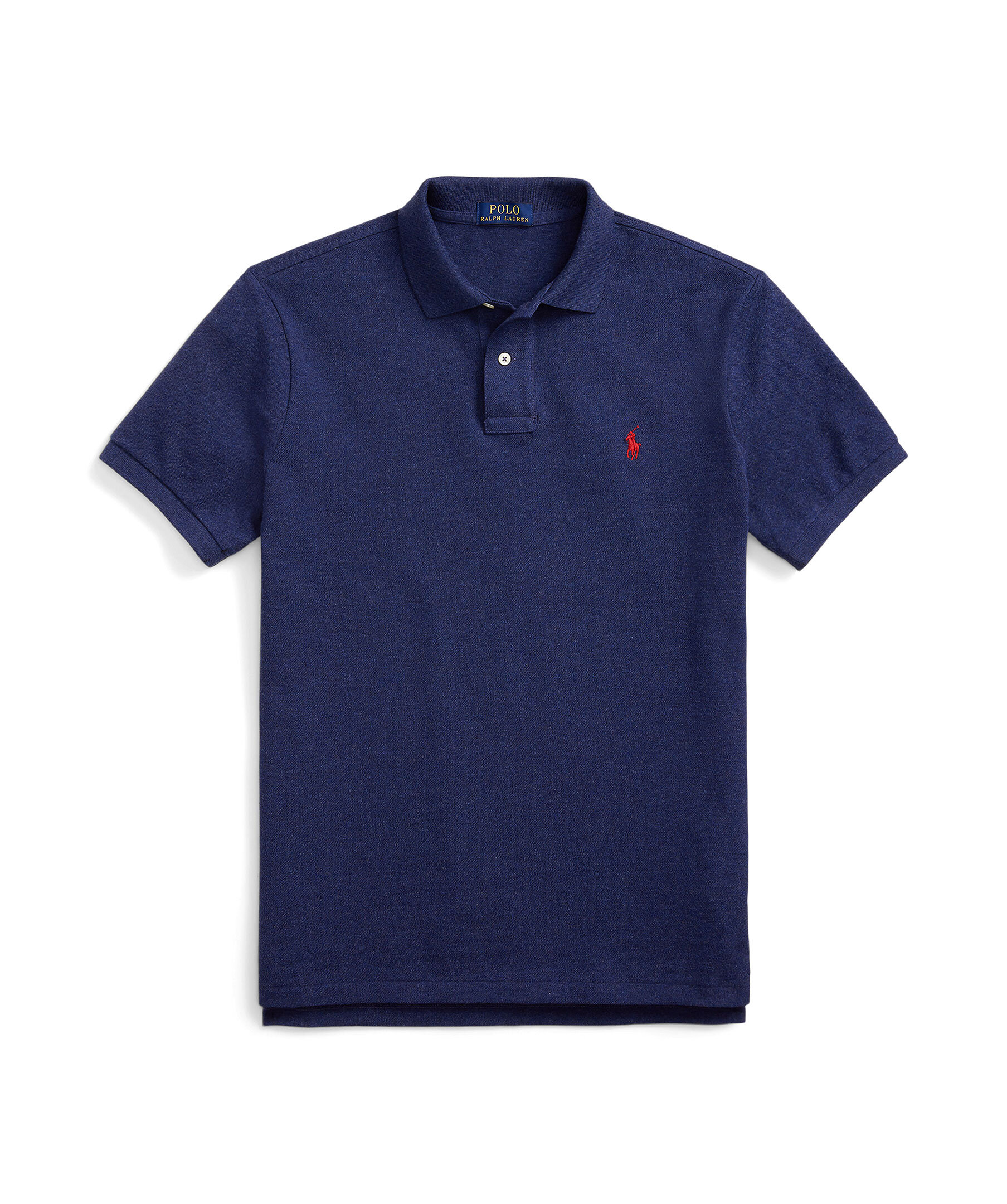 Mörkblå piké från Polo Ralph Lauren. Broderad logotyp på vänster bröst. Ribbstickad krage, knäppning med två knappar. Tillverkad i 100% bomull. Korta slitsar i sidorna.