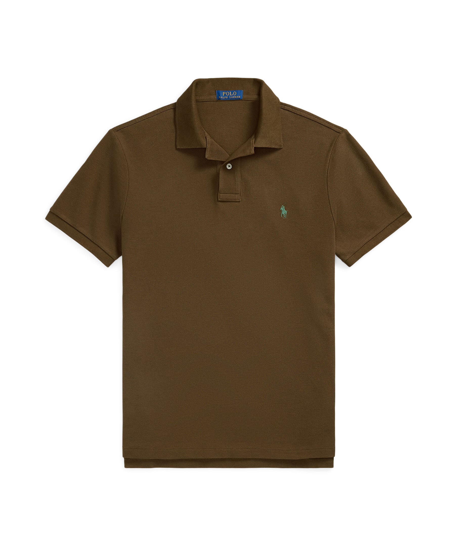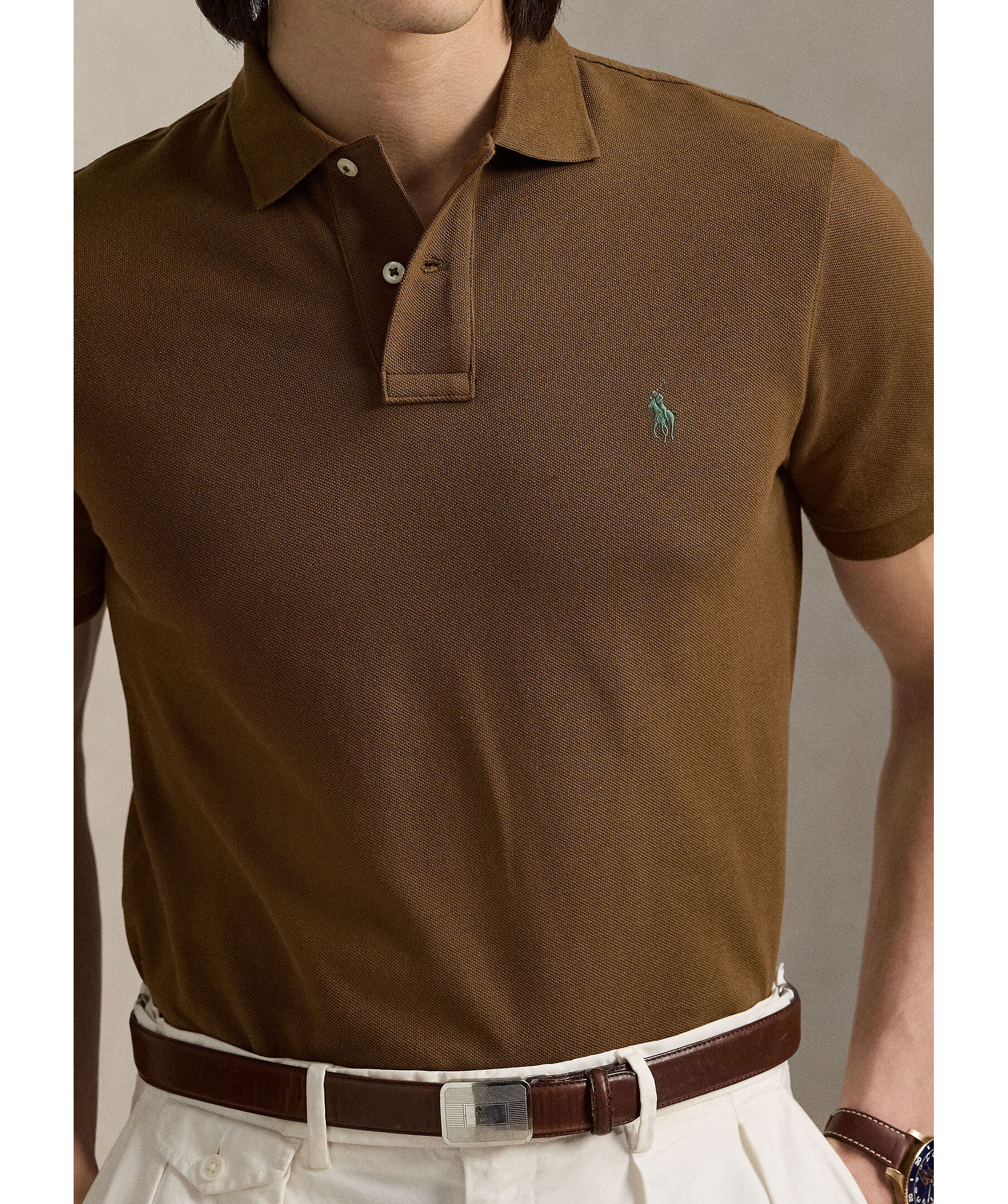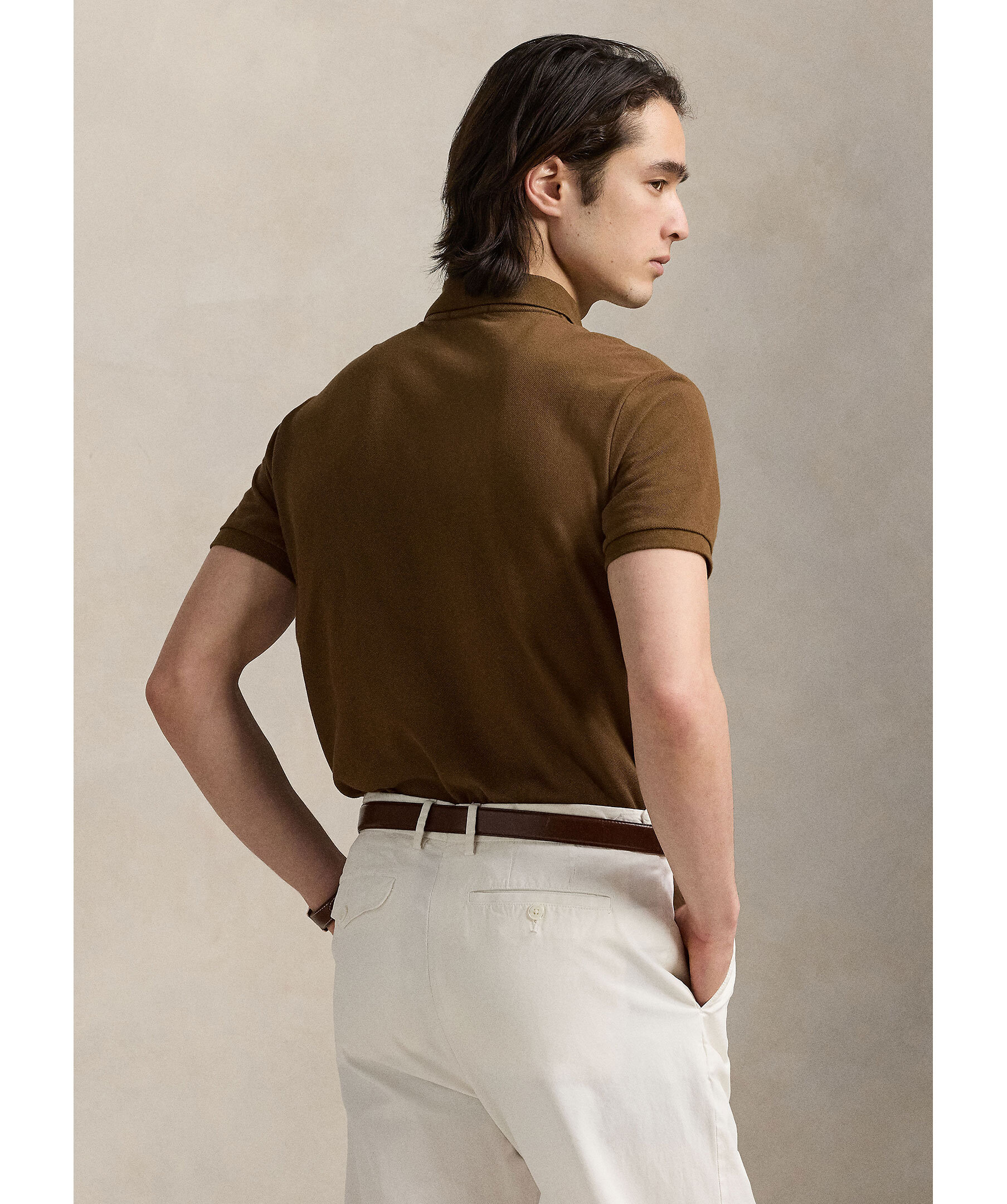 Mörkbrun piké från Polo Ralph Lauren. Broderad logotyp på vänster bröst. Ribbstickad krage, knäppning med två knappar. Korta slitsar i sidorna. Tillverkad i 100% bomull.