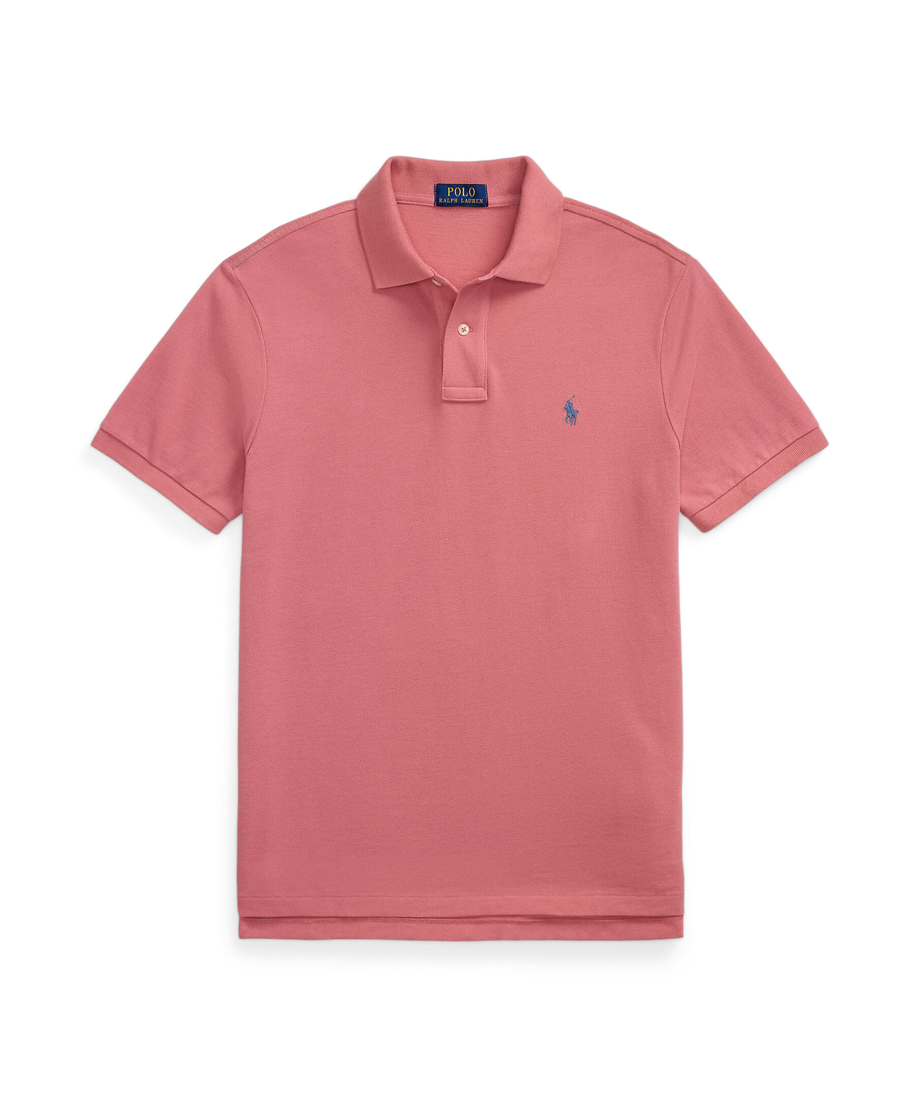 Röd piké från Polo Ralph Lauren. Broderad logotyp på vänster bröst. Ribbstickad krage, knäppning med två knappar. Korta slitsar i sidorna. Tillverkad i 100% bomull.
