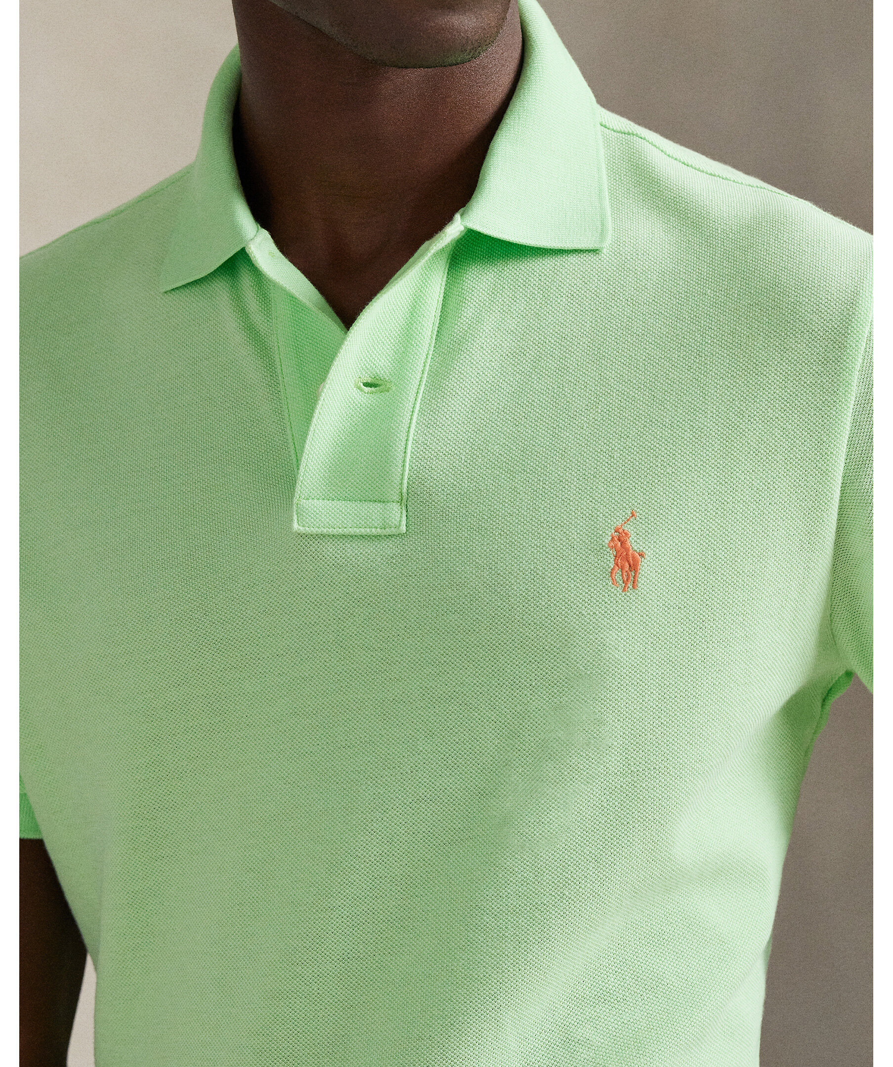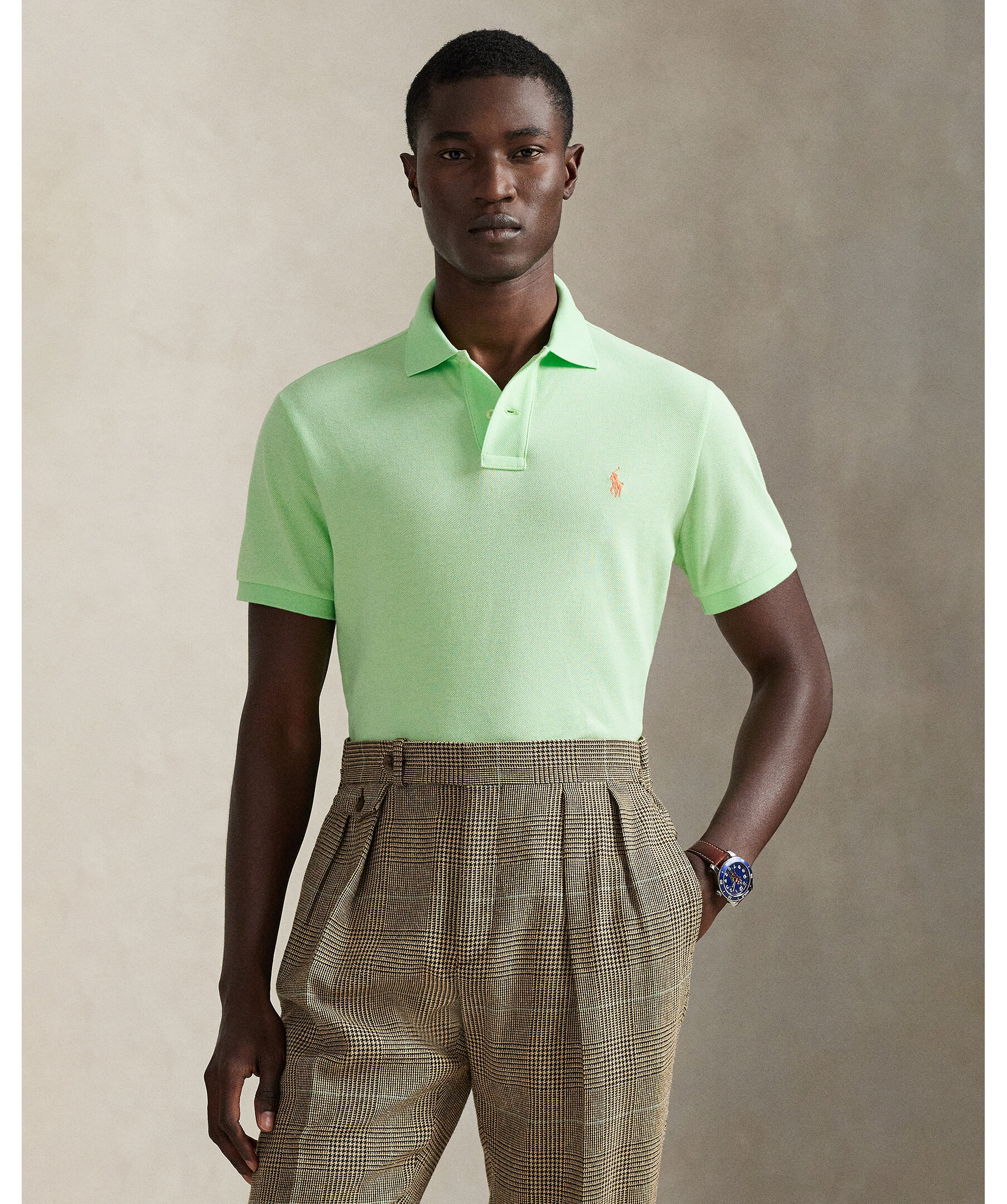 Grön piké från Polo Ralph Lauren. Denna version med detaljer är tillverkad av vår mycket andningsbara bomullsmesh, vilket ger ett texturerat utseende och en mjuk känsla.