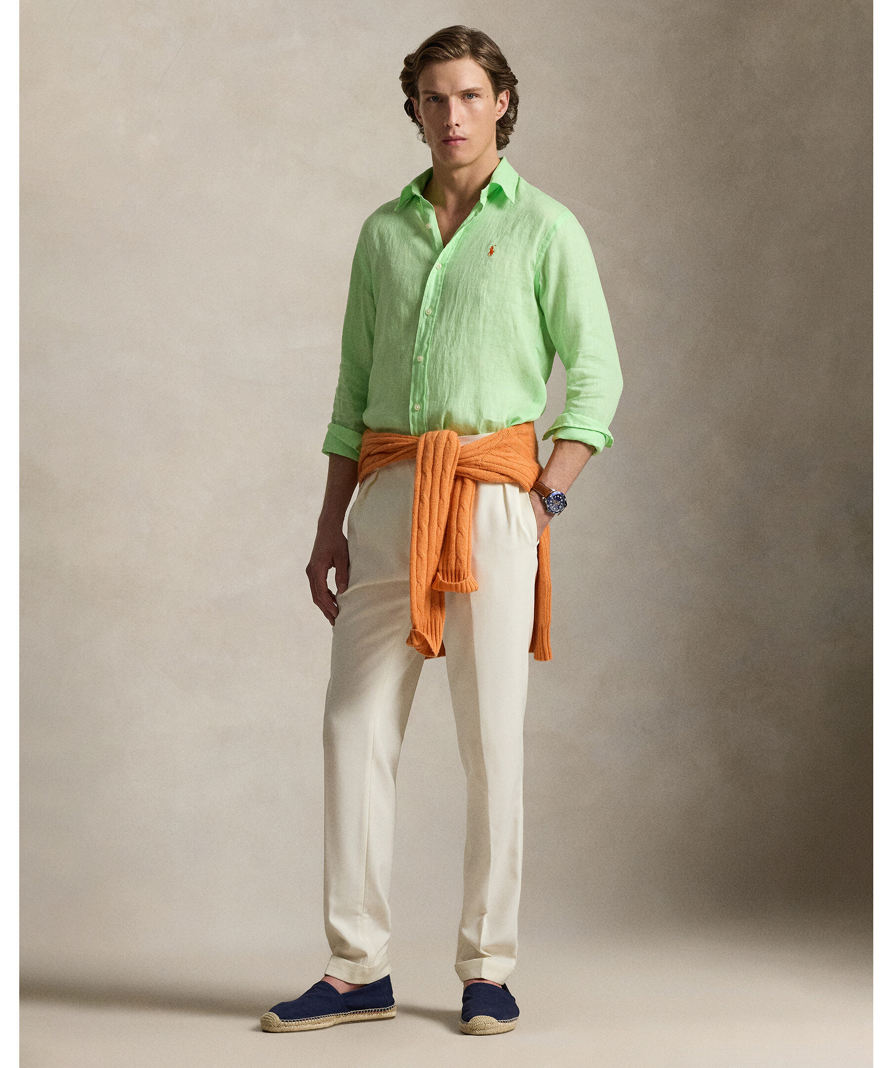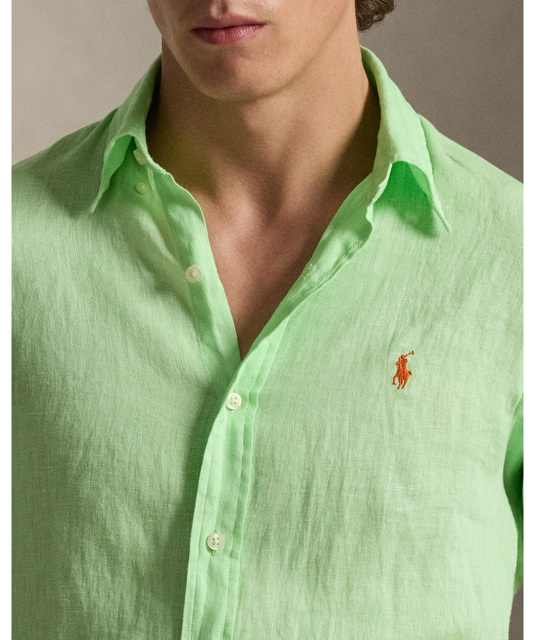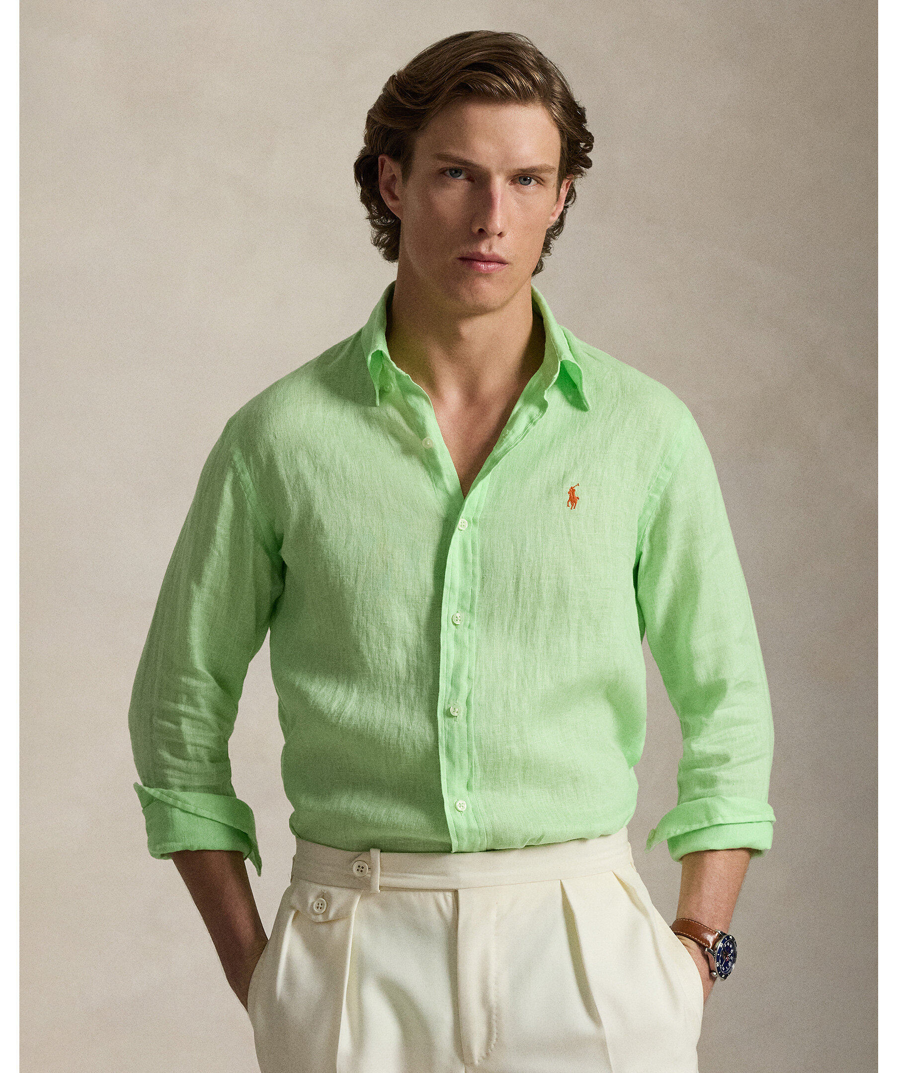 Grön linneskjorta från Polo Ralph Lauren. Lätt, andningsbart linnematerial gör den här skjortan perfekt för varma dagar.