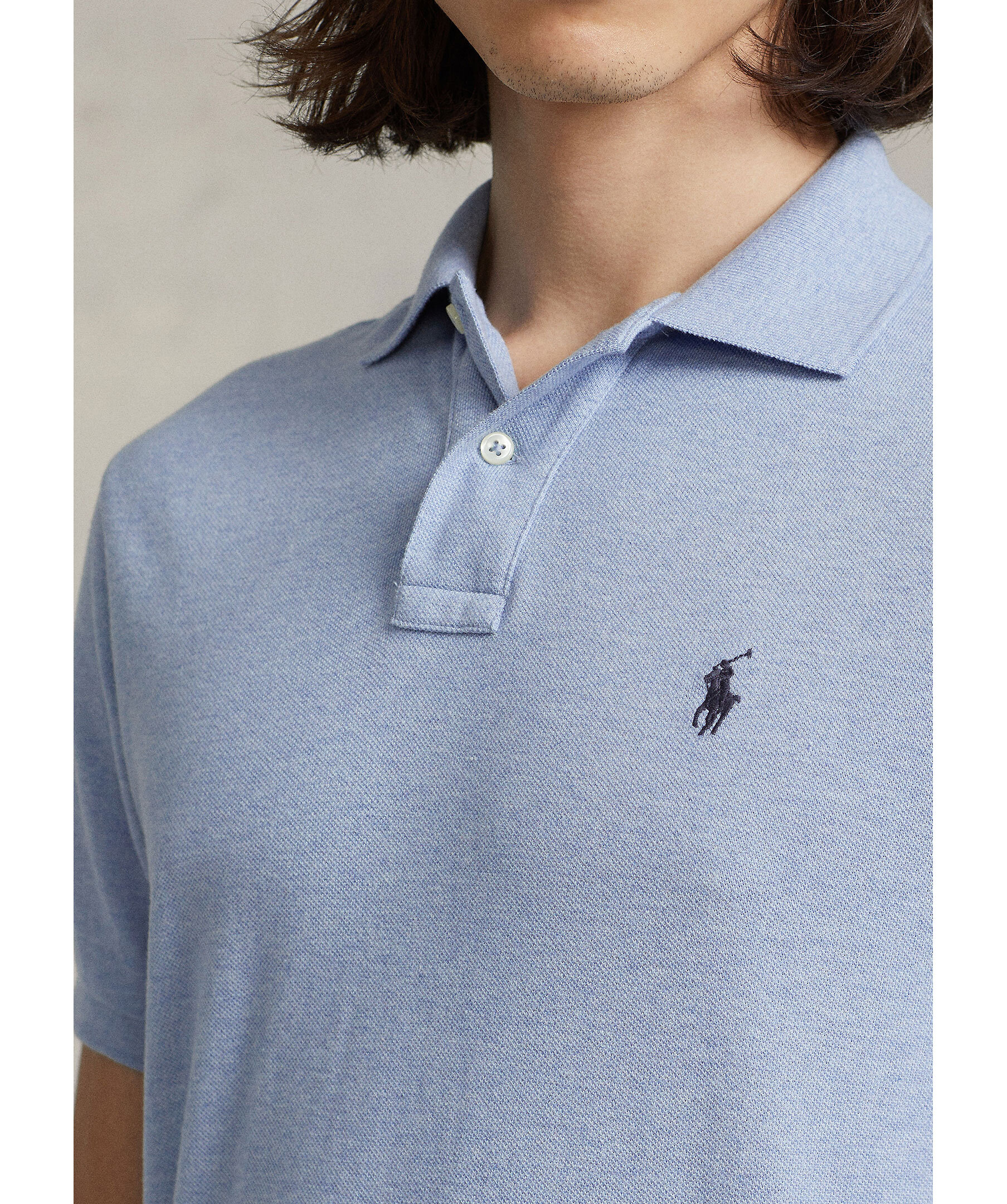Ljusblå piké från Polo Ralph Lauren. Pikén har ribbstickad krage samt broderad logotyp på bröstet. Tillverkad i bomull.