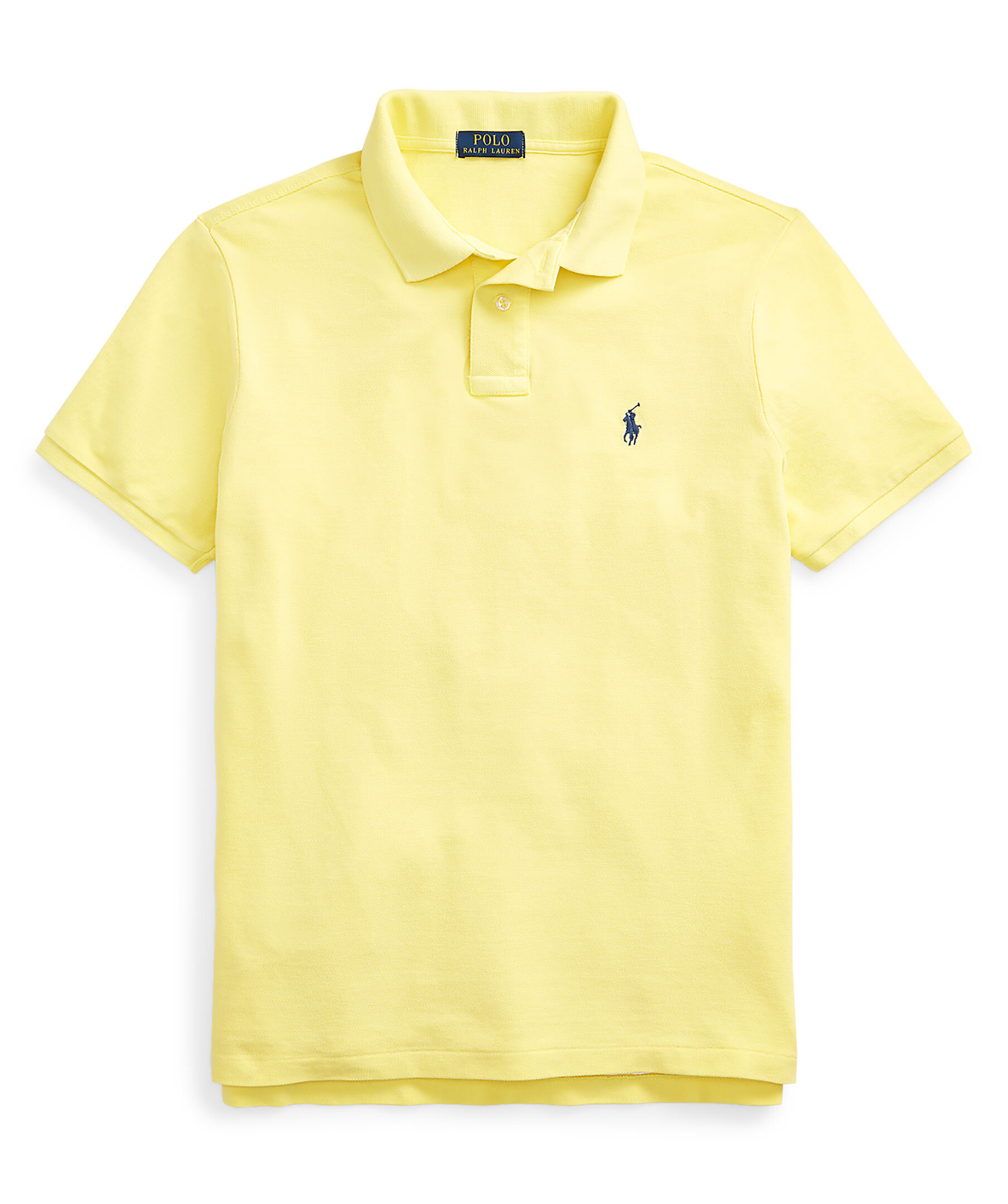 Ljusgul, kortärmad piké från Polo Ralph Lauren. Blå, broderad logga på vänster bröst. Tillverkad i 100% bomull. Små slitsar på vardera sida. * Slitsar i sidorna * Två knapar fram * 100% bomull
