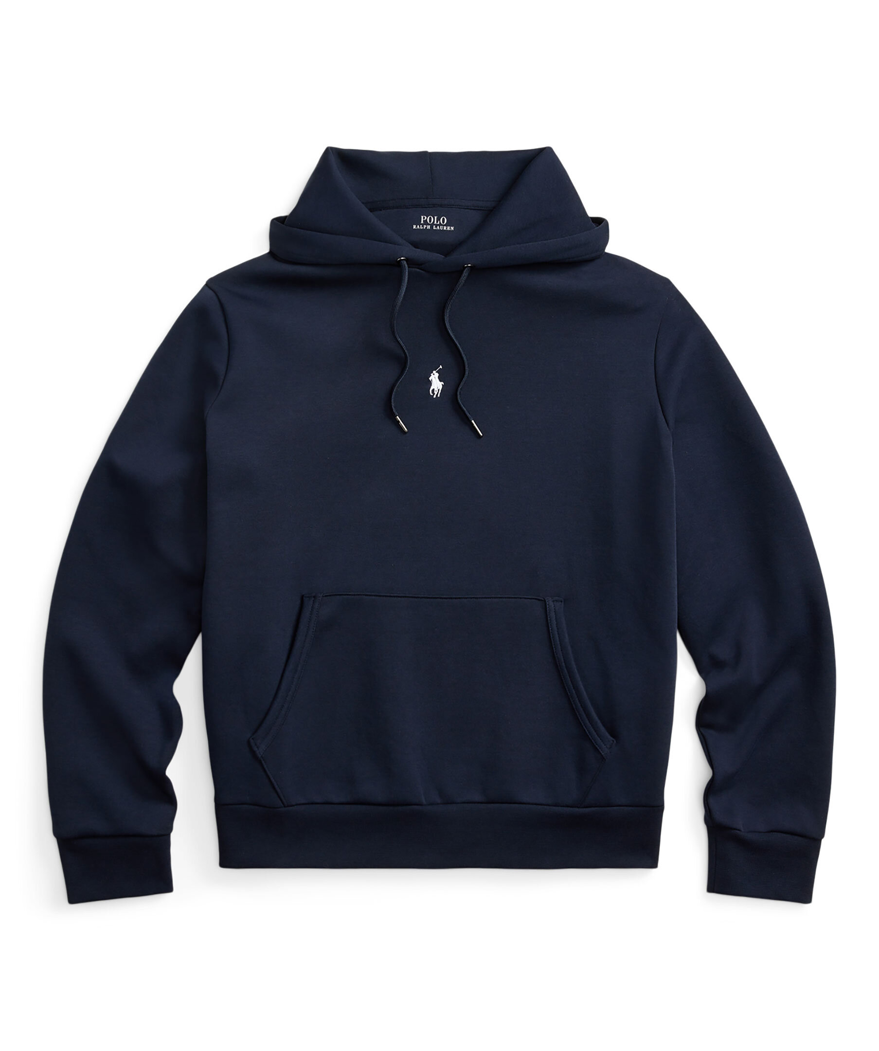 Marinblå hoodie från Polo Ralph Lauren. Luva med dragsko och muddar i ärm- och plaggslut. Känguruficka på magen och liten broderad logotyp mitt på bröstet.
