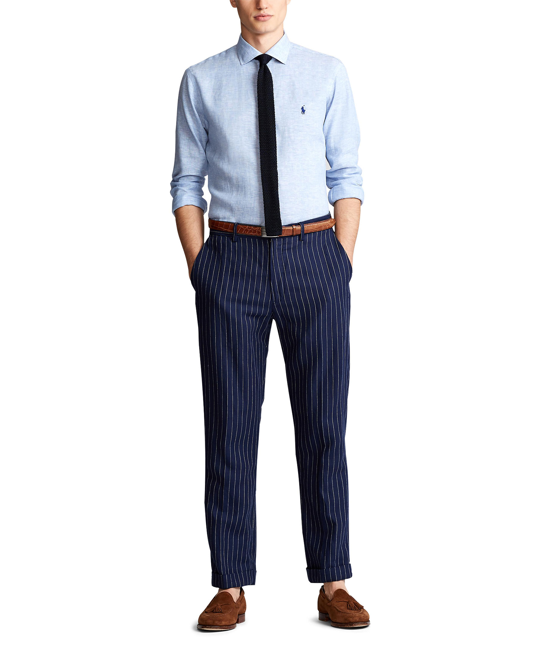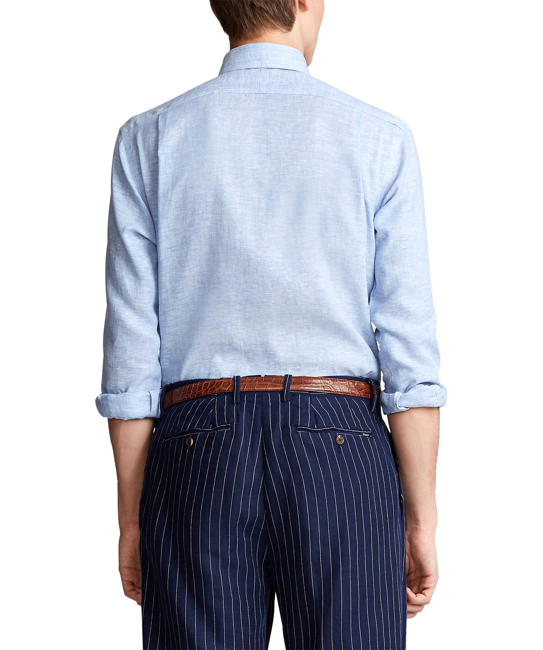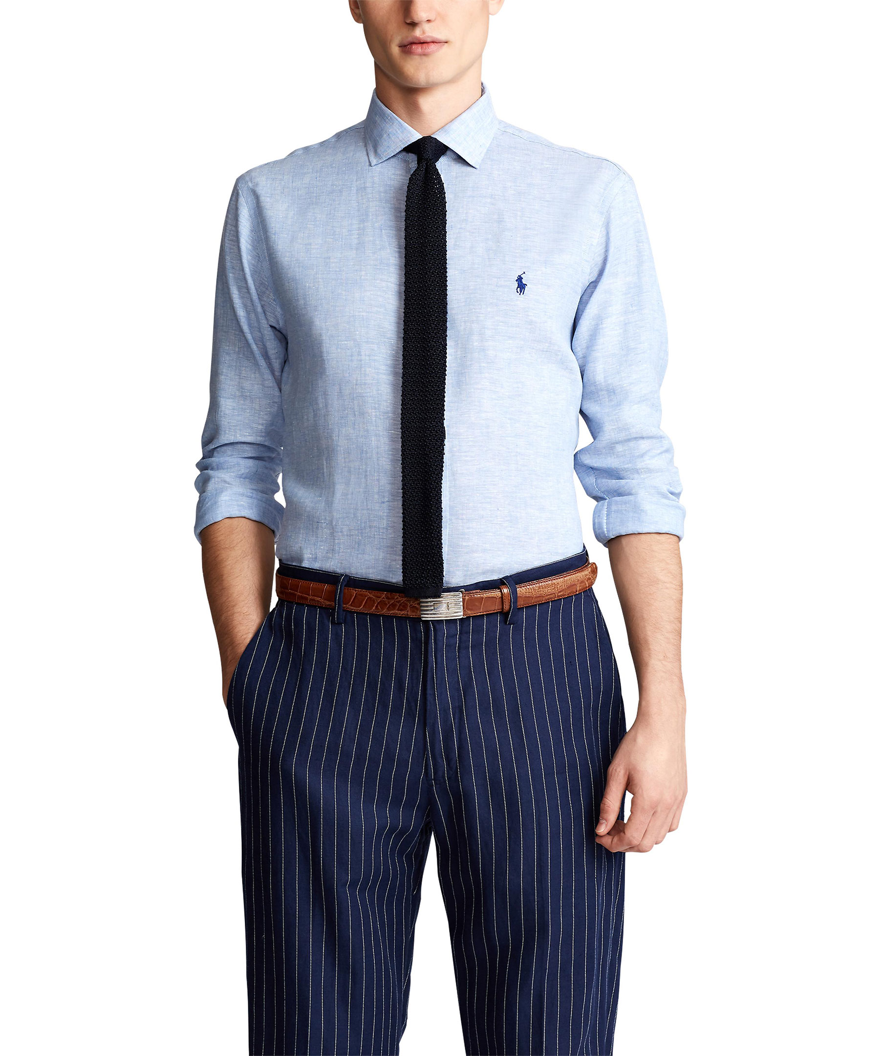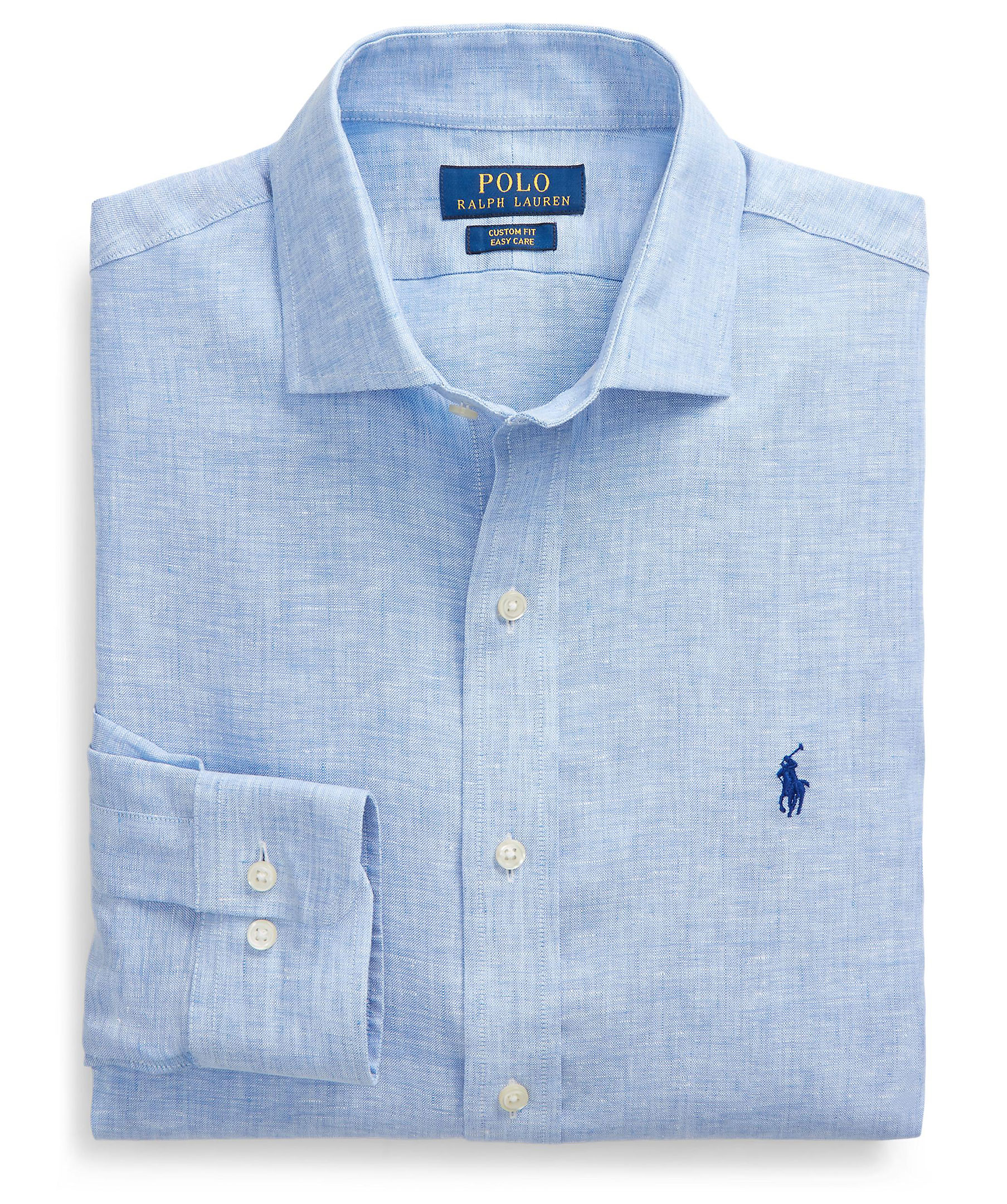 Ljusblå linneskjorta från Polo Ralph Lauren. Tillverkad i 100% linne. Broderad logga på bröstet, cut away krage, custom fit.