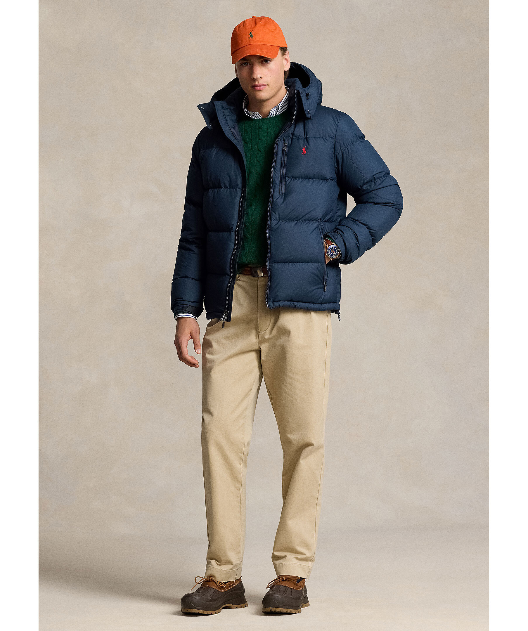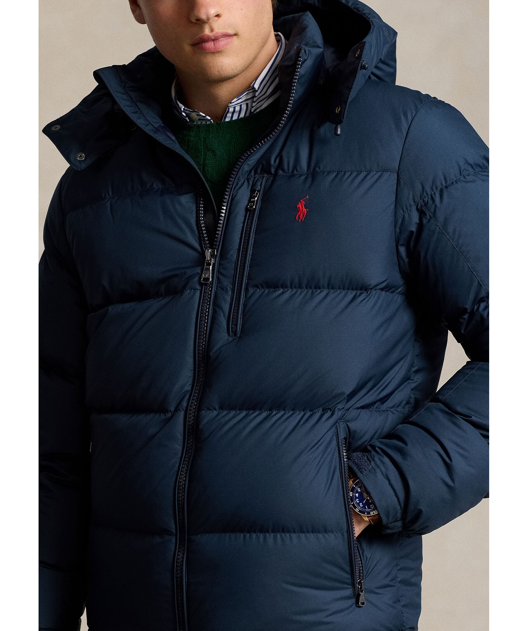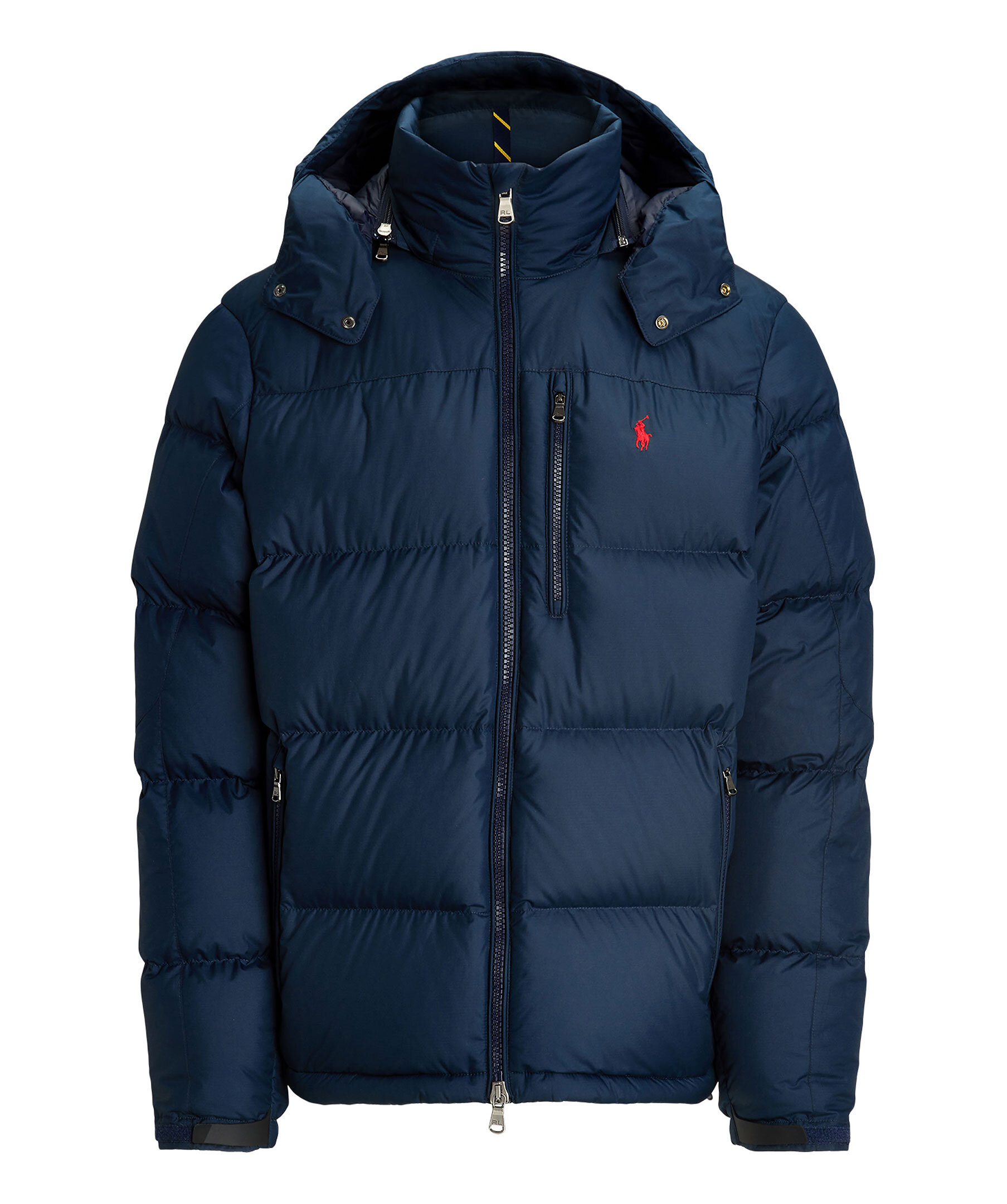 Blå pufferjacka från Polo Ralph Lauren. Jackan stängs med tvåvägsdragkedja och har avtagbar huva, två sidfickor med dragkedja, en bröstficka med dragkedja samt broderad logotyp på bröstet. Tillverkad i polyester med dunfyllning.