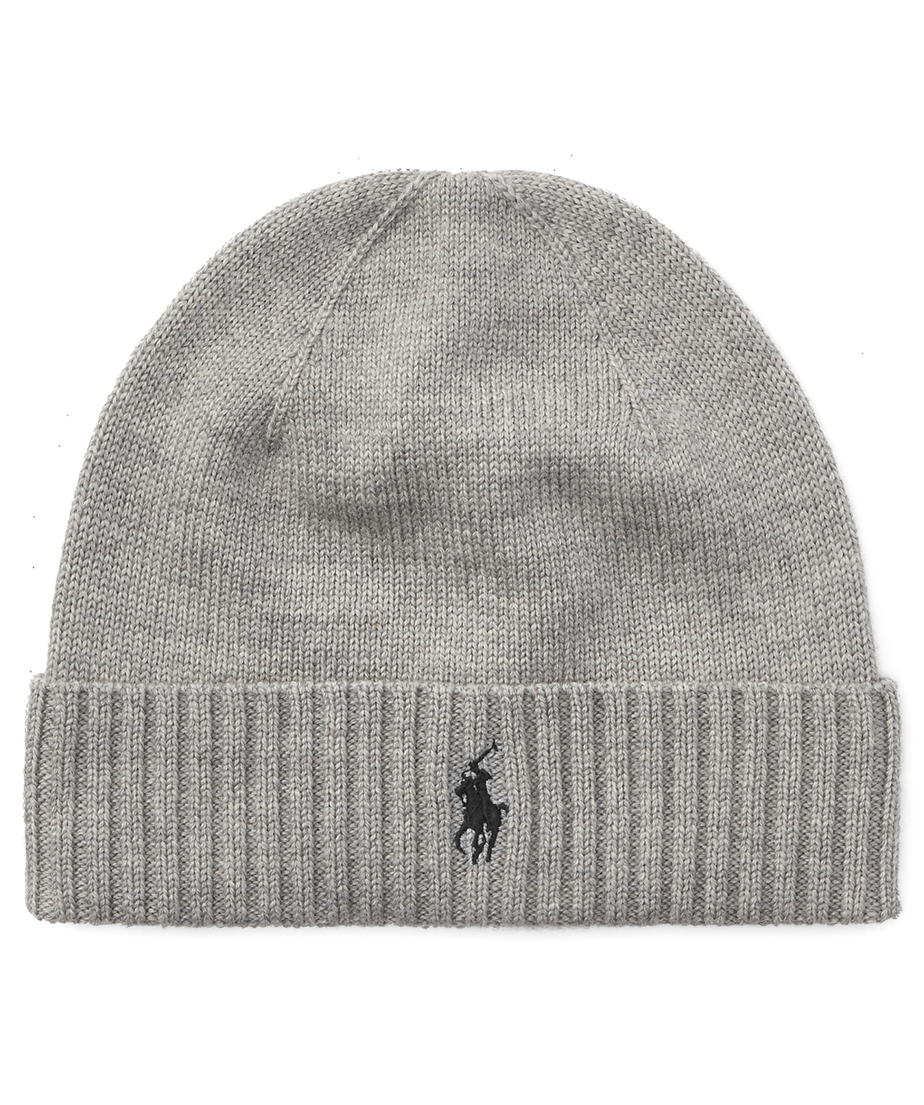 Grå, stickad mössa från Polo Ralph Lauren. Broderad logotyp på framsidan.