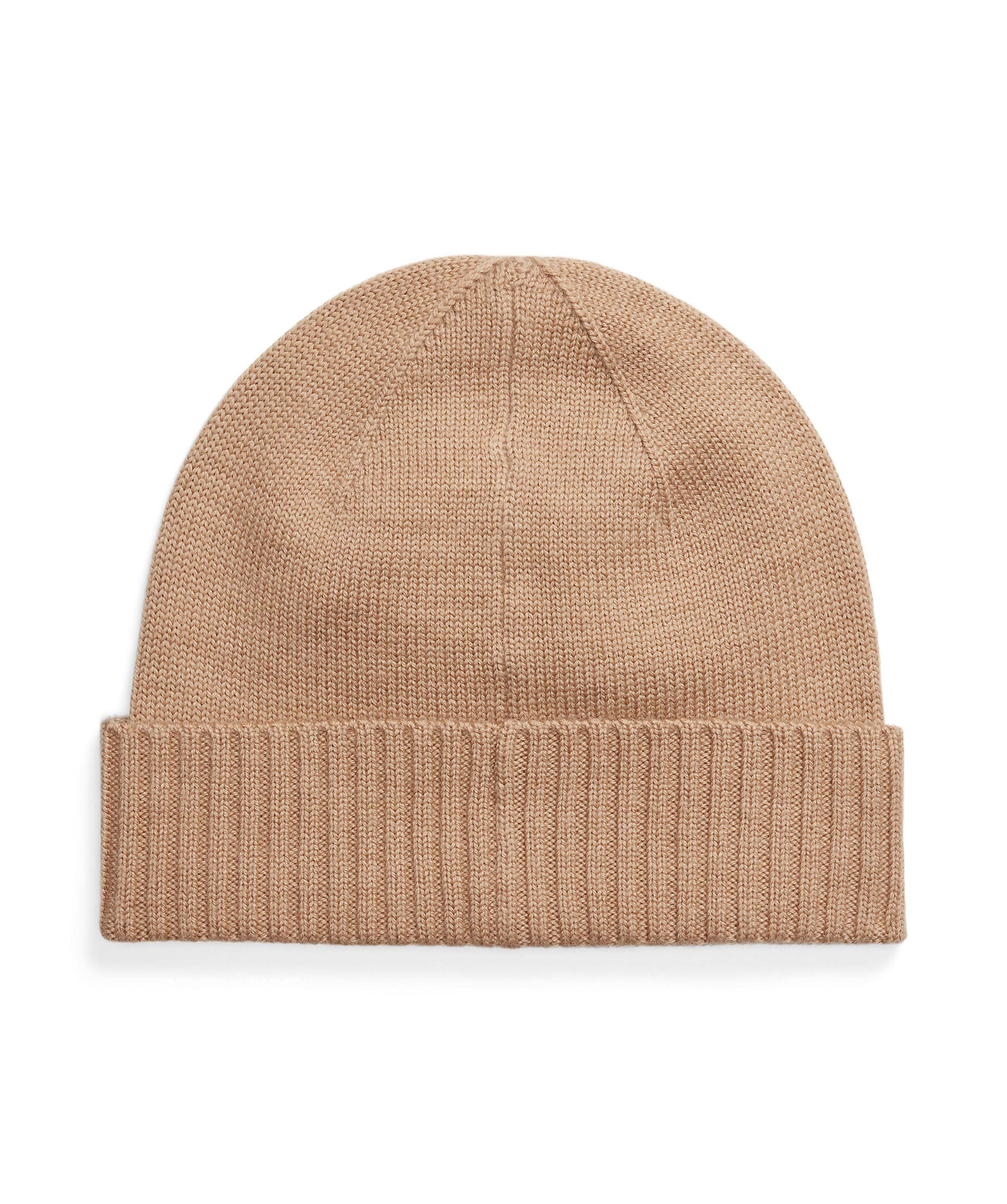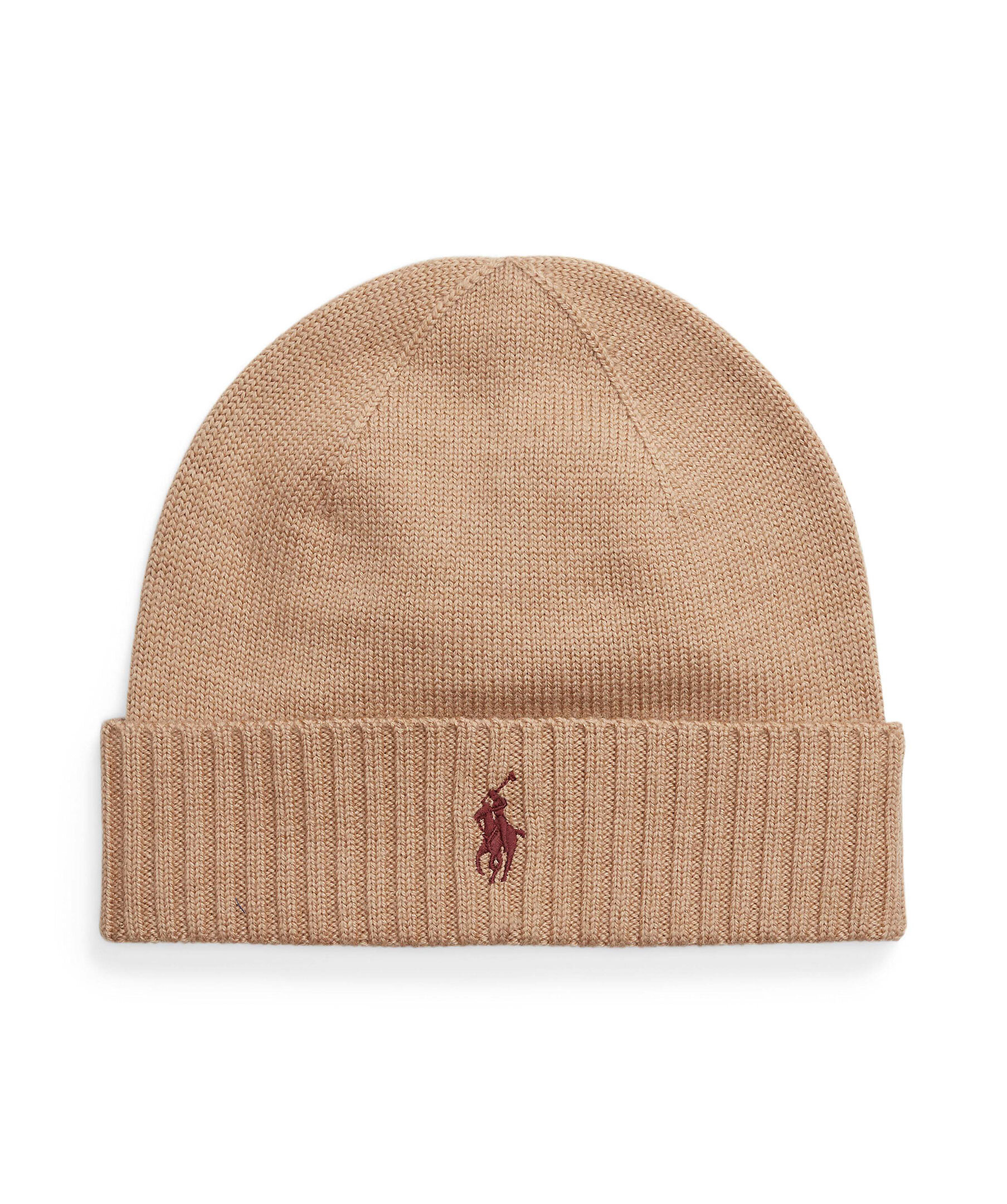 Kamelfärgad mössa från Polo Ralph Lauren. Uppvikt kant, broderad logga på framsidan. Tillverkad i 100% ull.