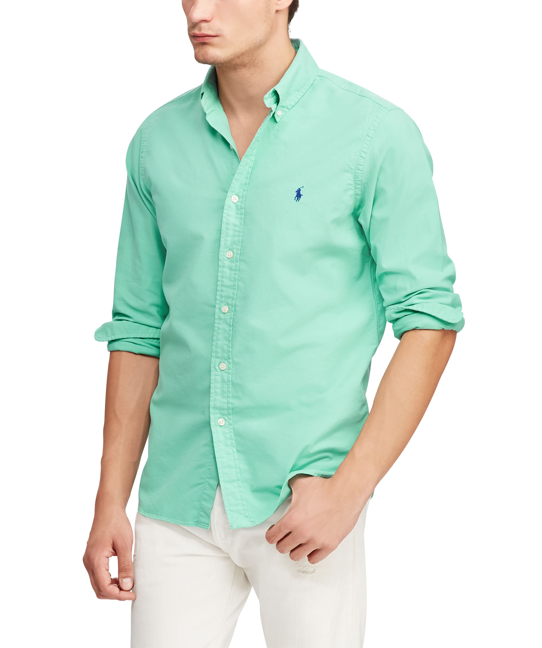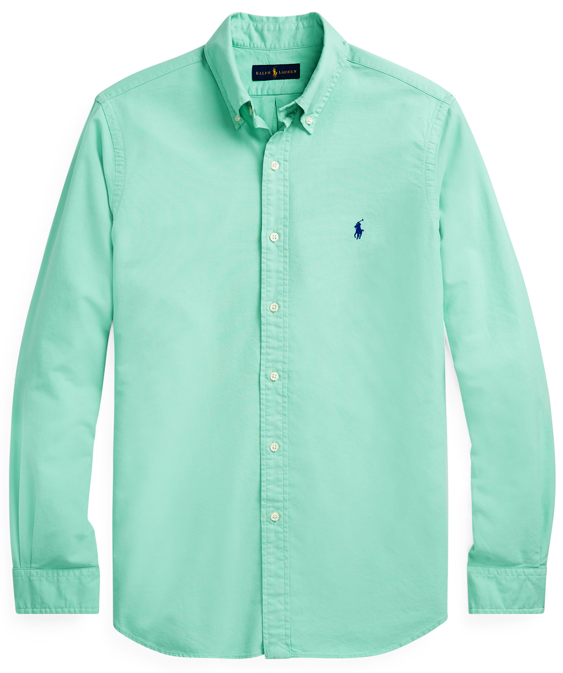 Grön skjorta från Polo Ralph Lauren. Button down krage, blå broderad logotyp på bröstet.