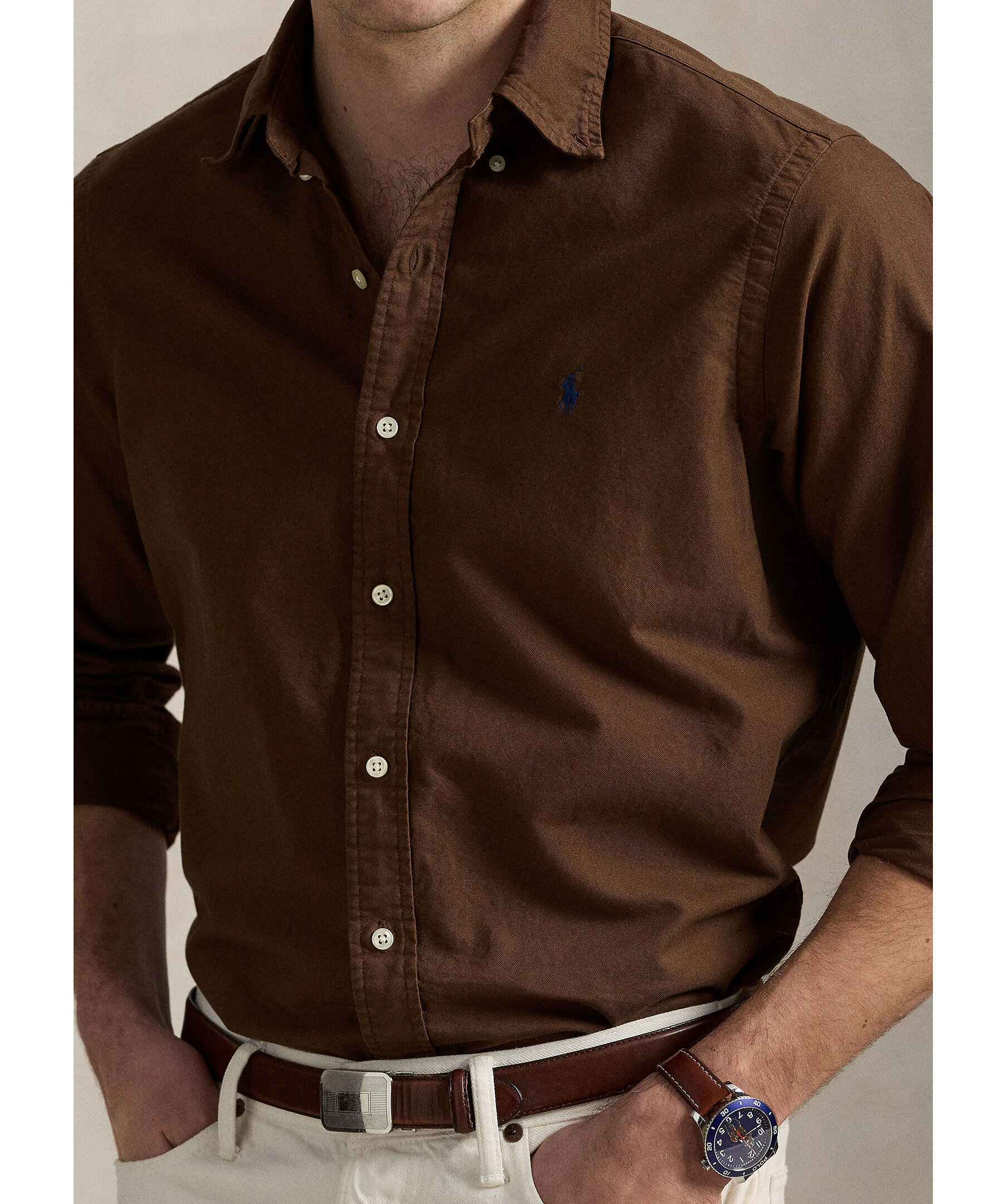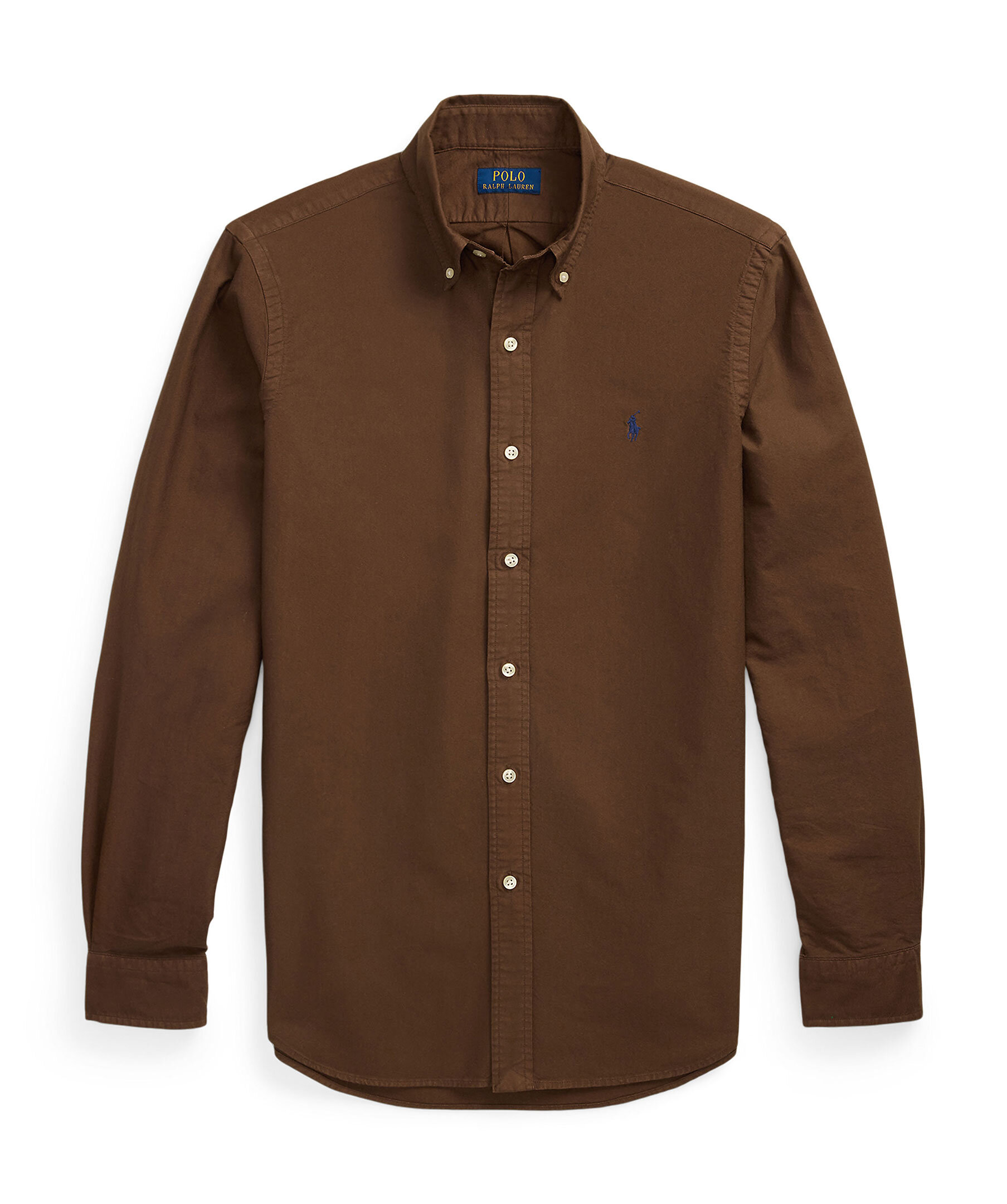 Brun, plaggfärgad skjorta från Polo Ralph Lauren. Skjortan har button-down krage samt broderad logotyp på vänster bröst. Tillverkad i 100% bomull.