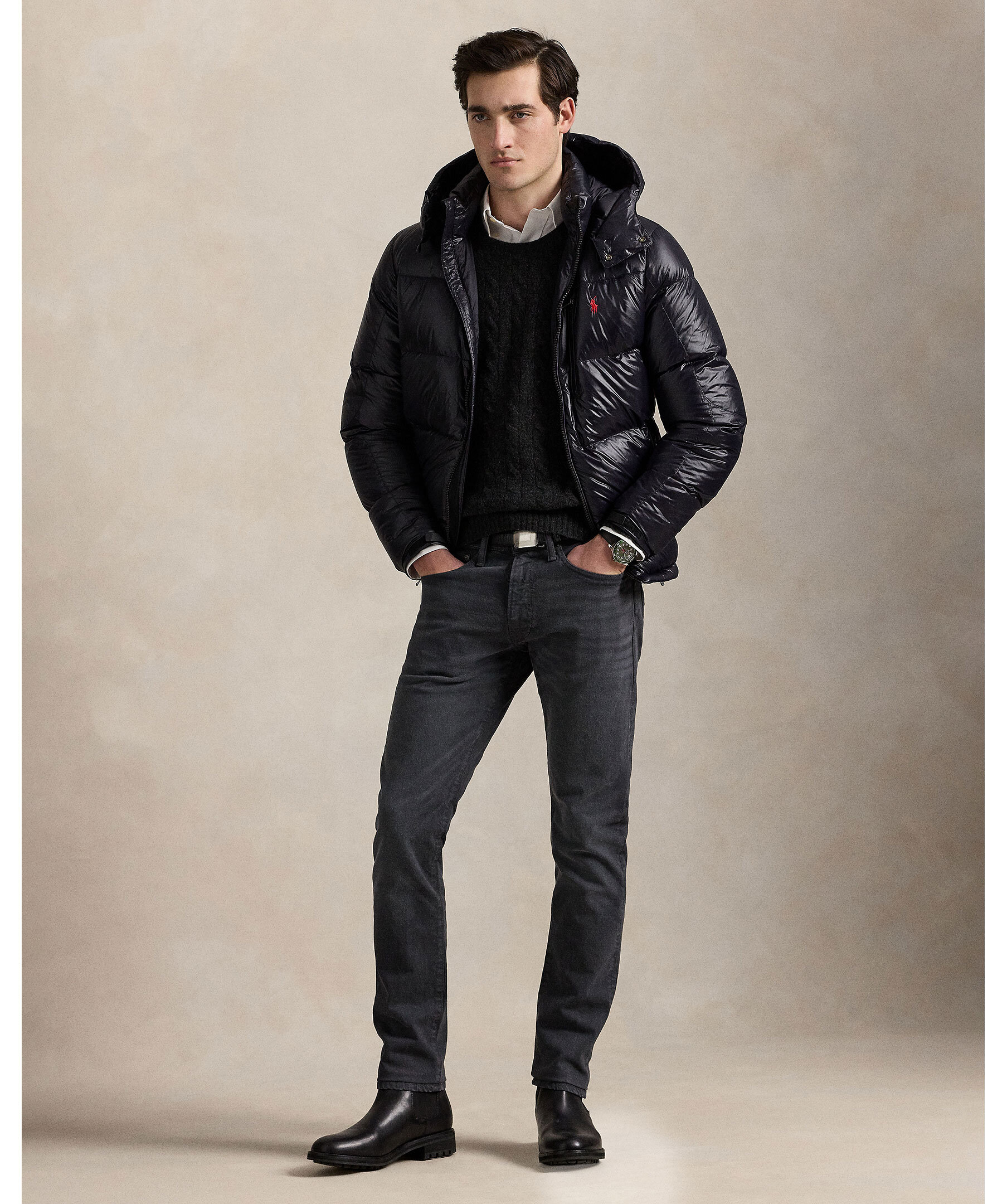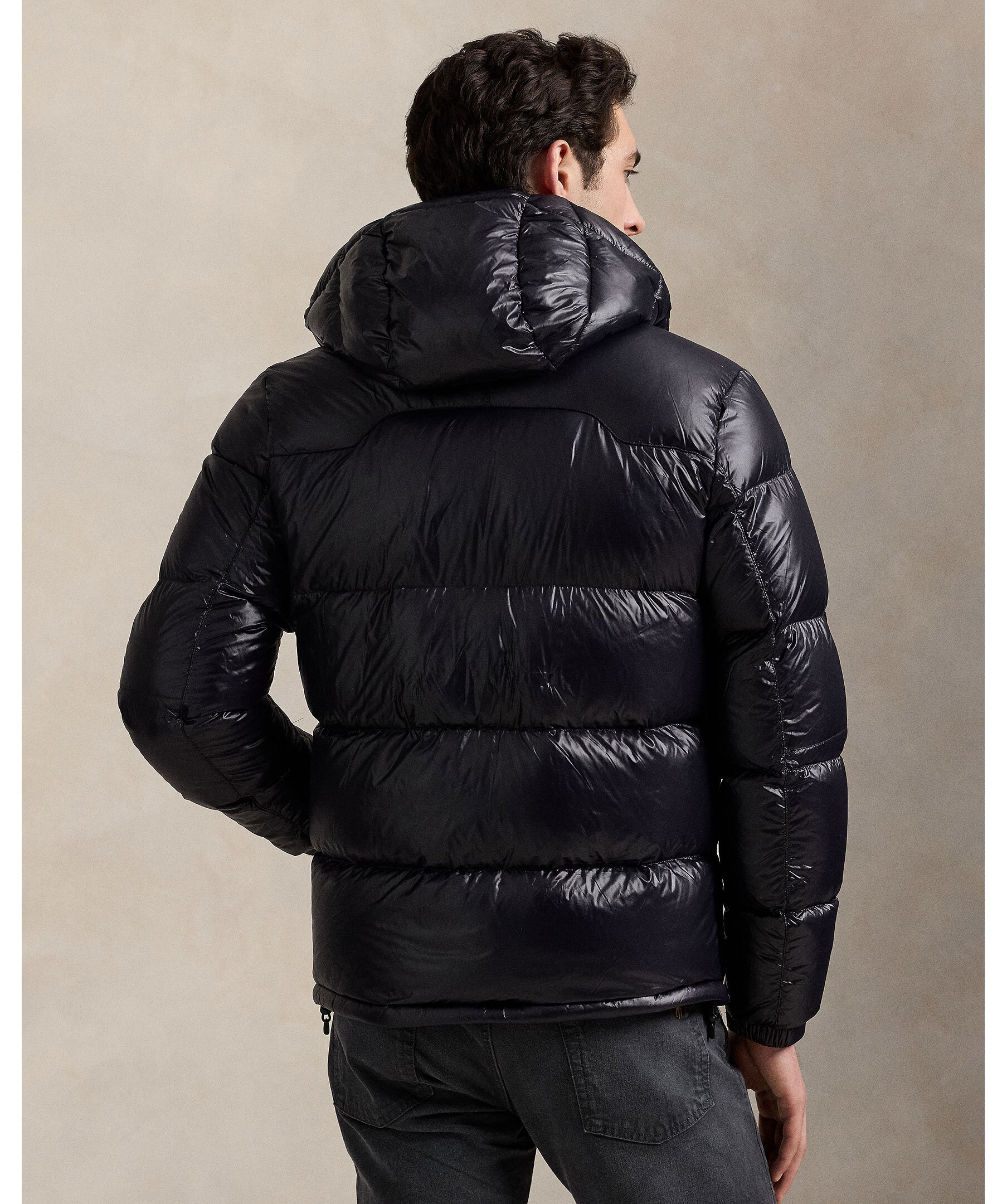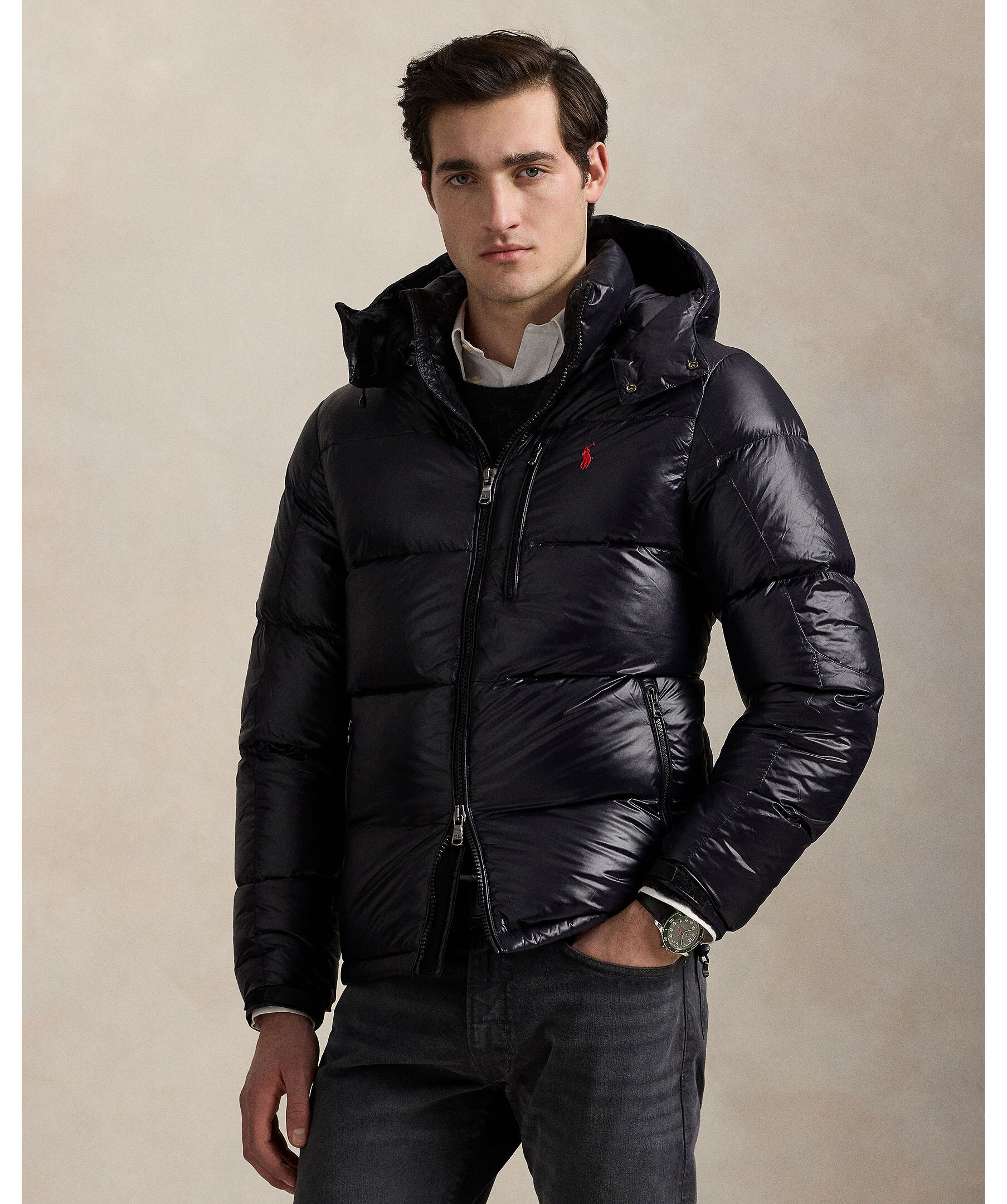 Gorham jacket är en svart glansig dunjacka från Polo Ralph Lauren. Gjord i vattenavvisande ripstop-tyg med glansig finish. Jackan är fodrad med högkvalitativa dun med 650-fill-power för optimal värme och har en avtagbar huva för flexibilitet. Två sidfickor och en bröstficka som stängs med dragkedja. Broderad polohäst på bröstet.