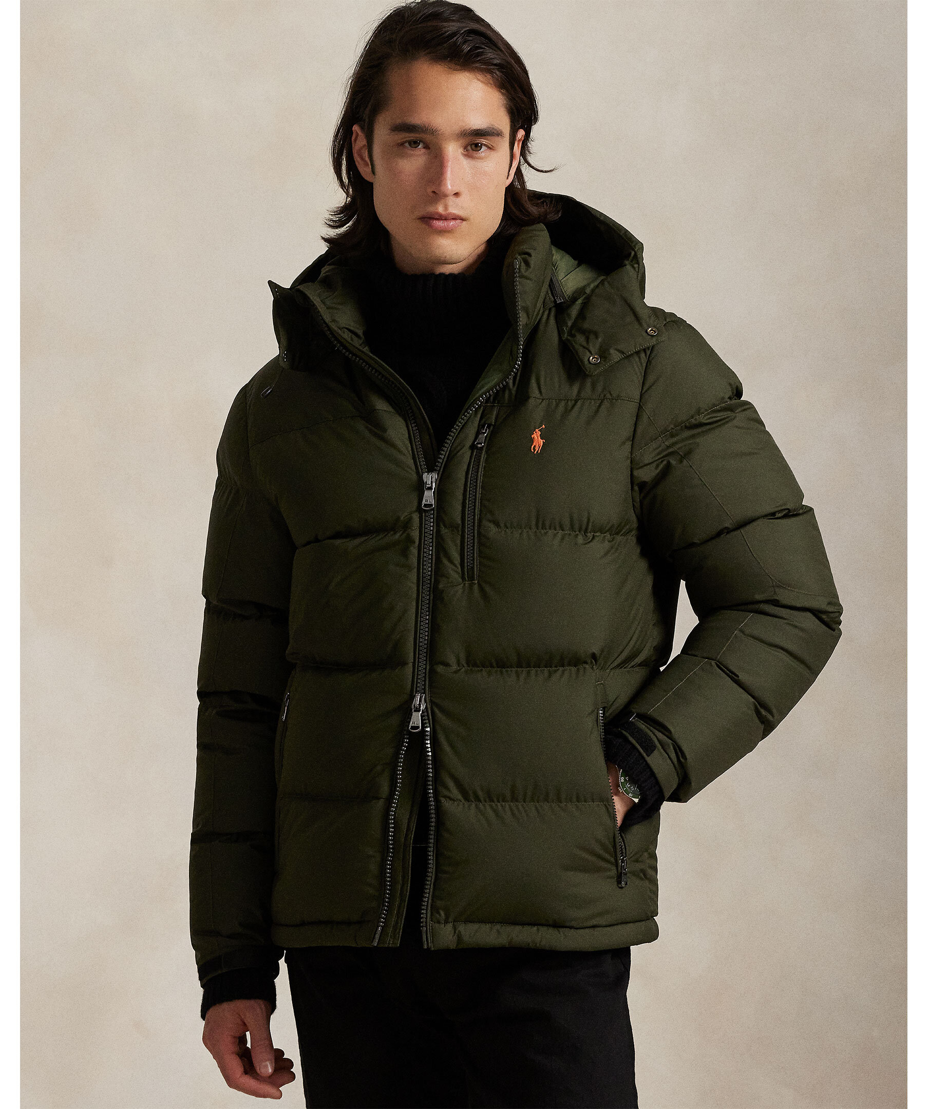 Gorham Jacket är en mörkblå dunjacka från Polo Ralph Lauren. Jackan stängs med tvåvägsdragkedja och har en avtagbar huva med dragsko, två sidfickor med dragkedja, dragsko i nederkant samt en innerficka med dragkedja. Broderad logotyp på bröstet. Tillverkad i polyester med dunfyllning.