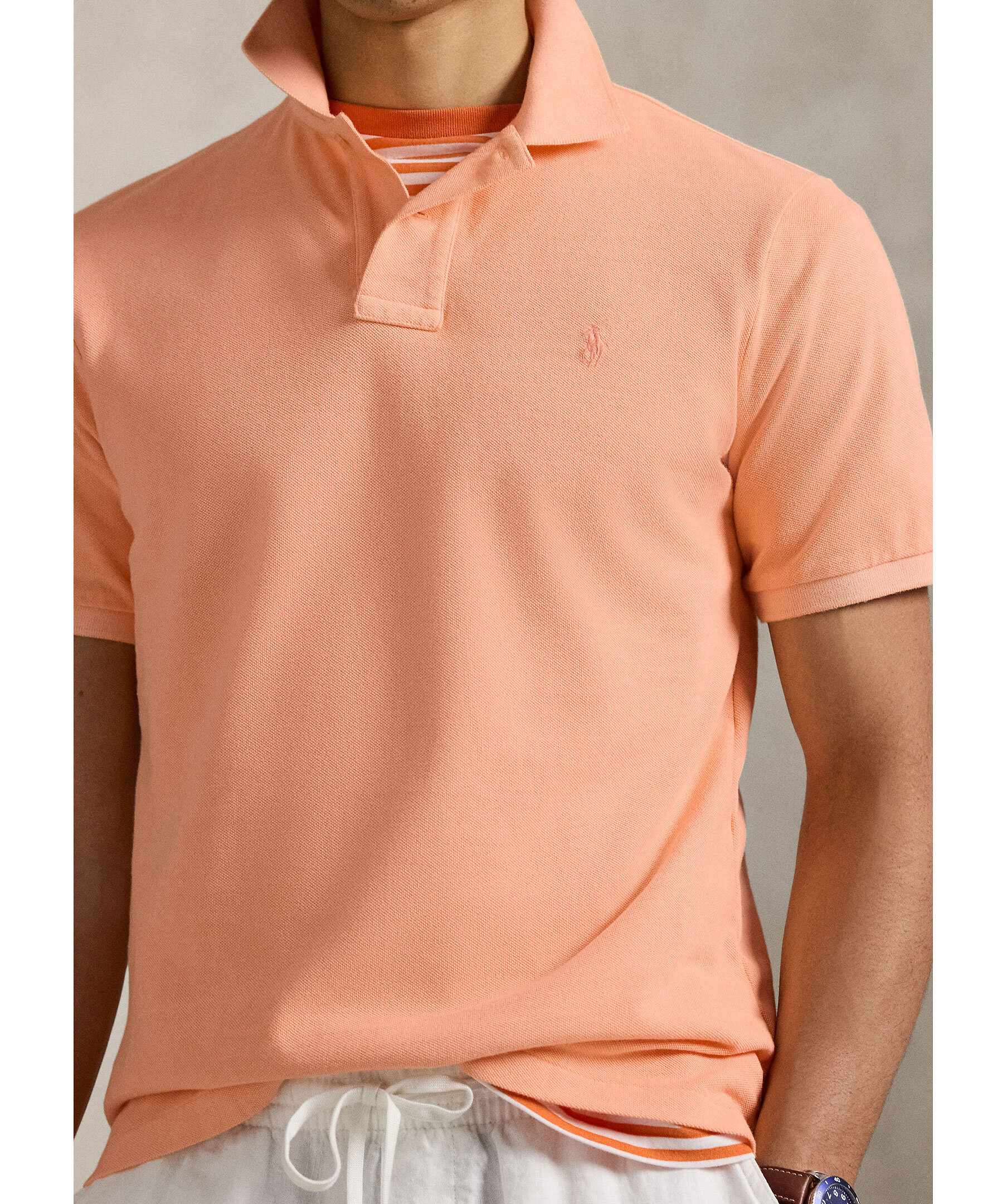 Orange piké från Polo Ralph Lauren. Pikén är plaggfärgad och har ribbstickad krage samt broderad logotyp på bröstet. Tillverkad i bomull.