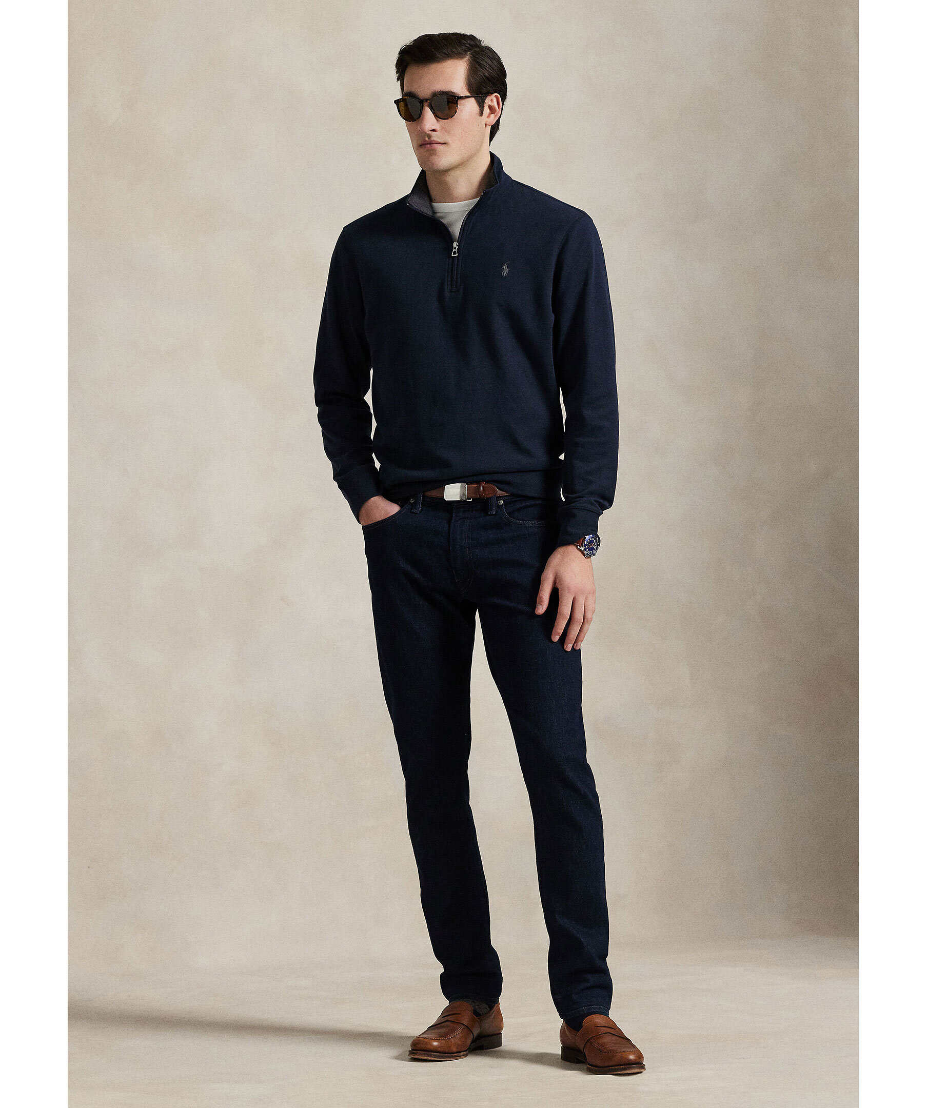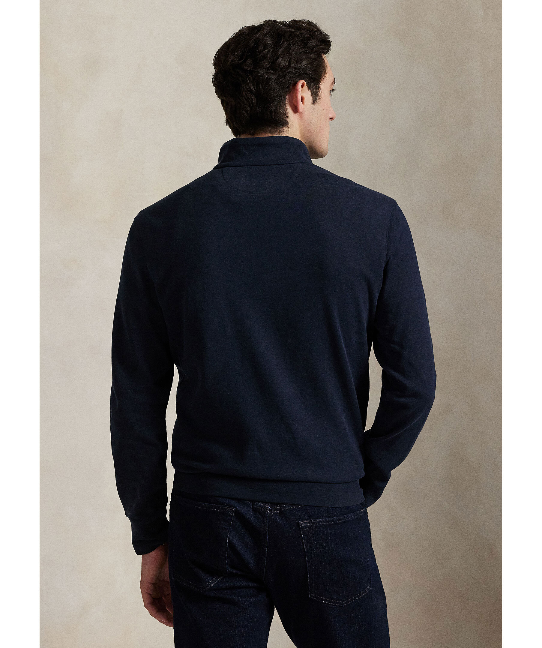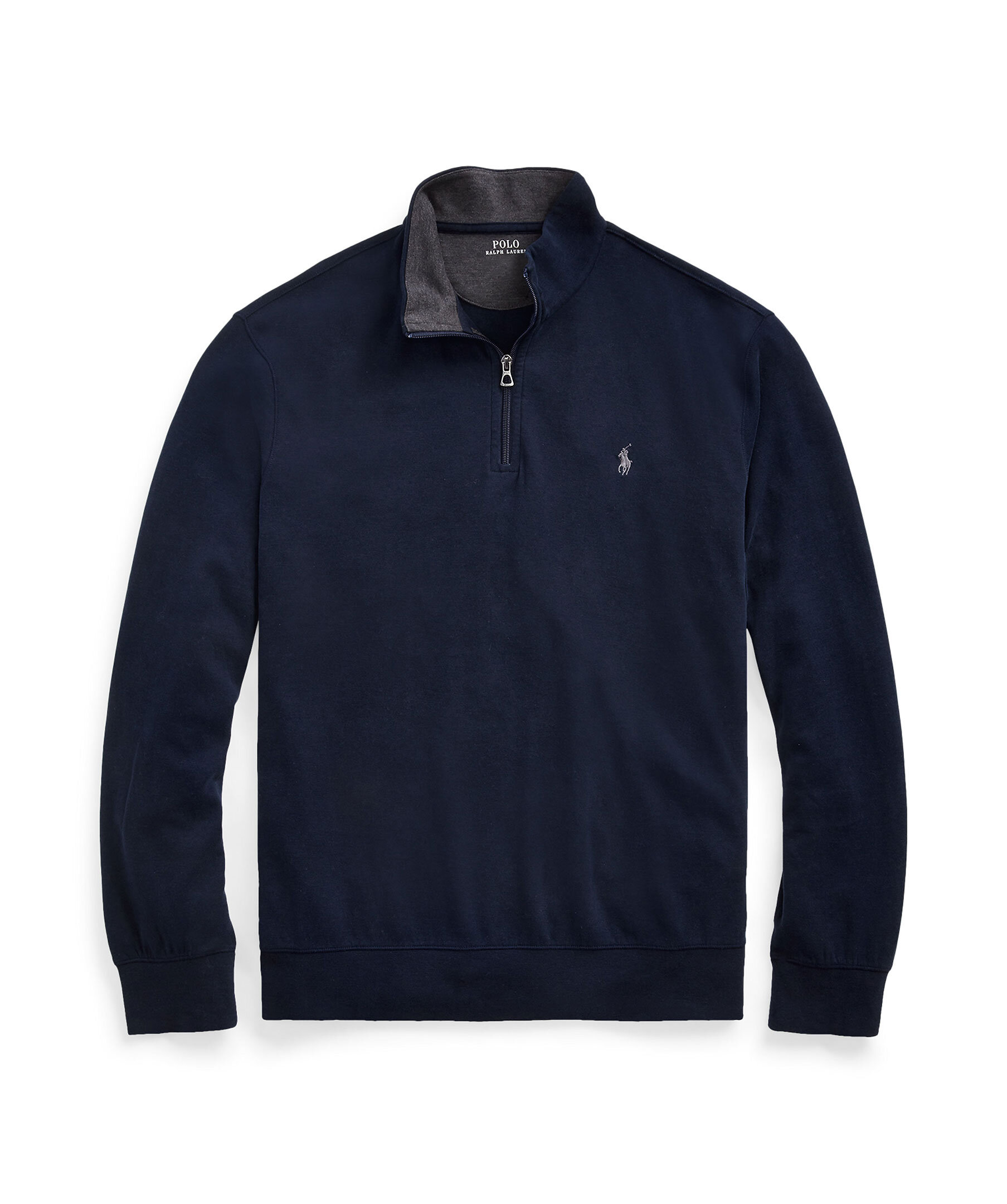 Mörkblå half-zip från Polo Ralph Lauren. Tröjan har ribbstickade muddar, halv dragkedja samt broderad logotyp på bröstet. Tillverkad i 100% bomull.