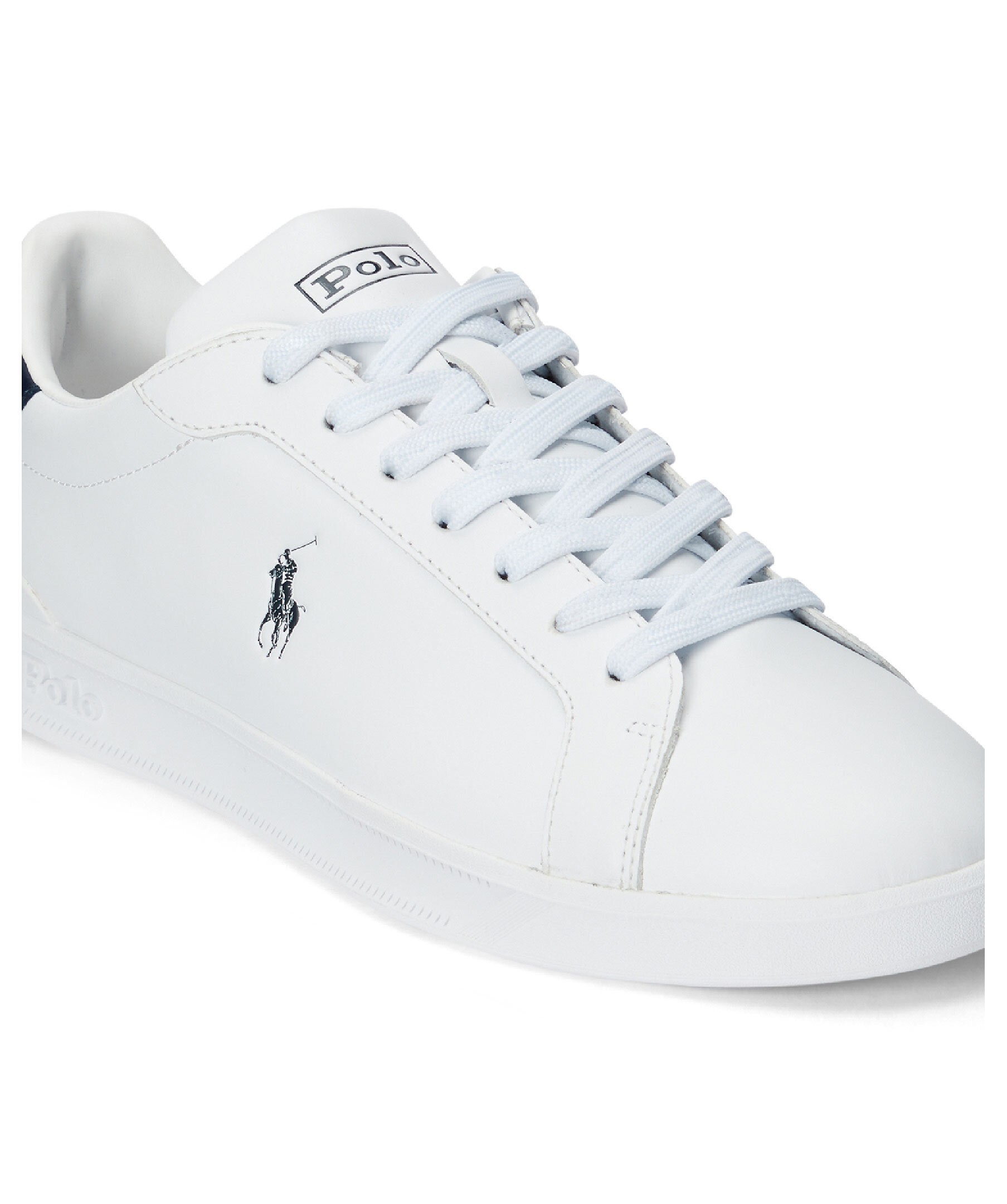 Vita lädersneakers från Polo Ralph Lauren i en matt finish. Liten tryckt logga på sidan och kontrastfärgad detalj i Mörkblått vid hälen.