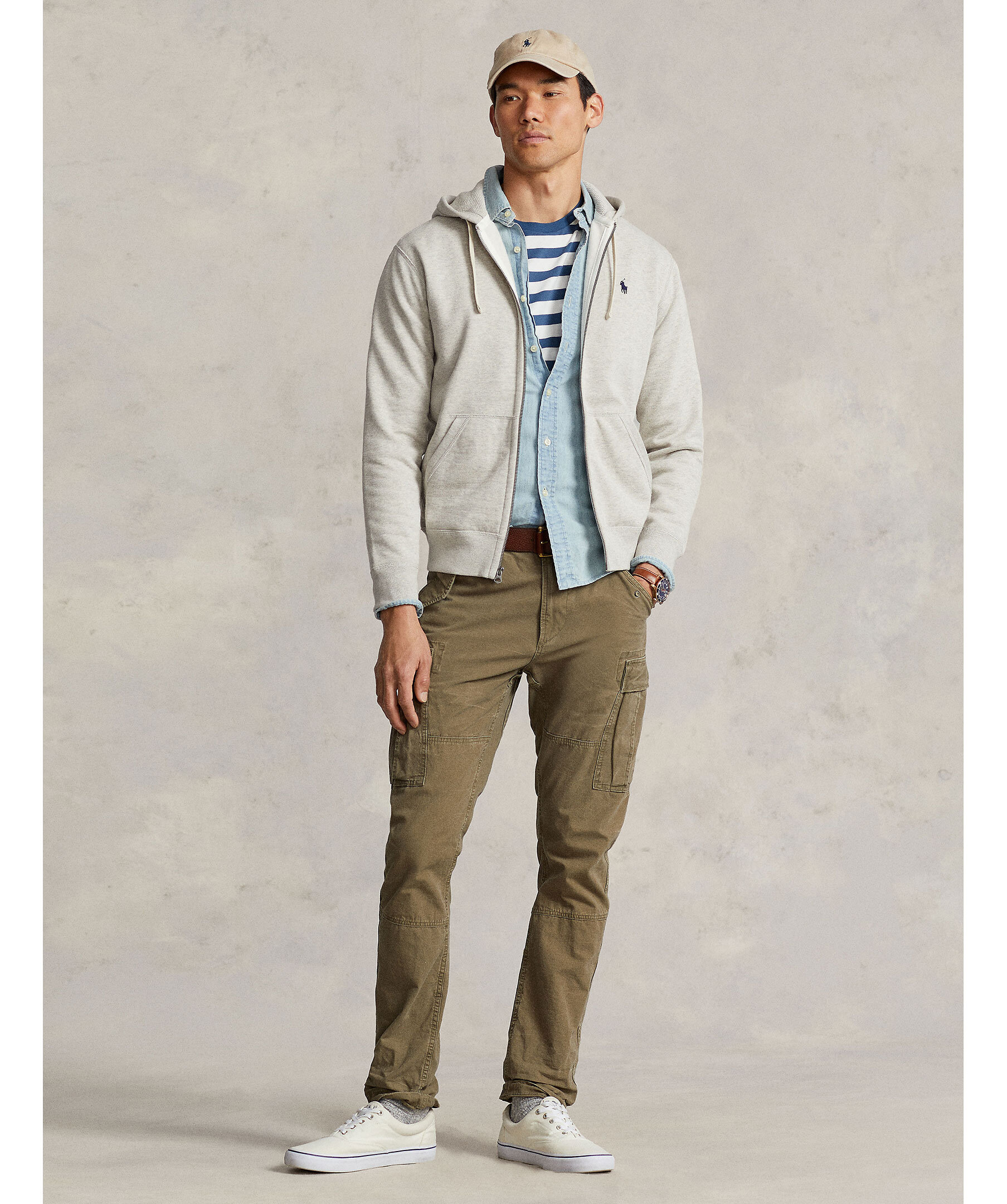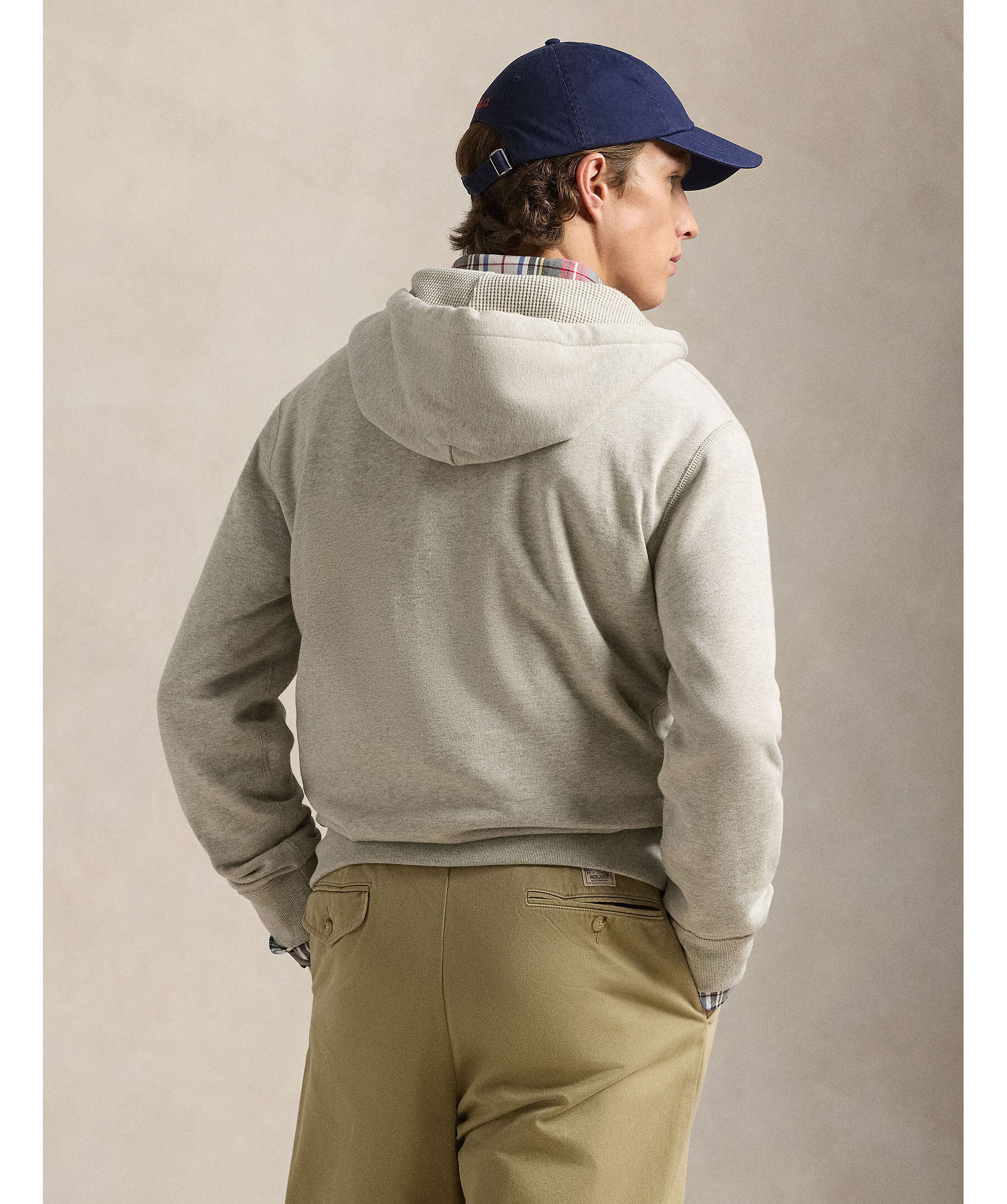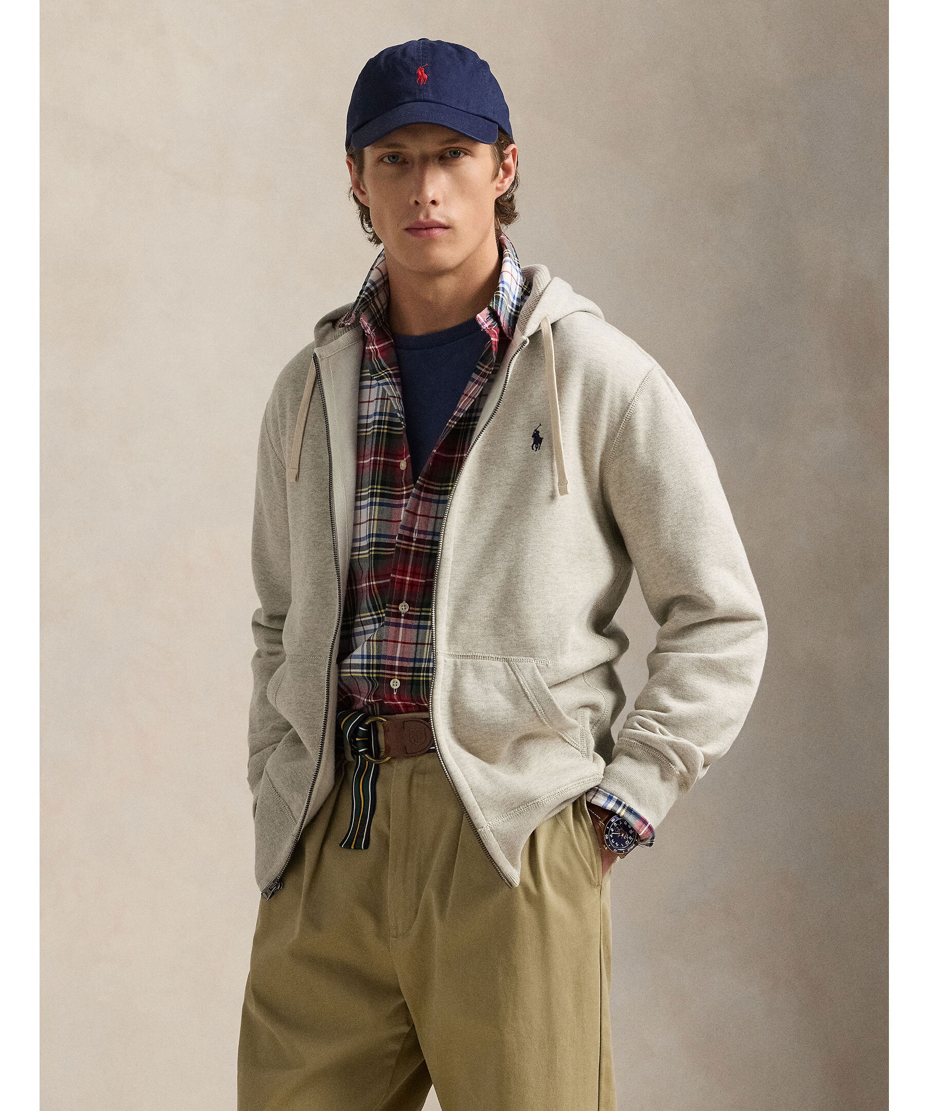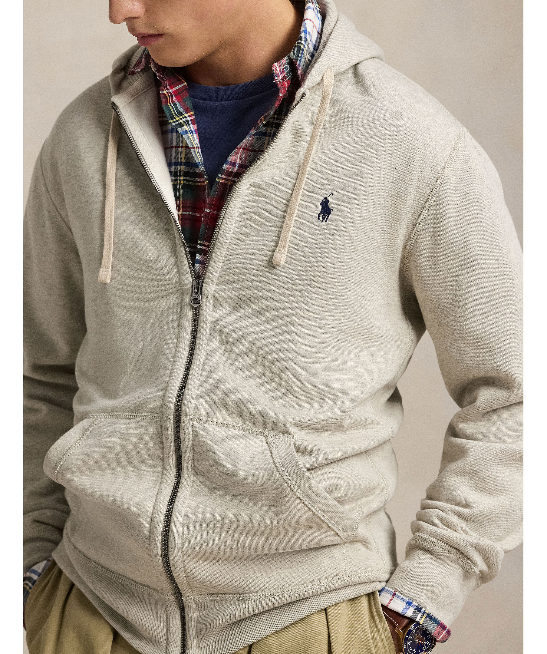 En klassisk hoodie med modern komfort. Tillverkad i en mjuk bomullsblandning med fleecefoder för extra värme. Stängs med dragkedja, justerbar huva, ribbade muddar och två praktiska fickor. Broderade Polo-logga på bröstet.