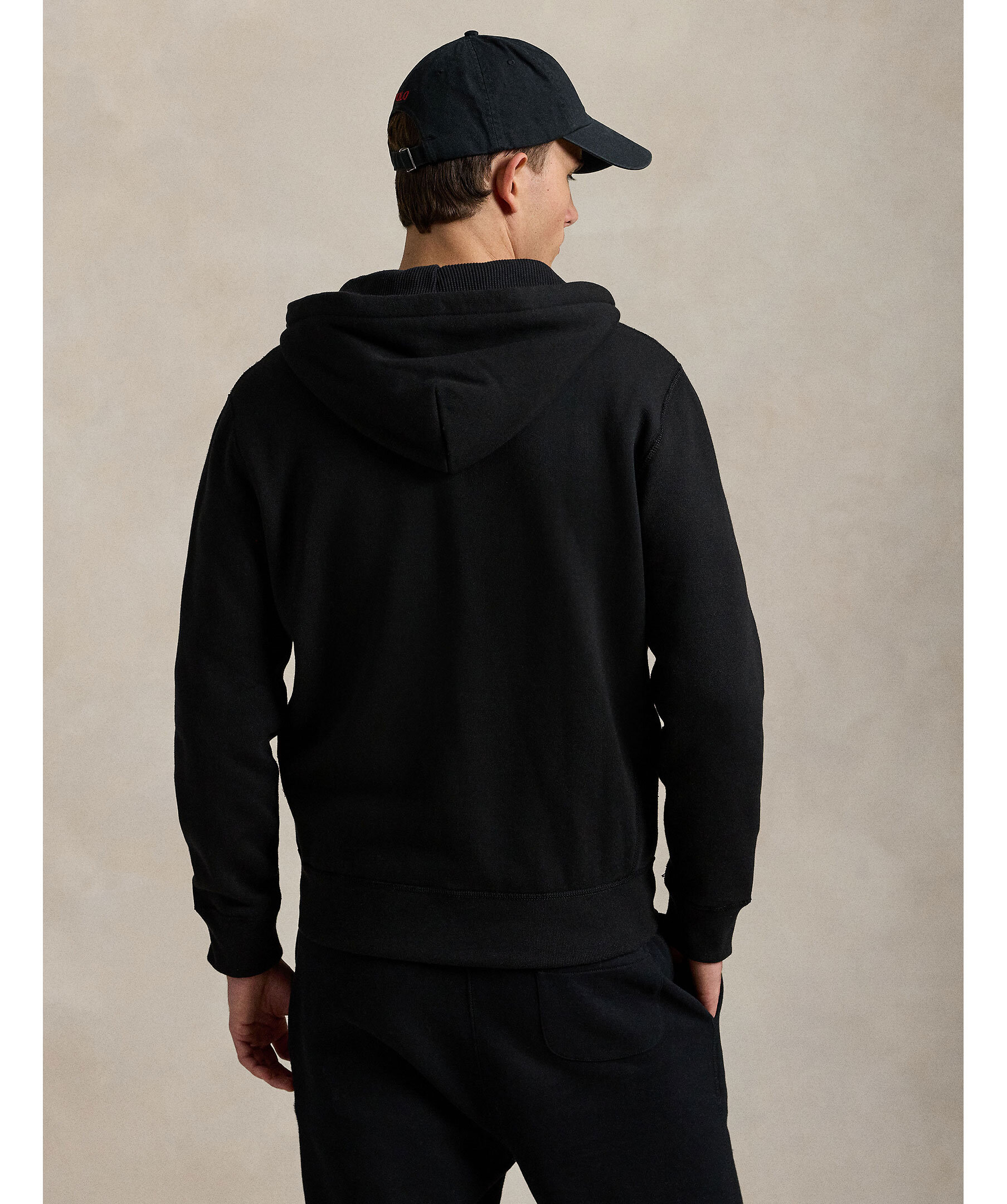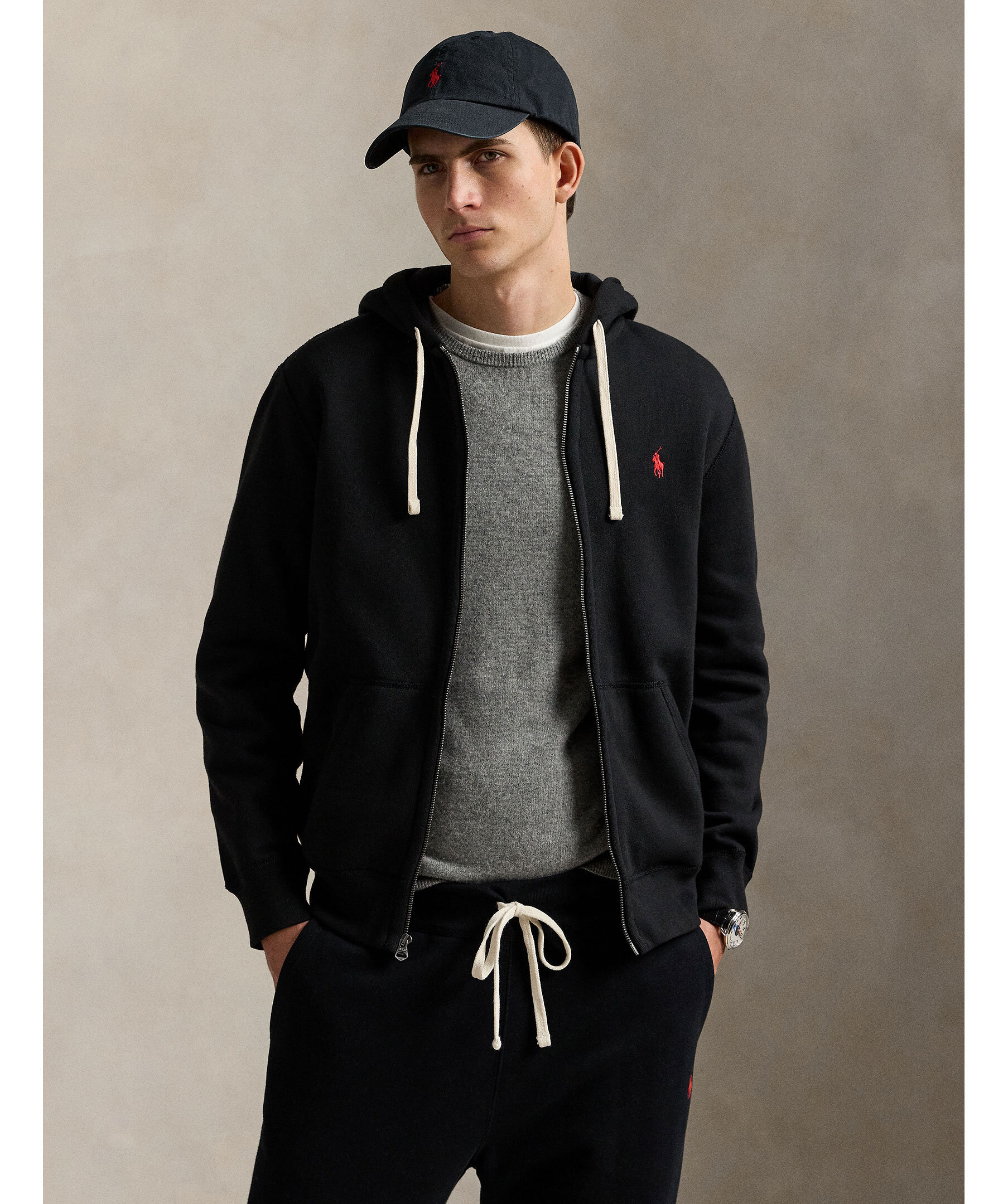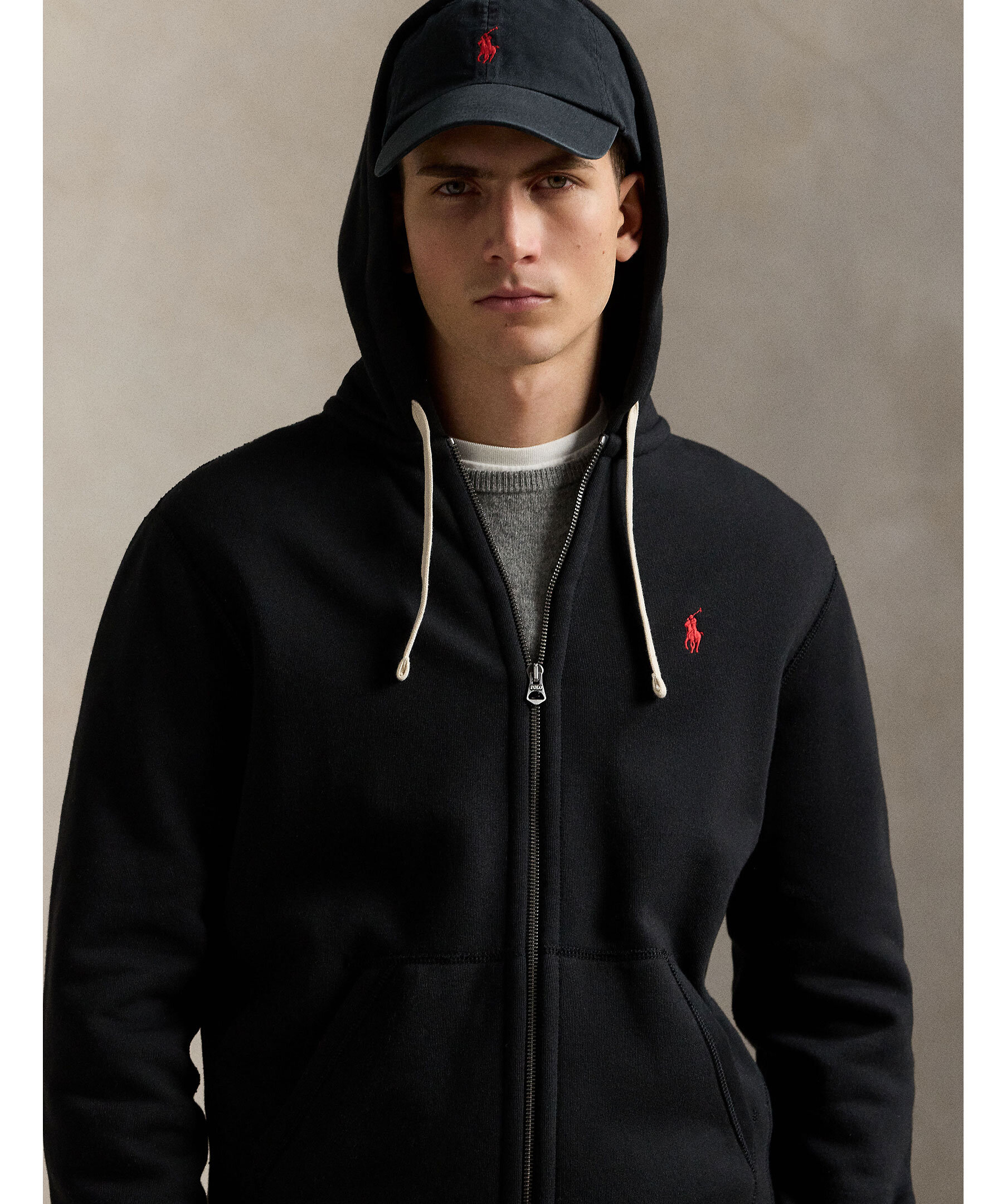 En klassisk hoodie med modern komfort. Tillverkad i en mjuk bomullsblandning med fleecefoder för extra värme. Stängs med dragkedja, justerbar huva, ribbade muddar och två praktiska fickor. Broderade Polo-logga på bröstet.