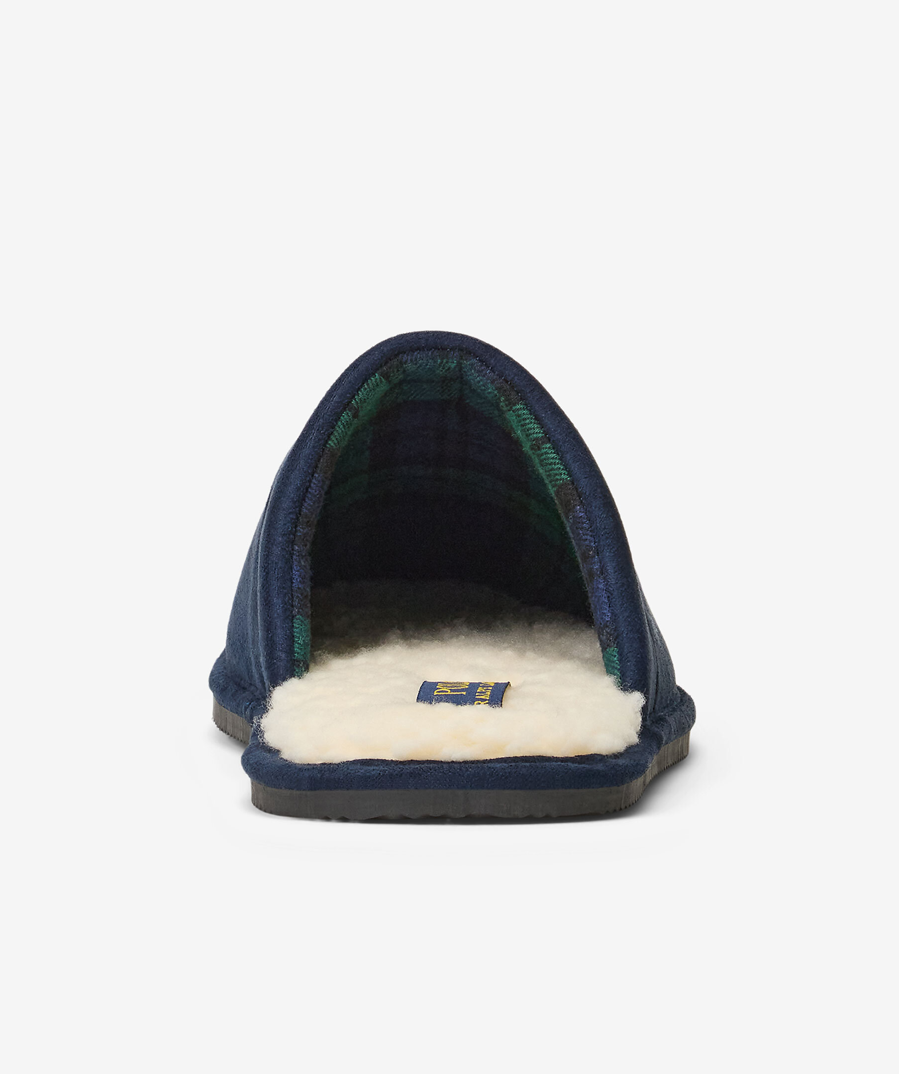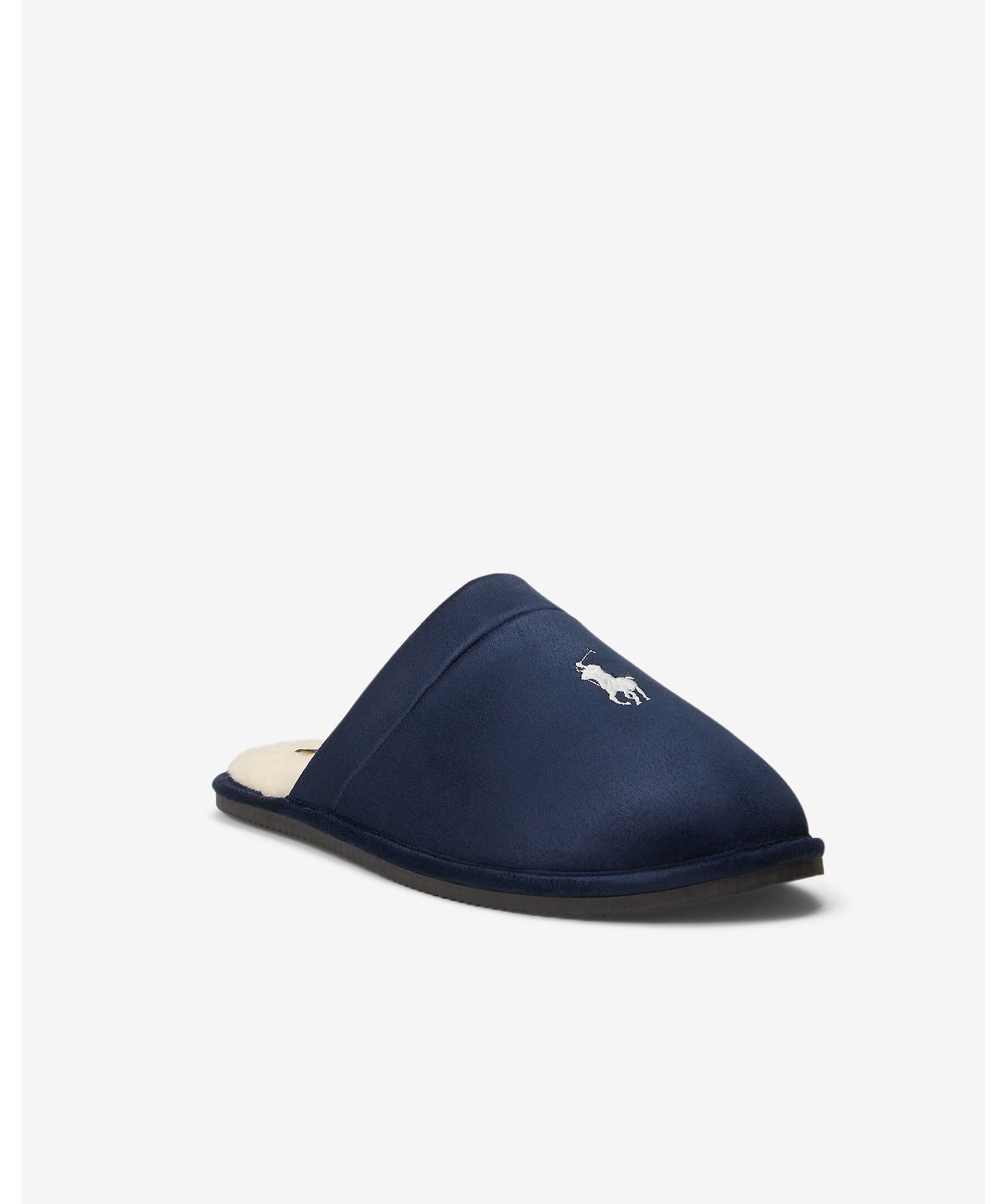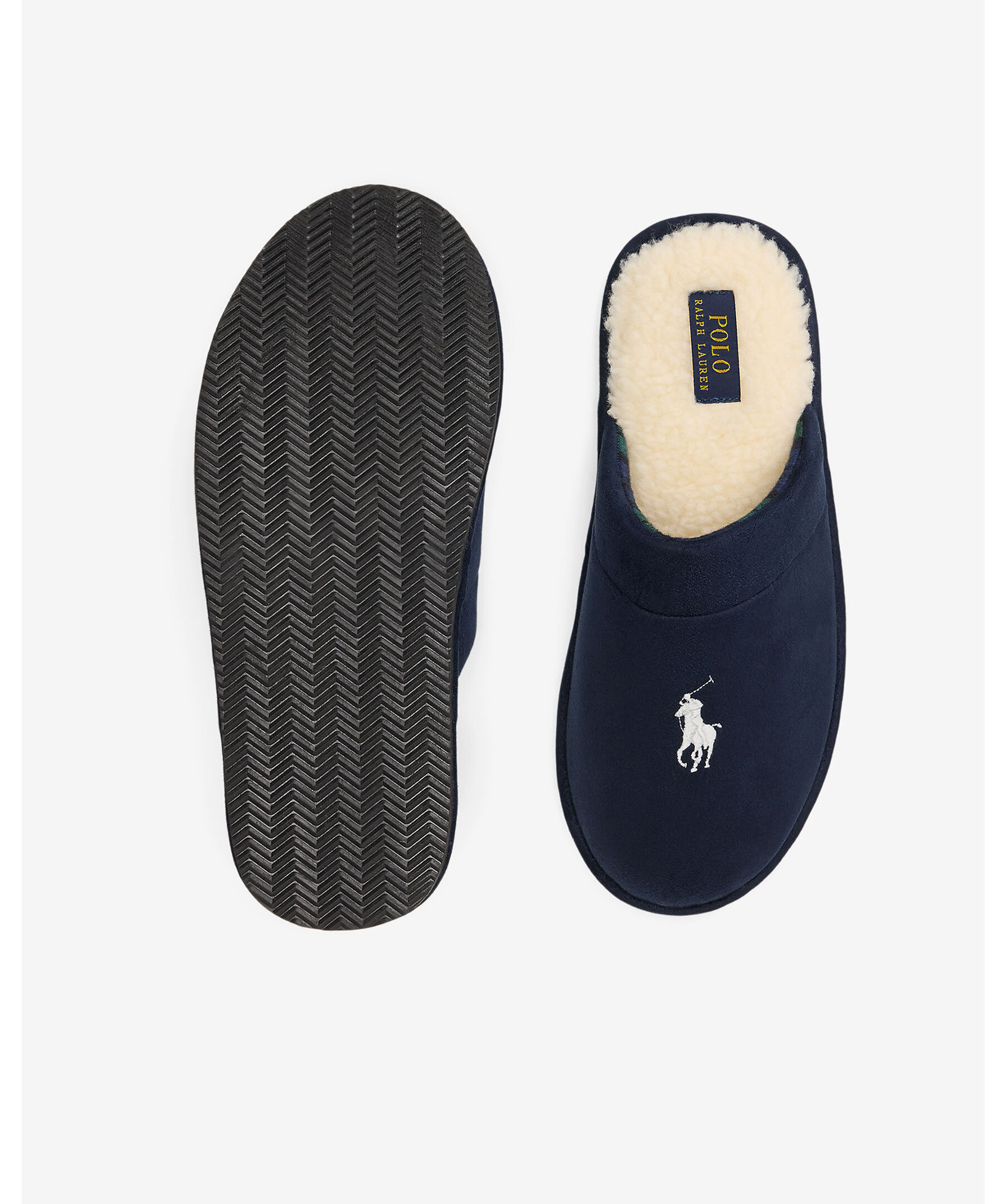 Blåa tofflor från Polo Ralph Lauren med ett mjuk och fluffigt foder i teddyfleece.