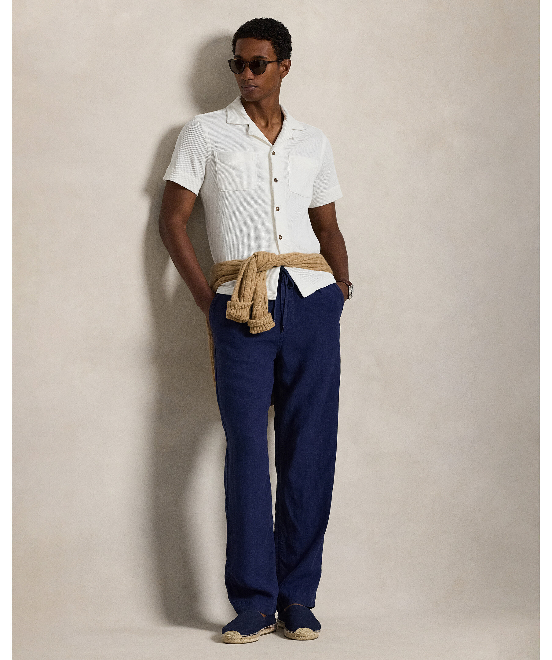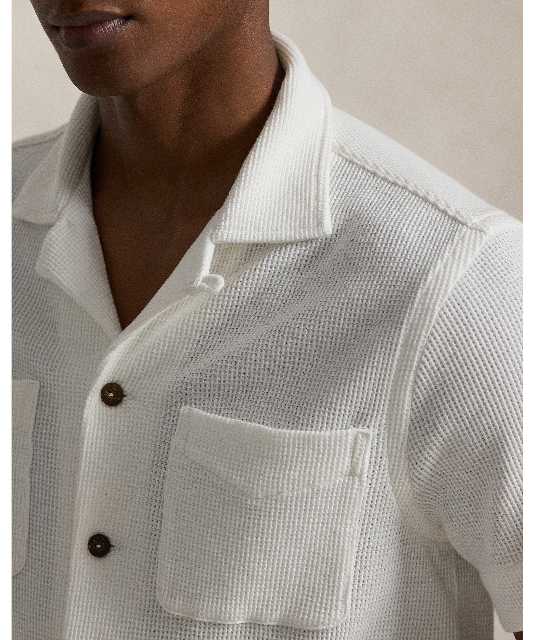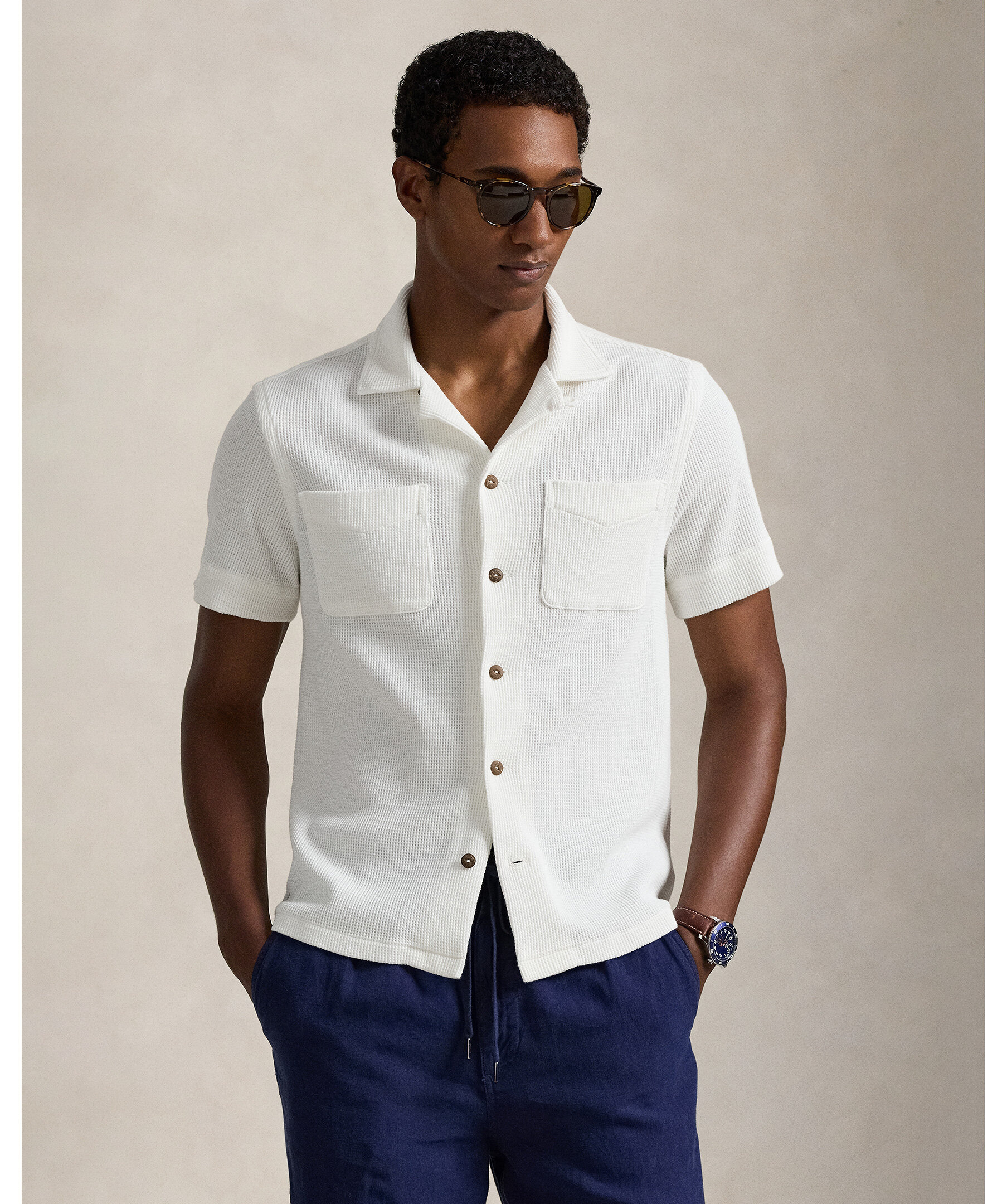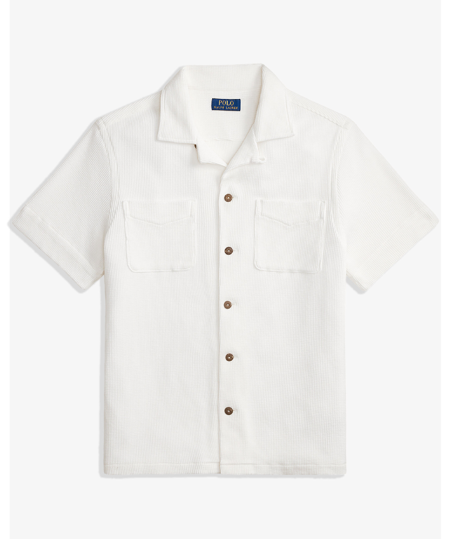 Vit kortärmadskjorta från Polo Ralph Lauren, tillverkad i linne och bomull.