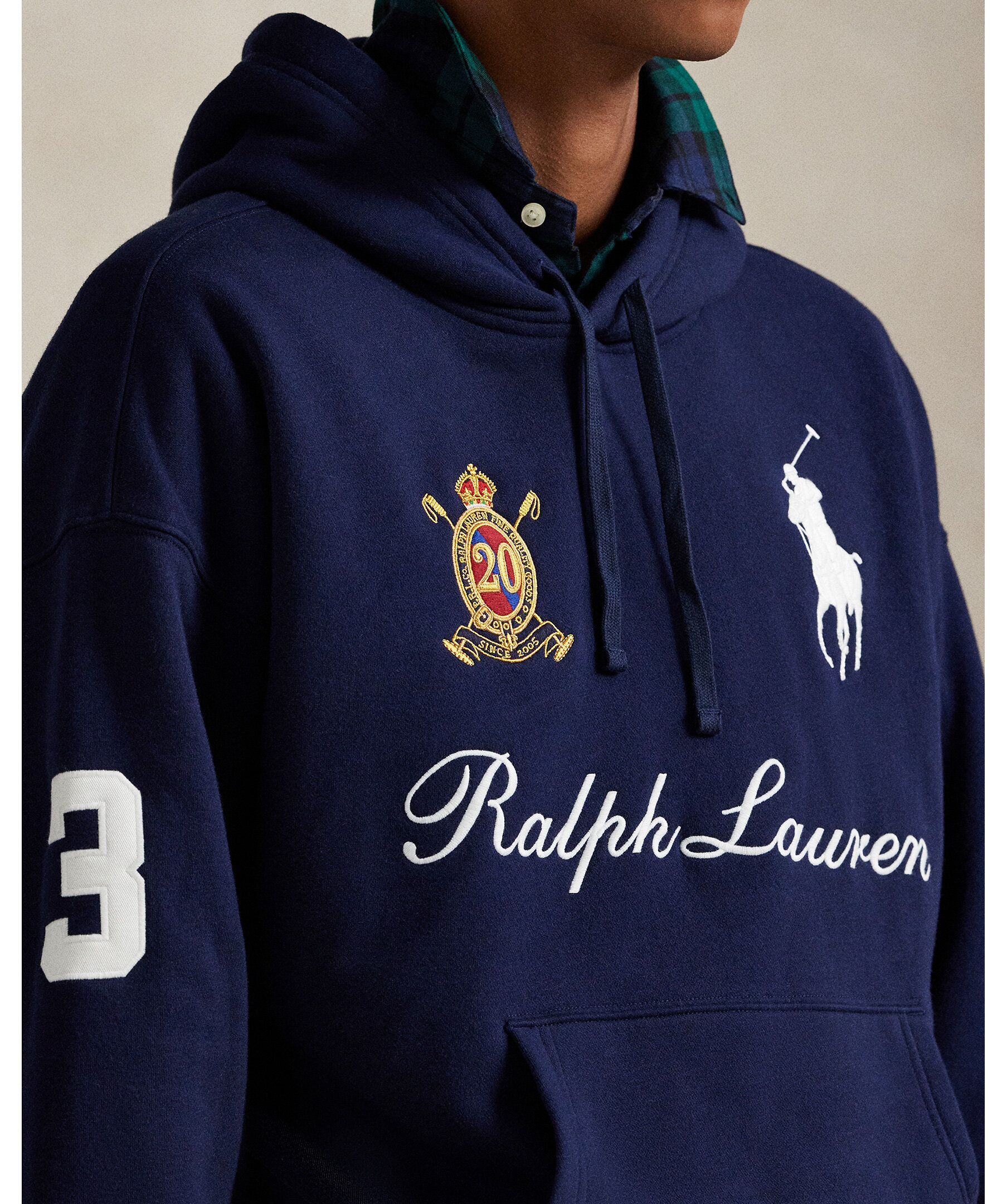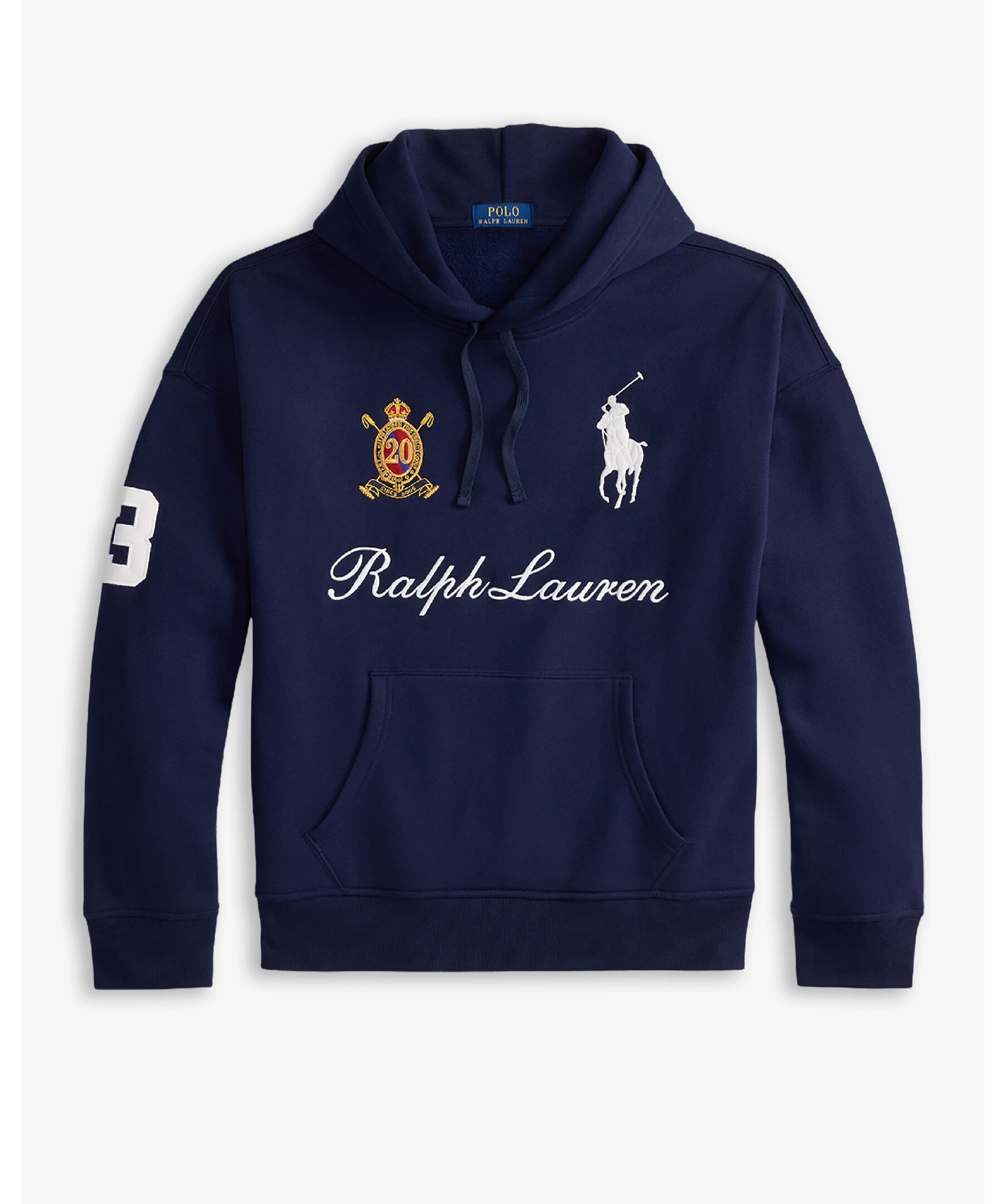 Märklblå hoodie från Polo Ralph Lauren med Big Pony 20th Anniversary‑broderi och hyllning till 20 år av den ikoniska Big Pony‑kollektionen. Tröjan har huva med dragsko, känguruficka och ribbade muddar för en bekväm, casual look perfekt för vardagsbruk.