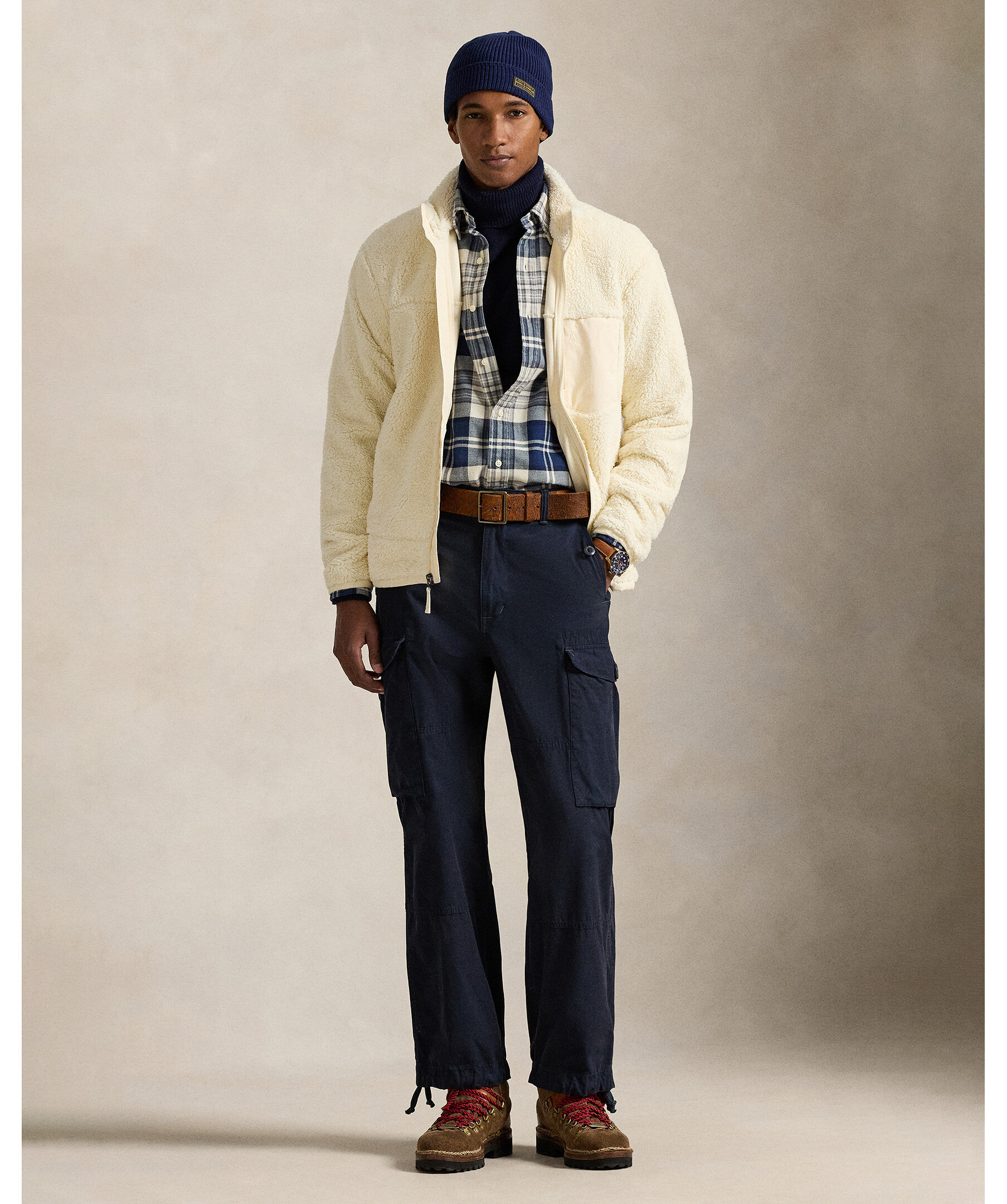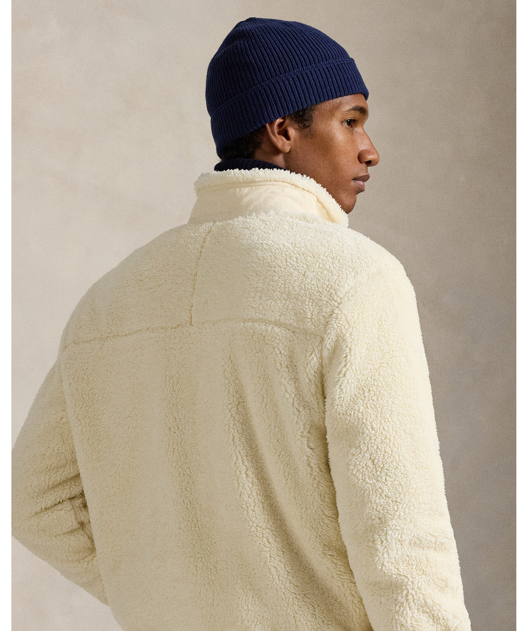 Krämvit fleece‑hybridjacka från Ralph Lauren med mjuk high‑pile fleece och strukturerade mesh‑paneler för en robust, sportig look. Jackan har ståkrage, dragkedja fram och praktiska fickor — ett perfekt mellanlager för kyligare dagar.