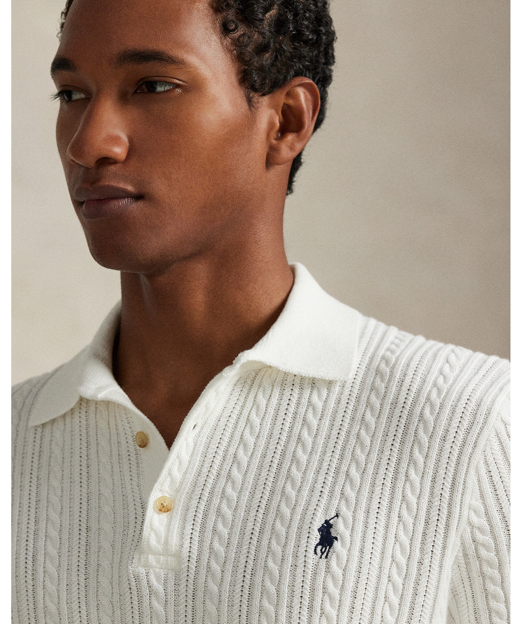 Stickad vit pikétröja från Polo Ralph Lauren.