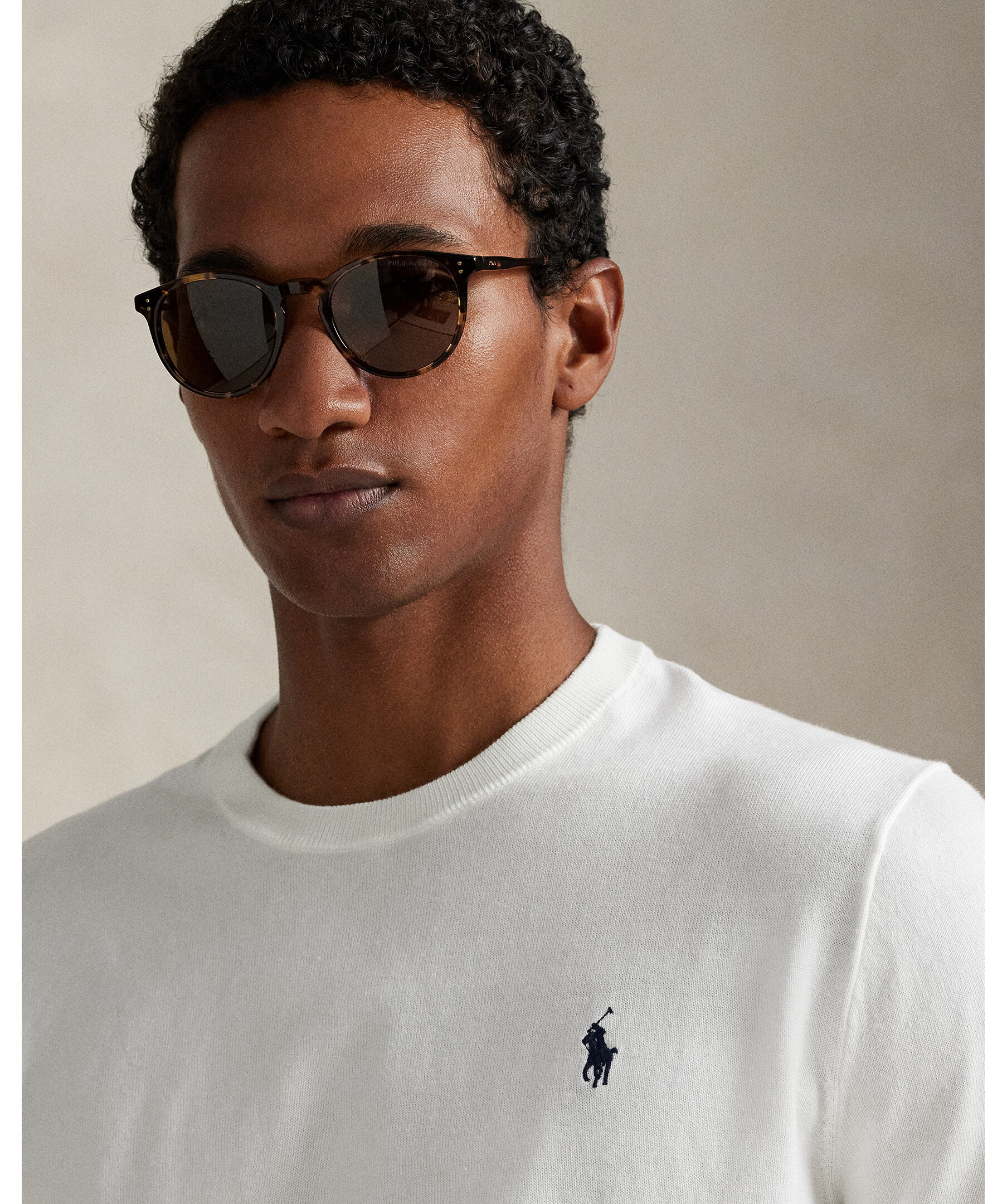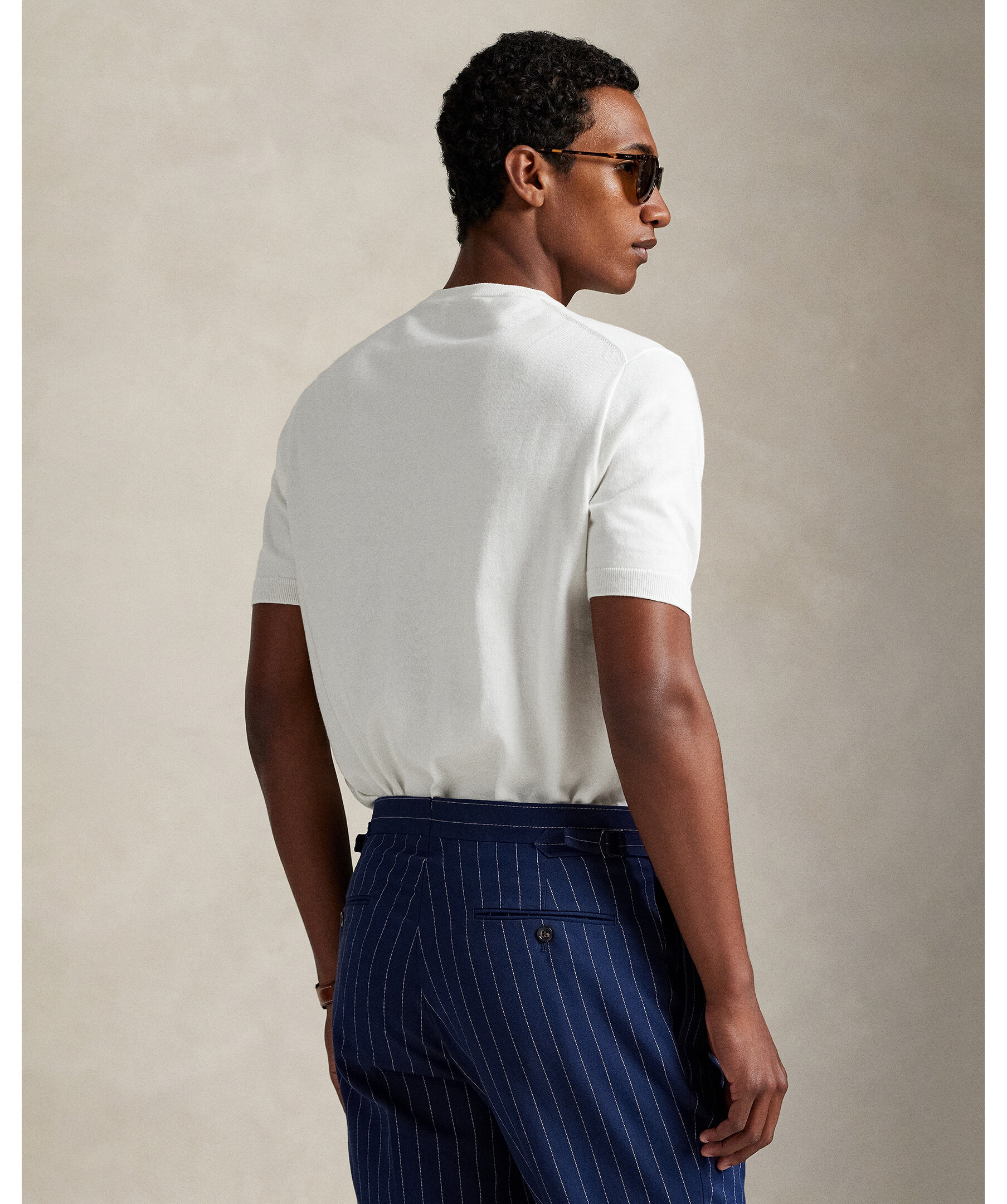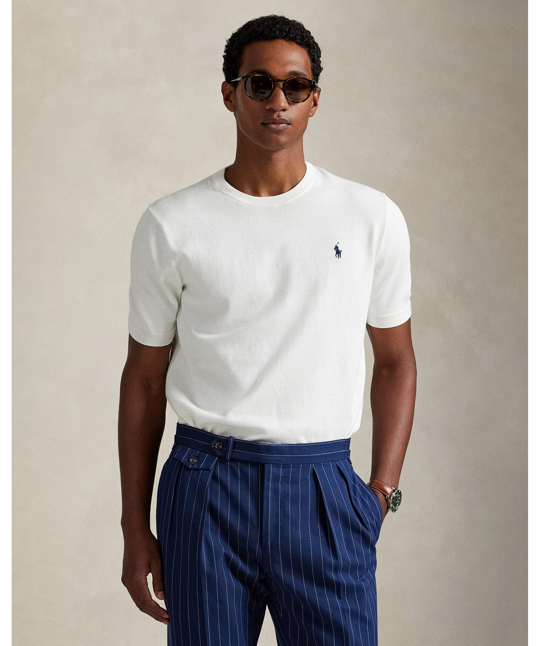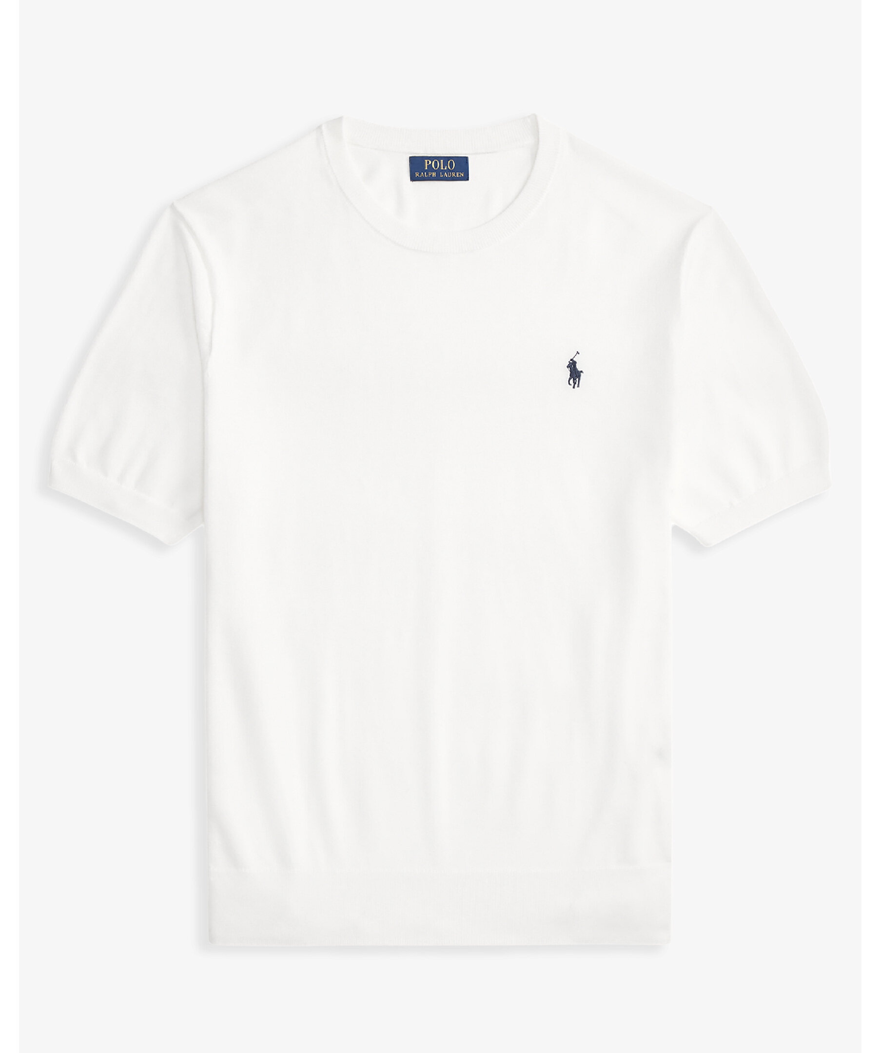 Vit finstickad t-shirt från Polo Ralph Lauren. T-shirt med kammat bomullsgarn och en sofistikerad finstickad konstruktion. Signaturbroderat ponnymönster på vänster bröst ger en distinkt finish.