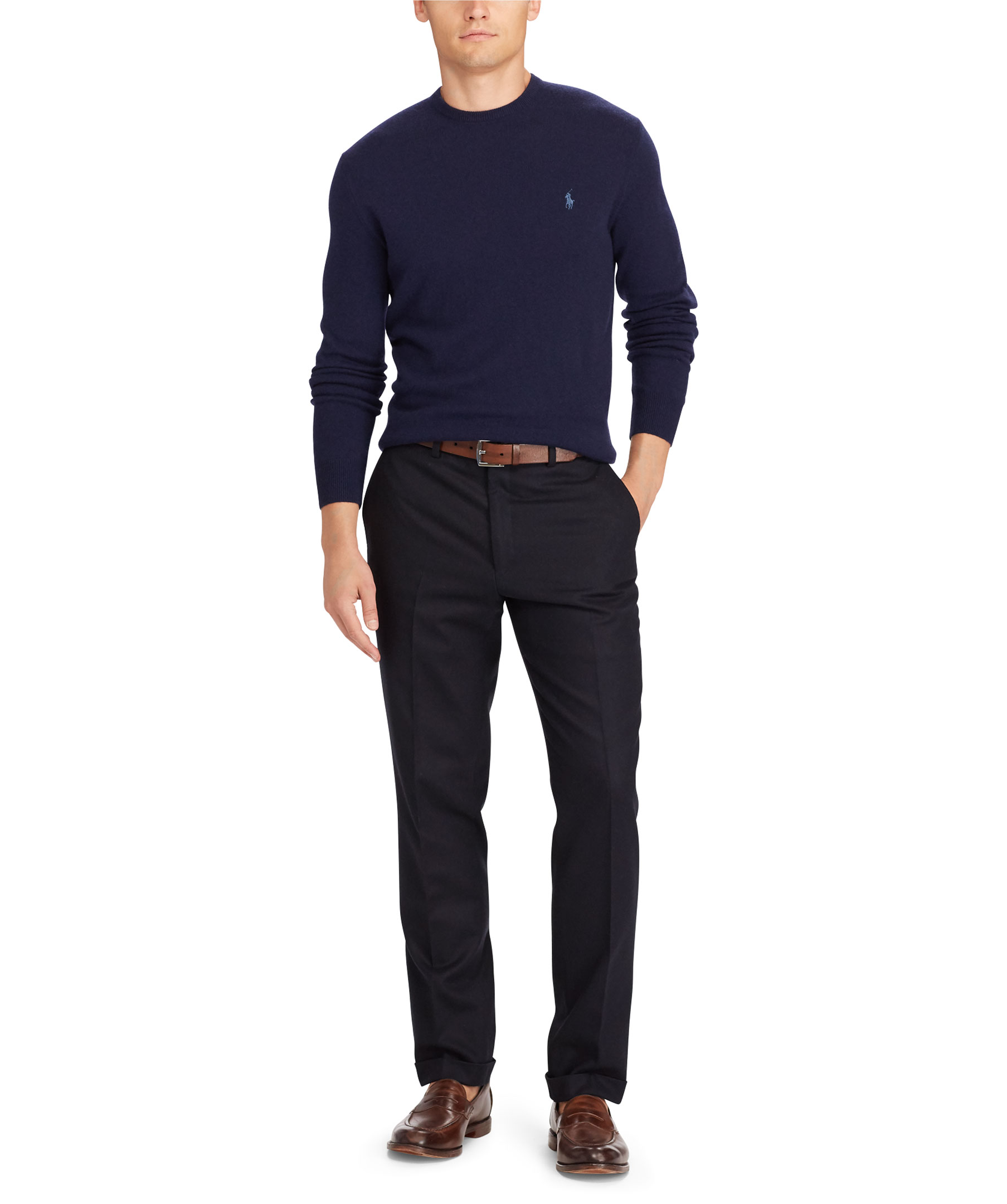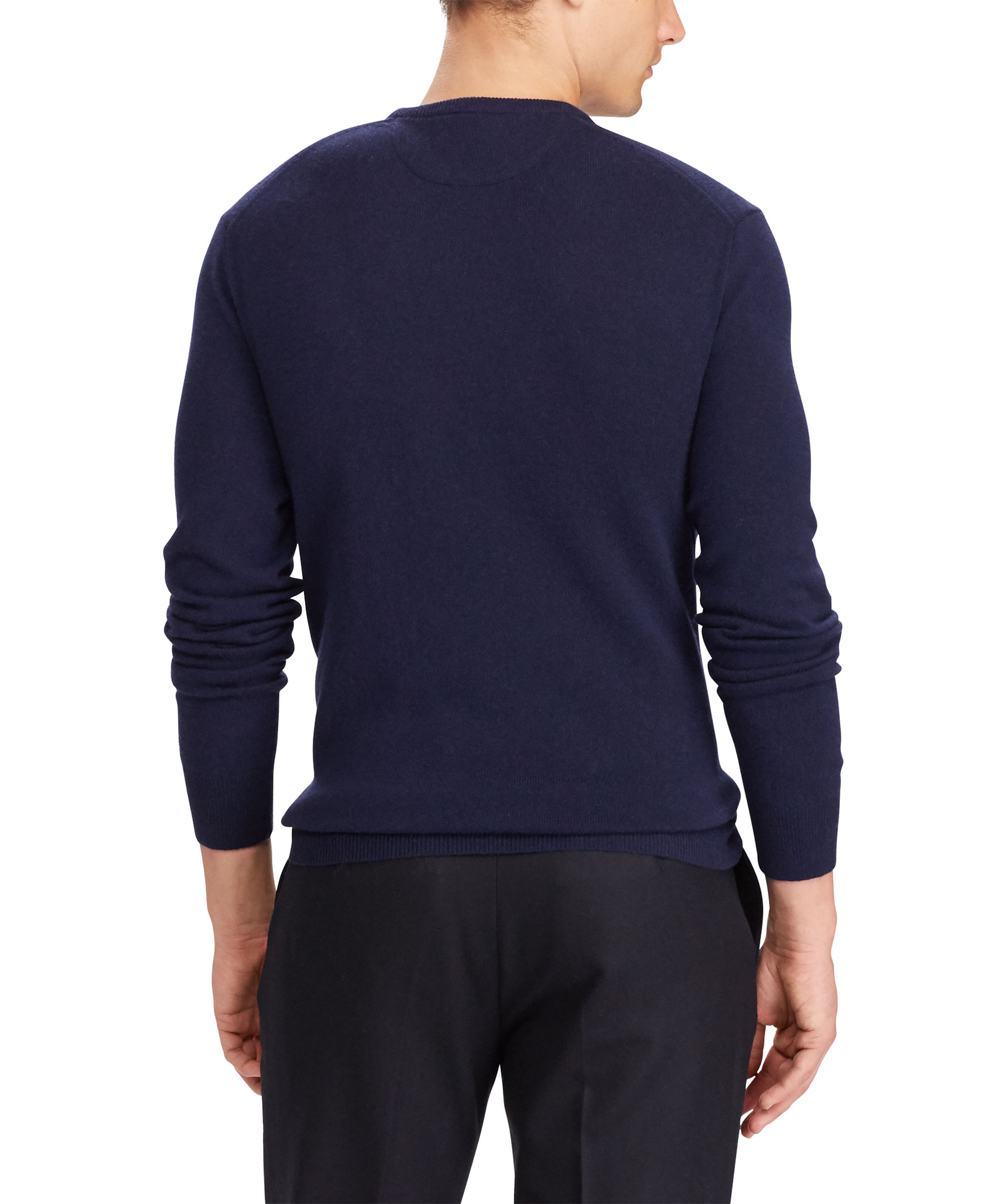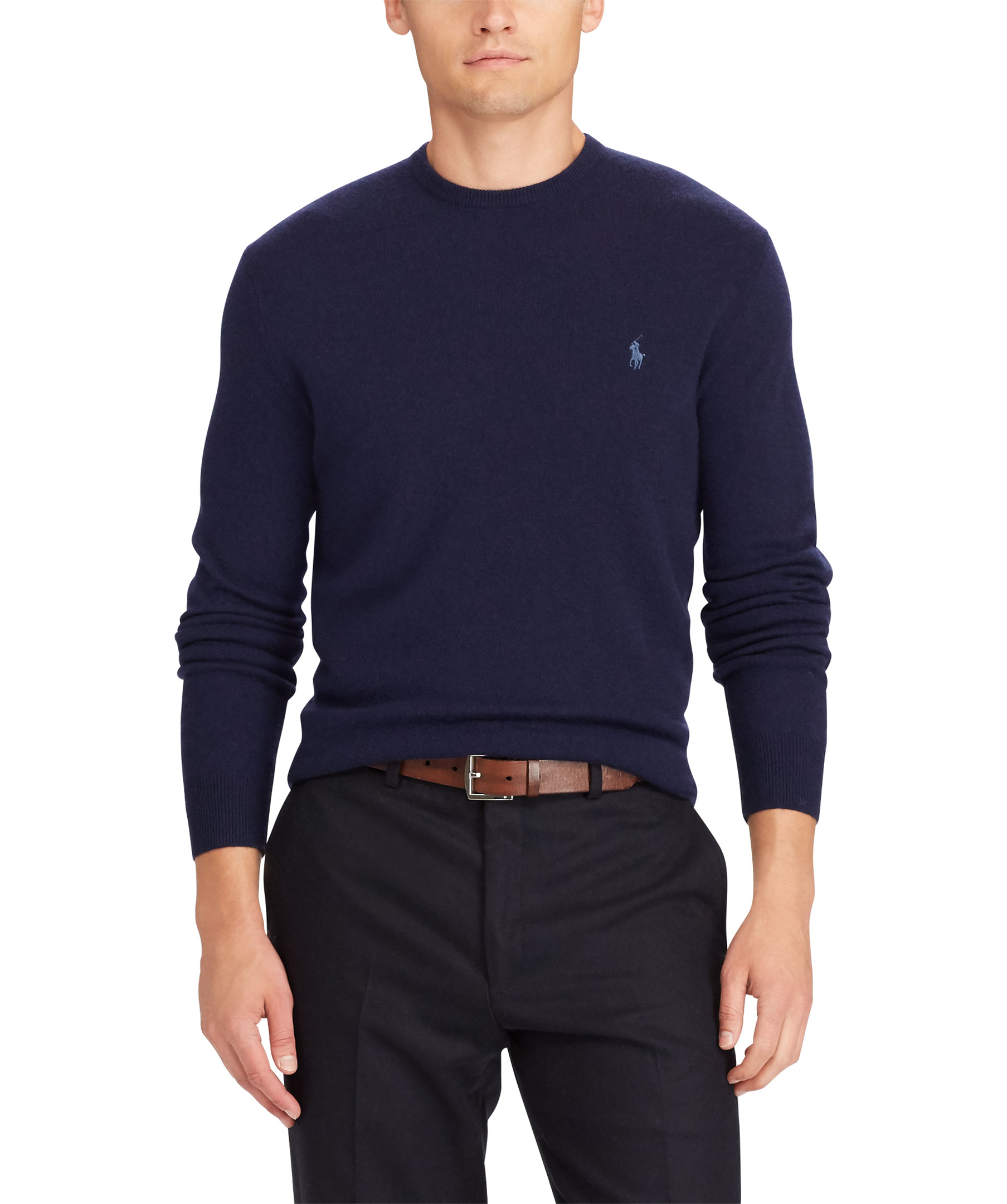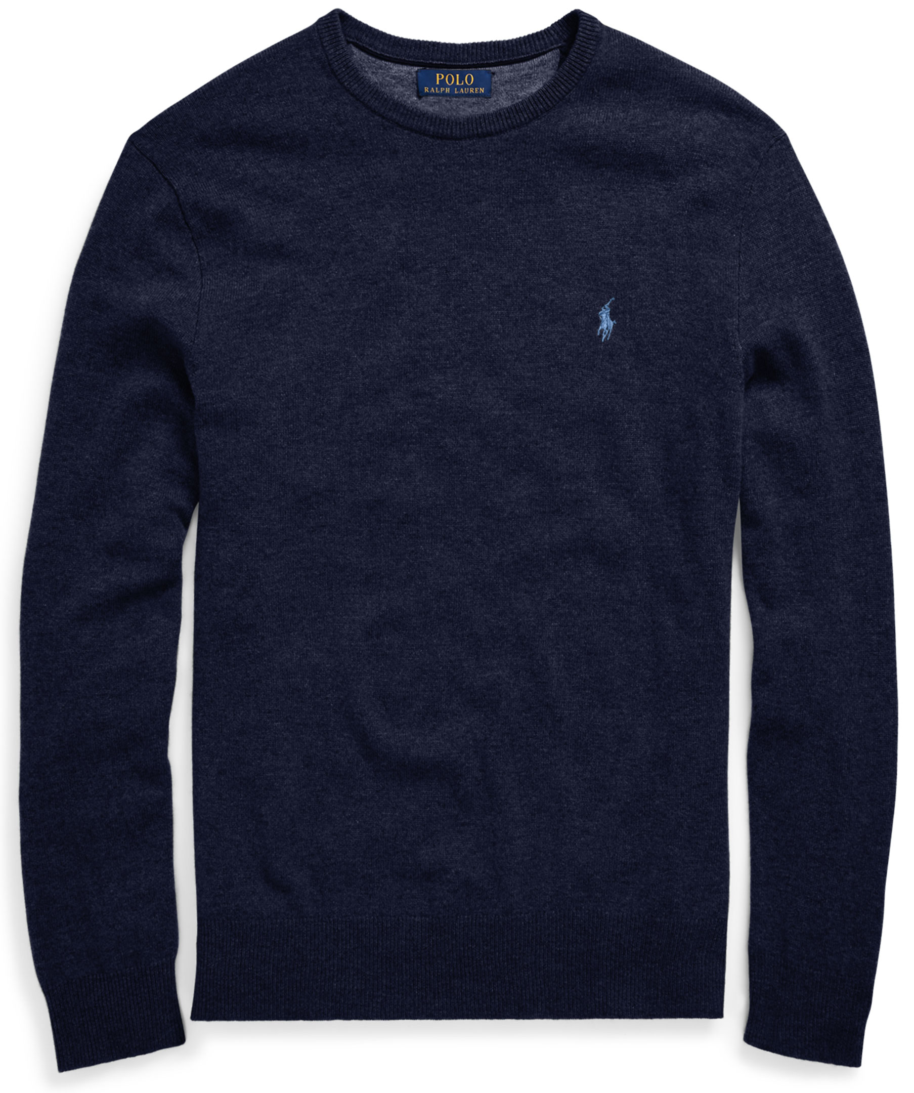 Marinblå stickad tröja från Polo Ralph Lauren. Tillverkad i merinoull. Broderad logotyp på bröstet, ribbstickade muddar.