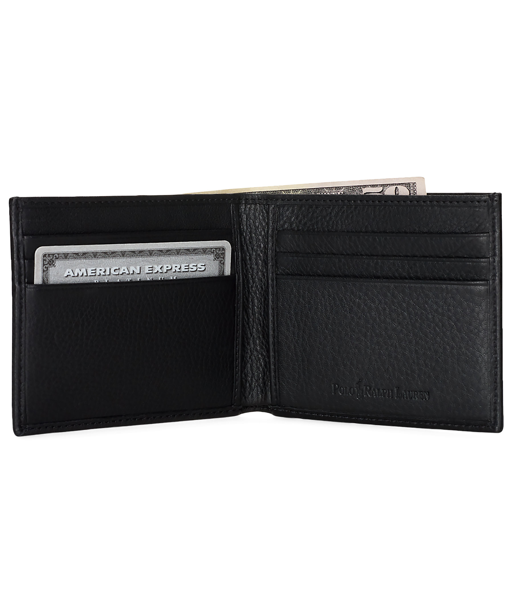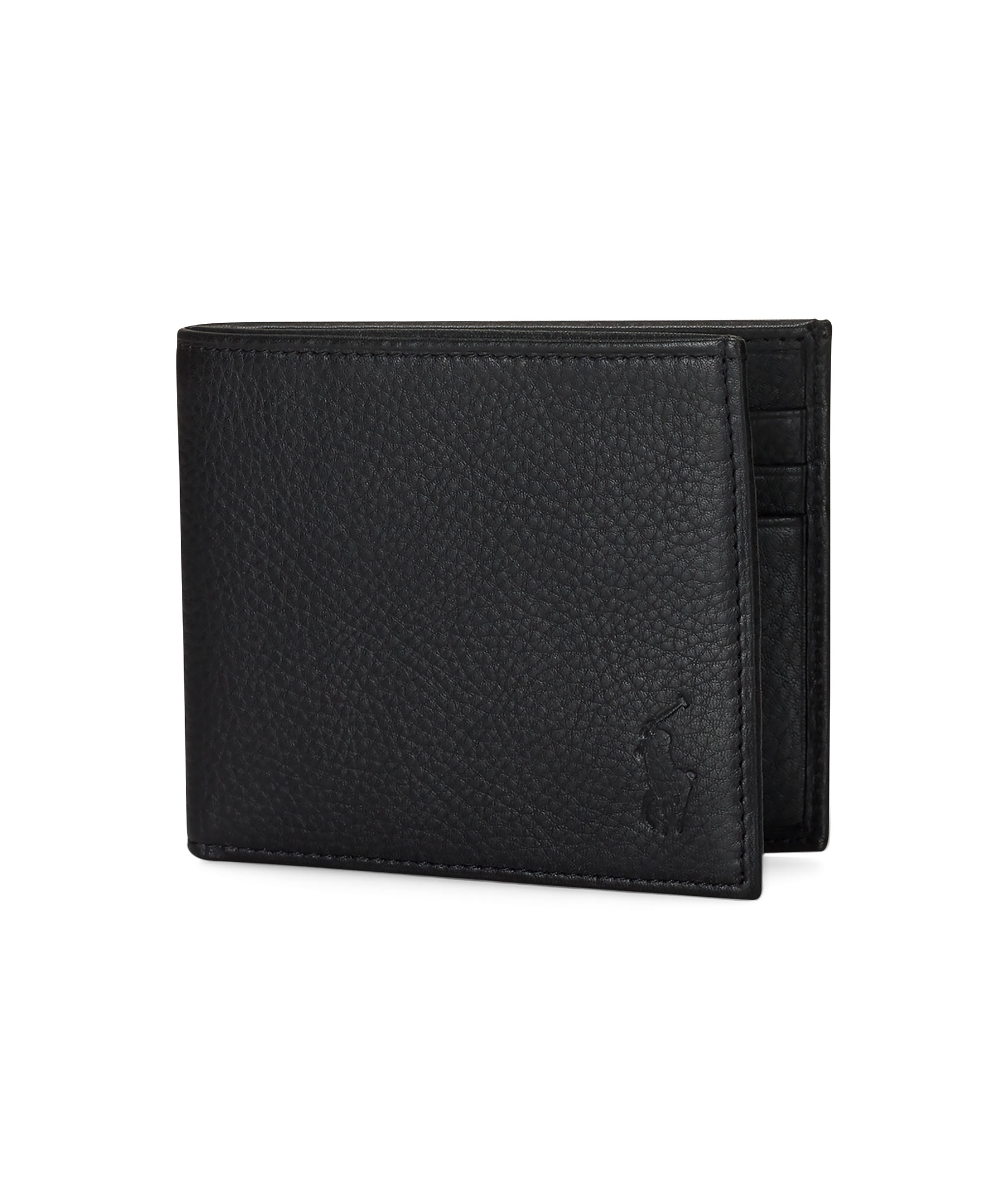 Svart plånbok i läder från Polo Ralph Lauren. Präglad logga framtill, sex platser för kontokort samt plats för sedlar. Tillverkad i läder.