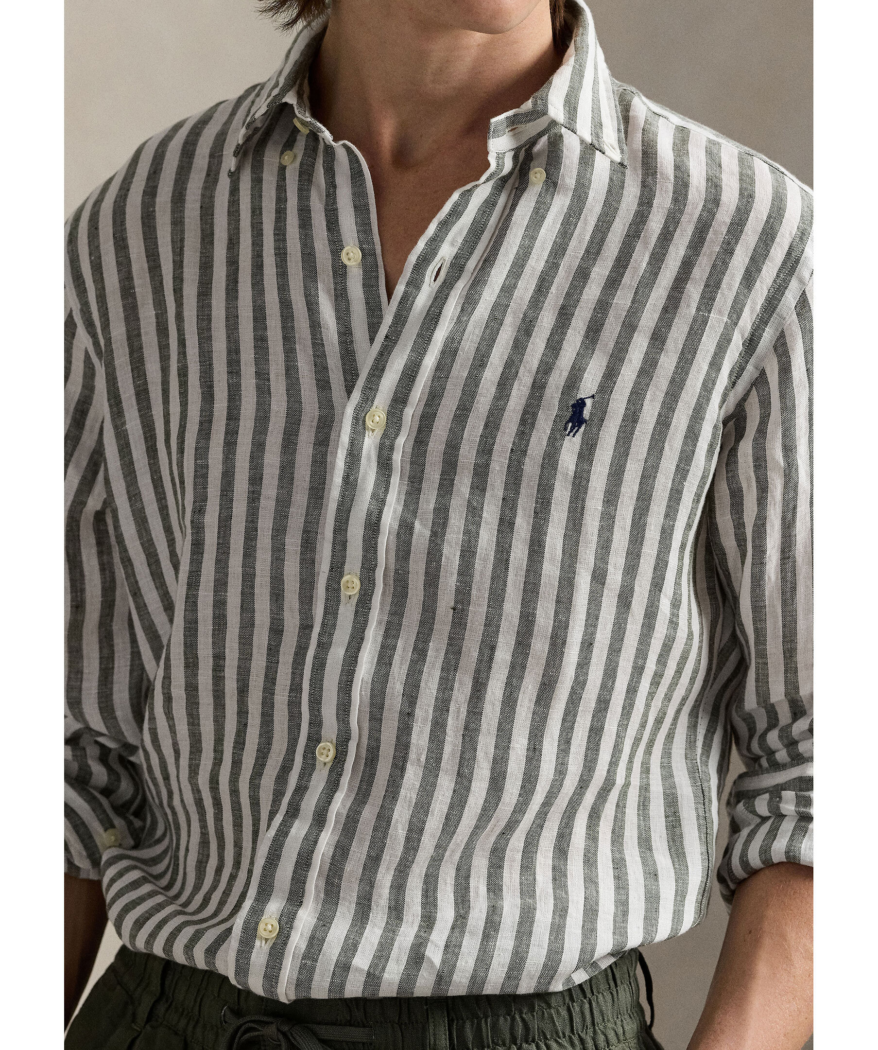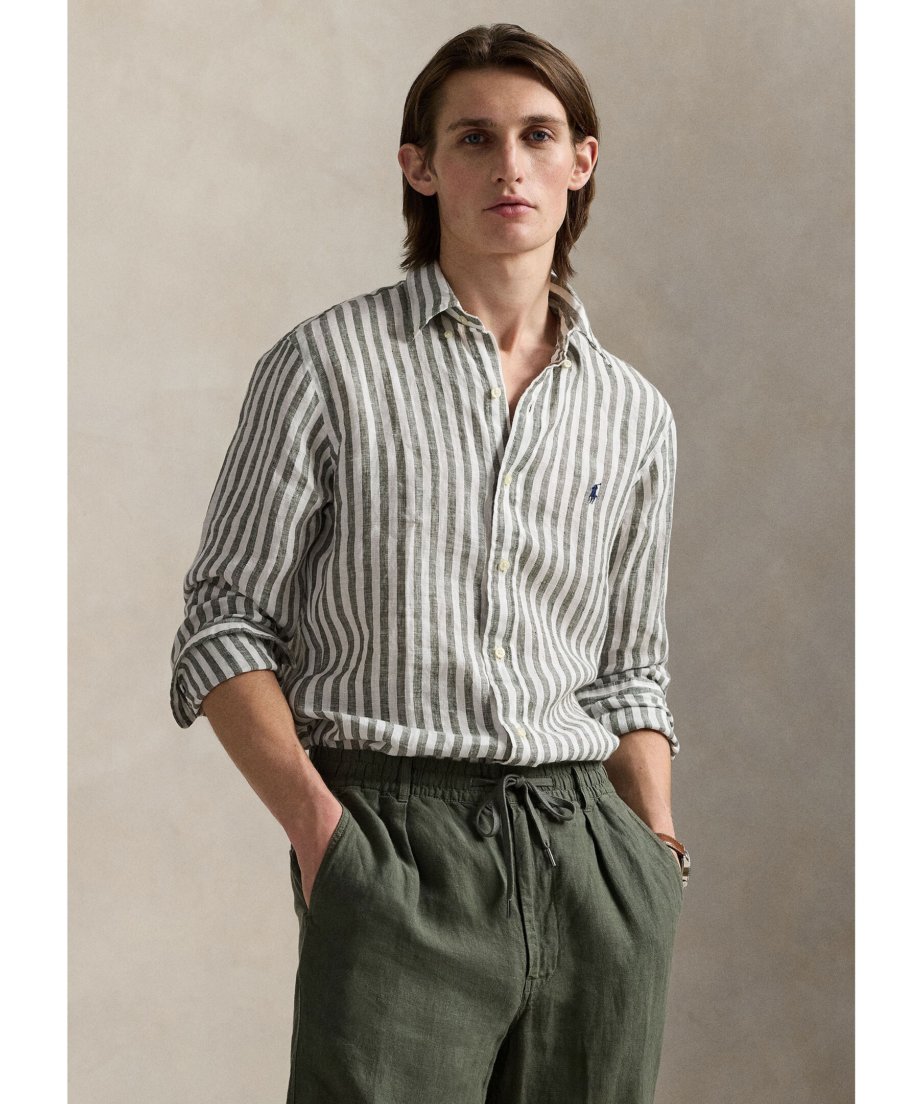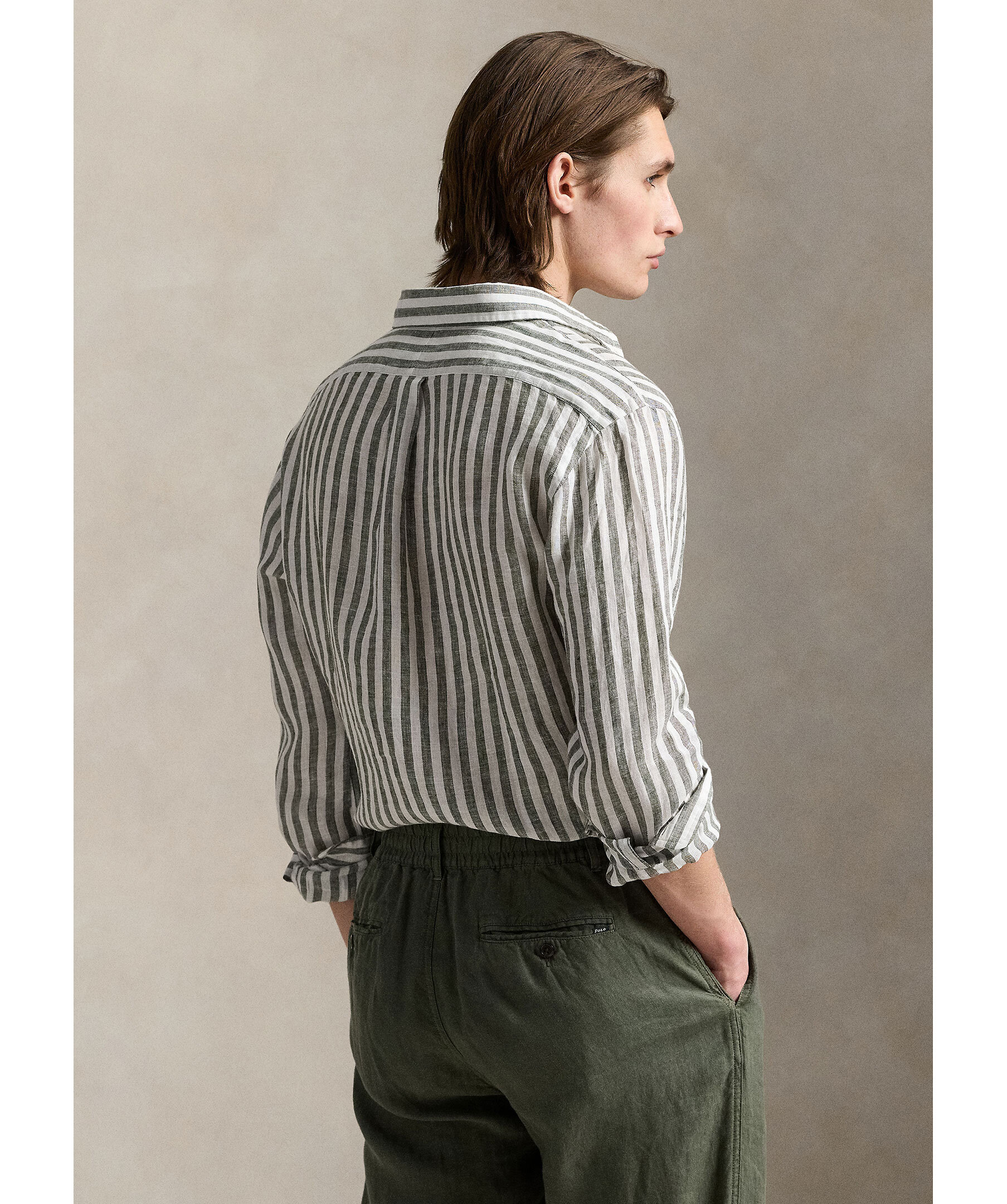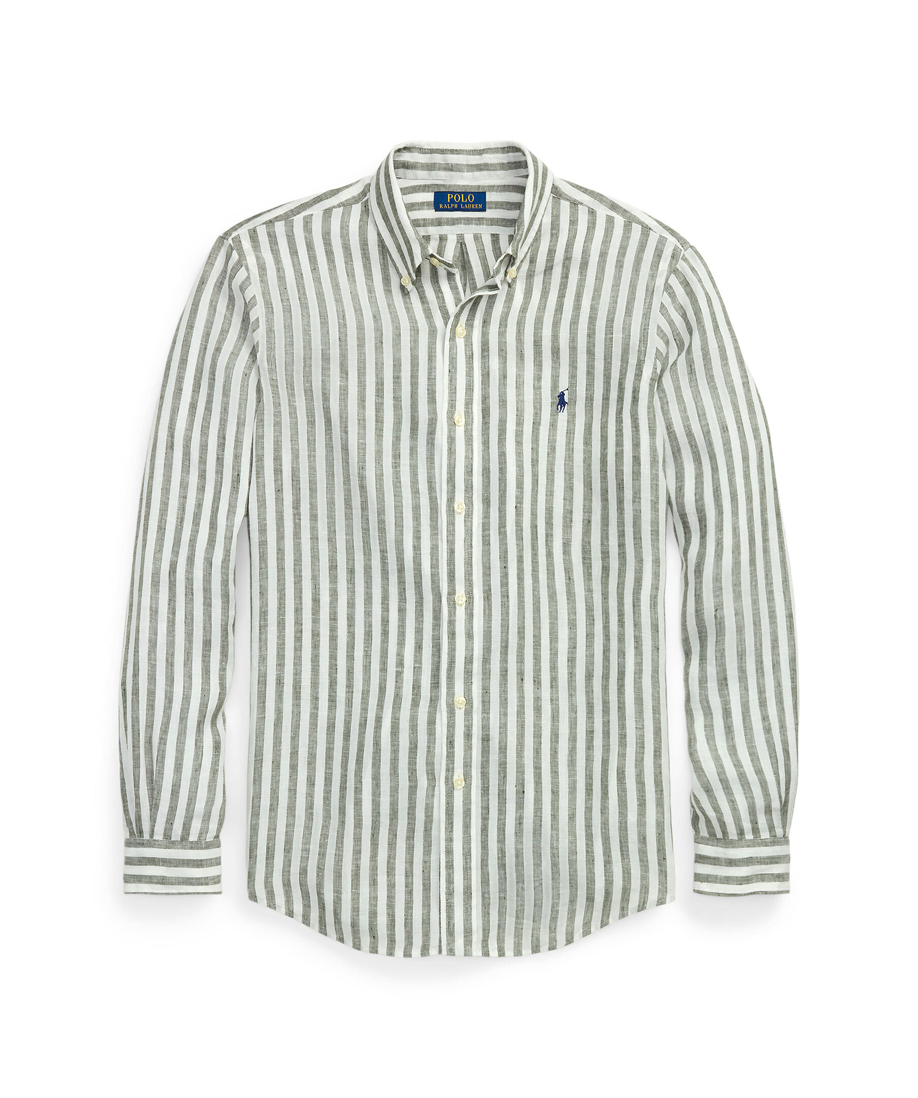 Grönrandig linne skjorta från Polo Ralph Lauren. Skjortan har button down-krage och rundade avslut. Broderad liten logotyp på bröstet. Tillverkad av linne.