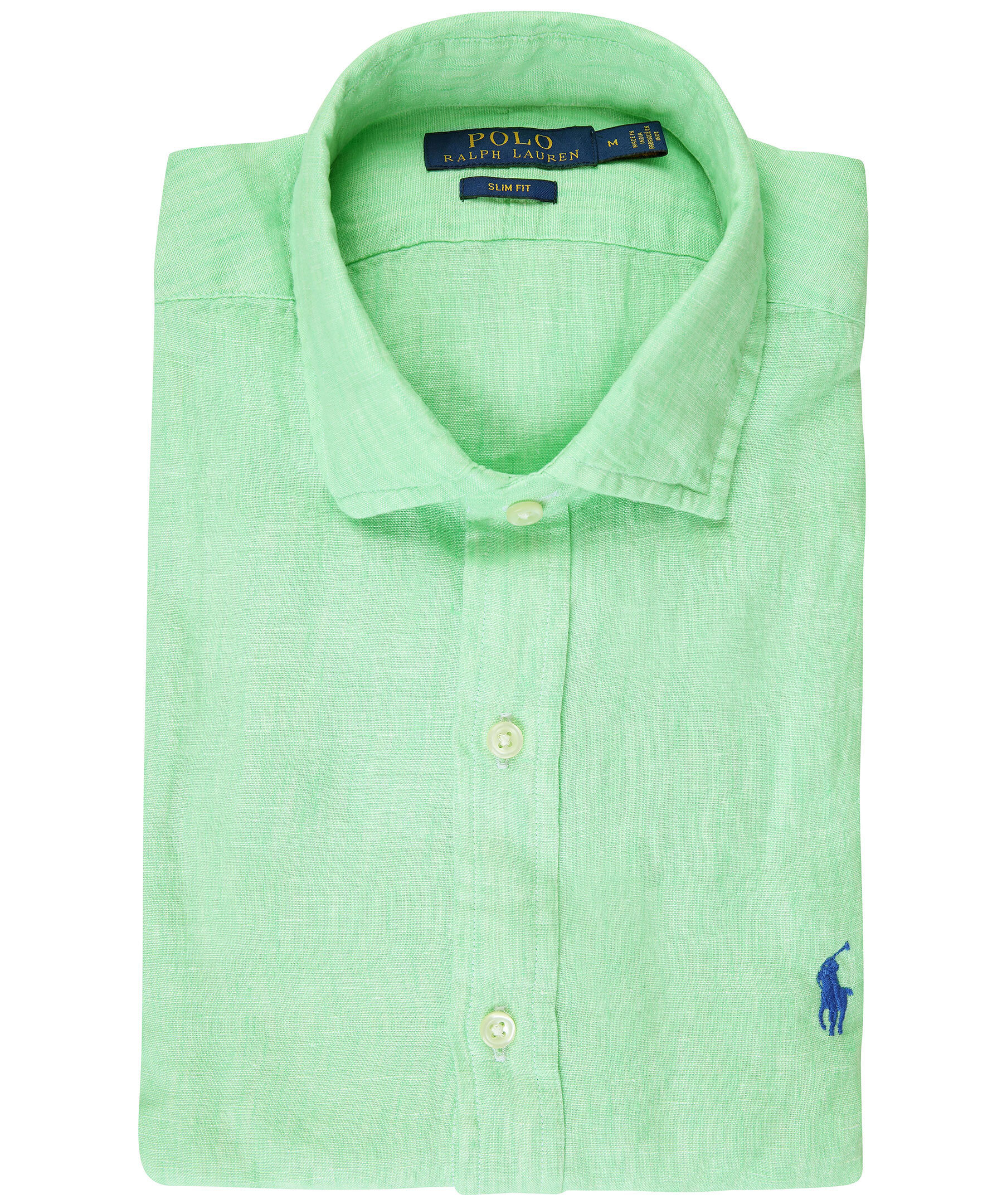 Neongrön linneskjorta i slim fit från Polo Ralph Lauren. Klassisk skjorta tillverkad i linne. Button down krage och broderad logotyp på sidan av bröstet.