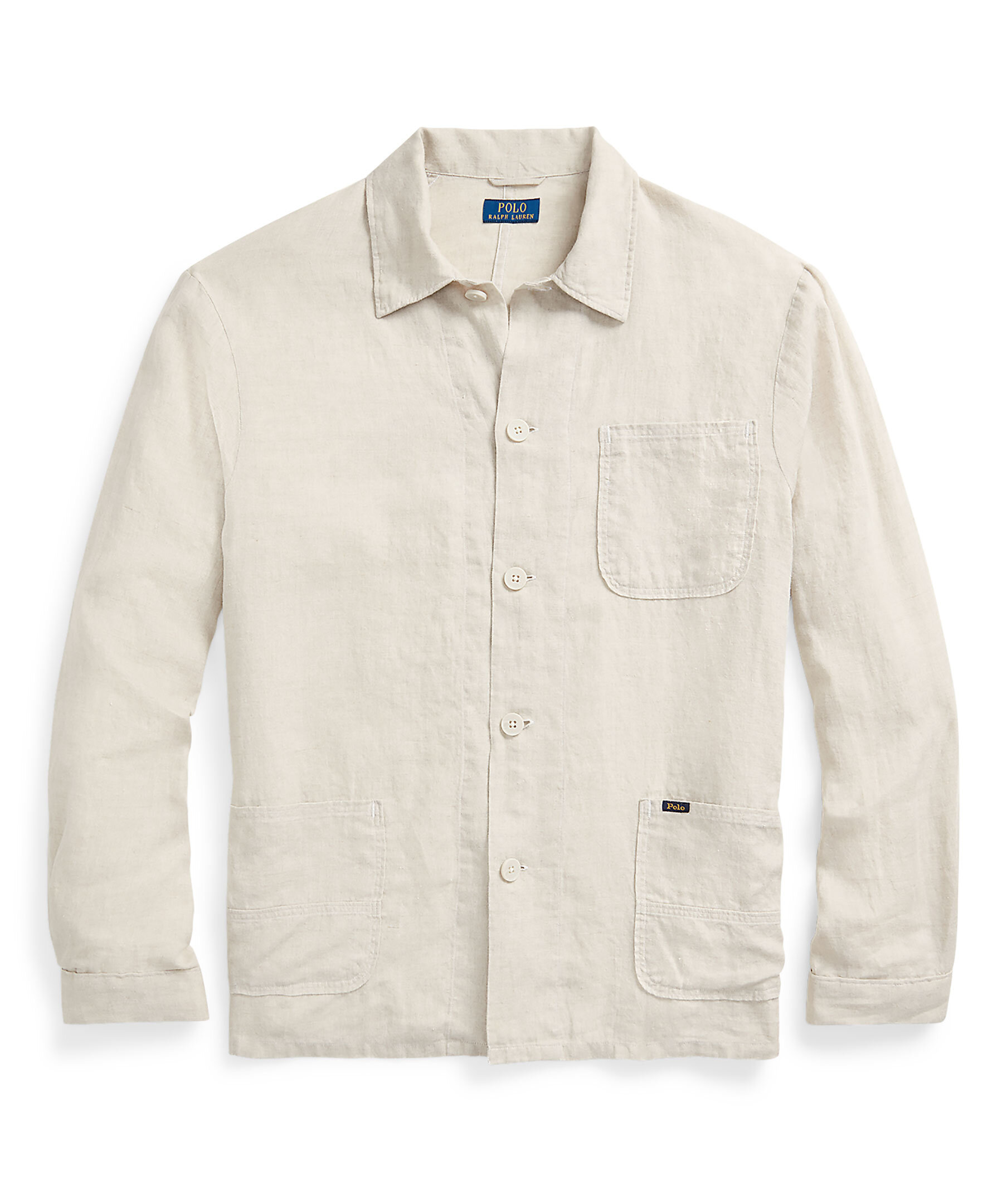 Beige overshirt från Polo Ralph Lauren. Tillverkad i linne. Stora ljusa knappar, klassisk krage, två stora patchfickor och en bröstficka. *Linne och bomull *Stora knappar * Tre fickor