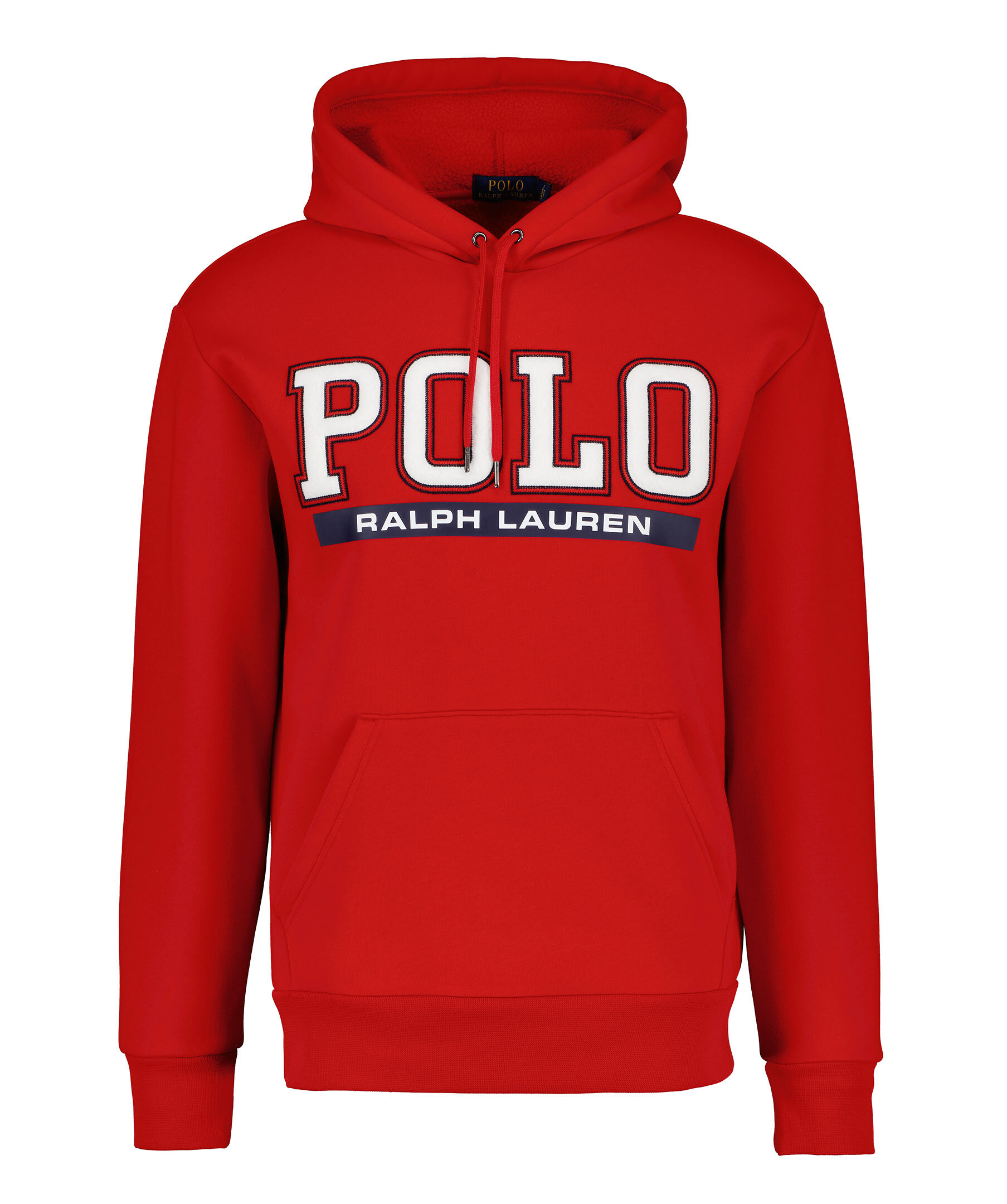 Röd hoodie från Polo Ralph Lauren. Luva med dragsko. Tryckt och broderad logotyp över bröstet. Ribbstickade muddar i ärm- och plaggslut. Känguruficka på magen. Tillverkad i bomullsblandning.