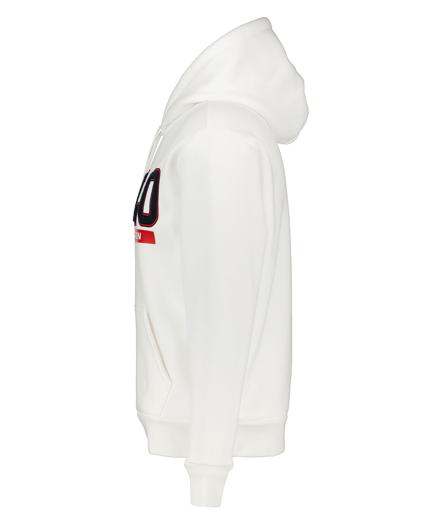 Vit hoodie från Polo Ralph Lauren. Luva med dragsko. Tryckt och broderad logotyp över bröstet. Ribbstickade muddar i ärm- och plaggslut. Känguruficka på magen. Tillverkad i bomullsblandning.