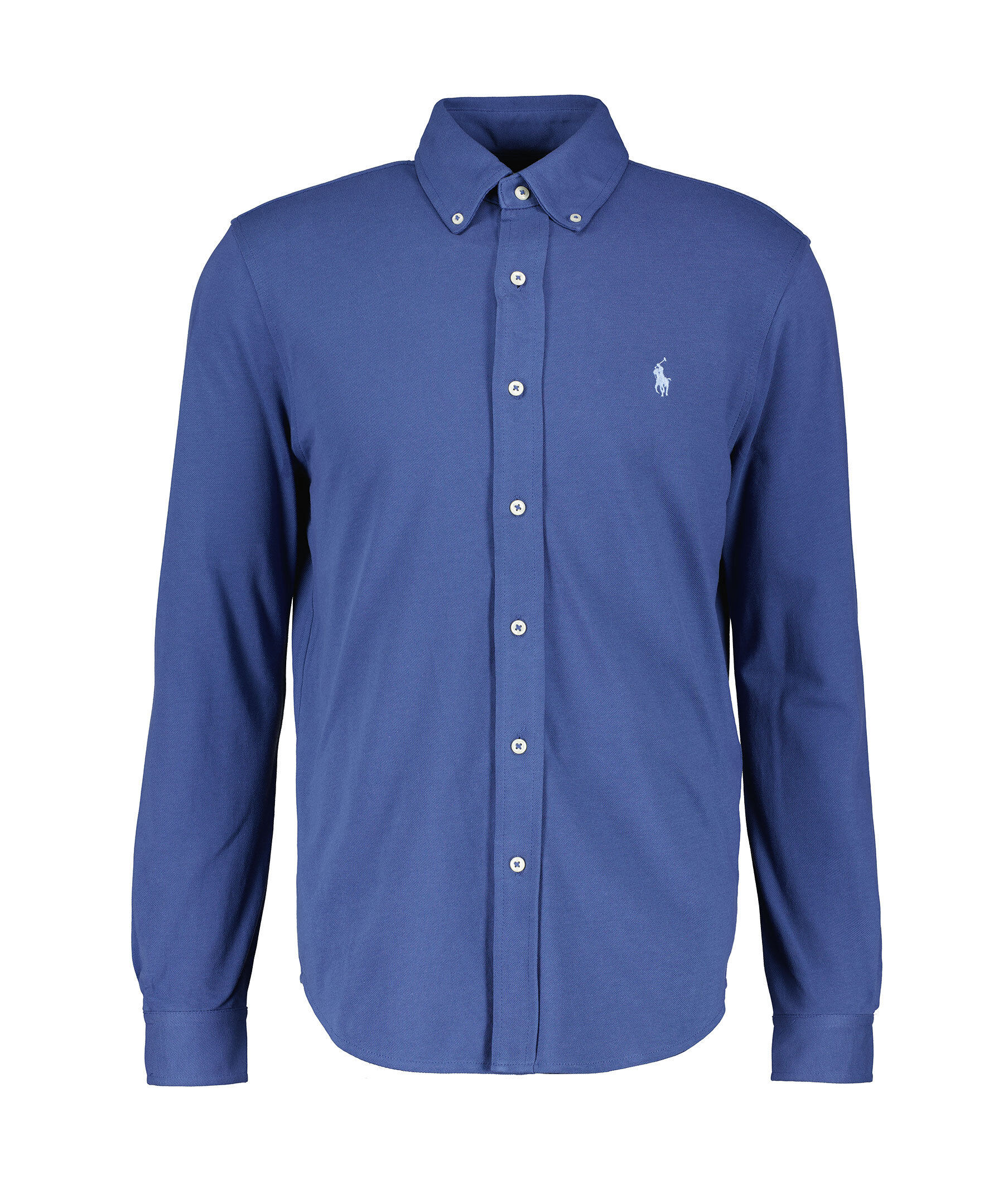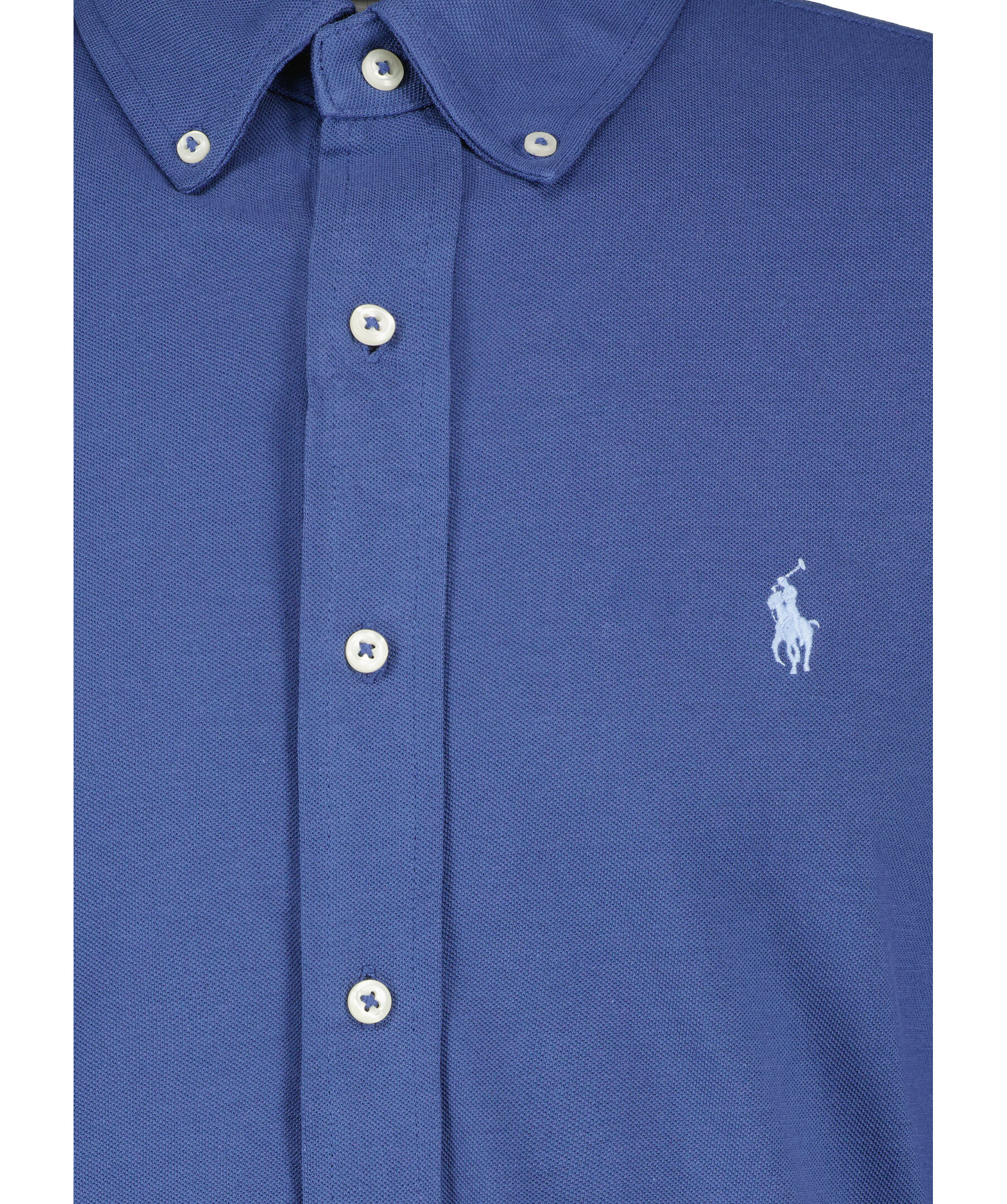 Blå bomullsskjorta med button-down krage från Polo Ralph Lauren. Knappslå, långa ärmar med manschetter. Broderad logotyp på bröstet.