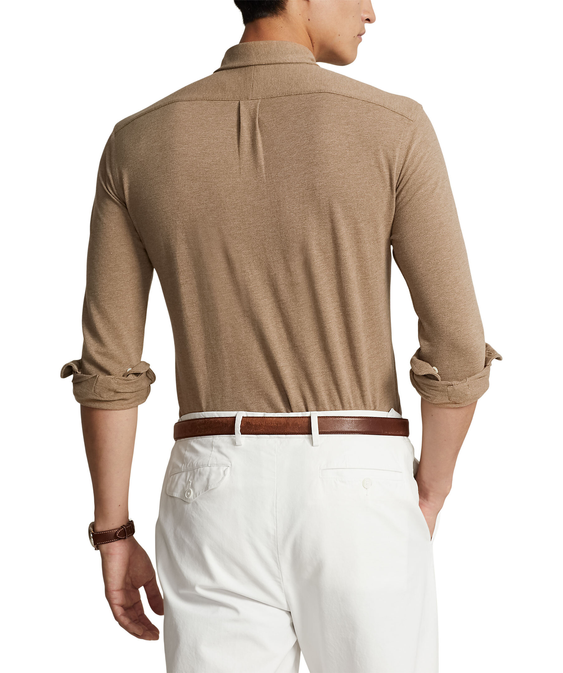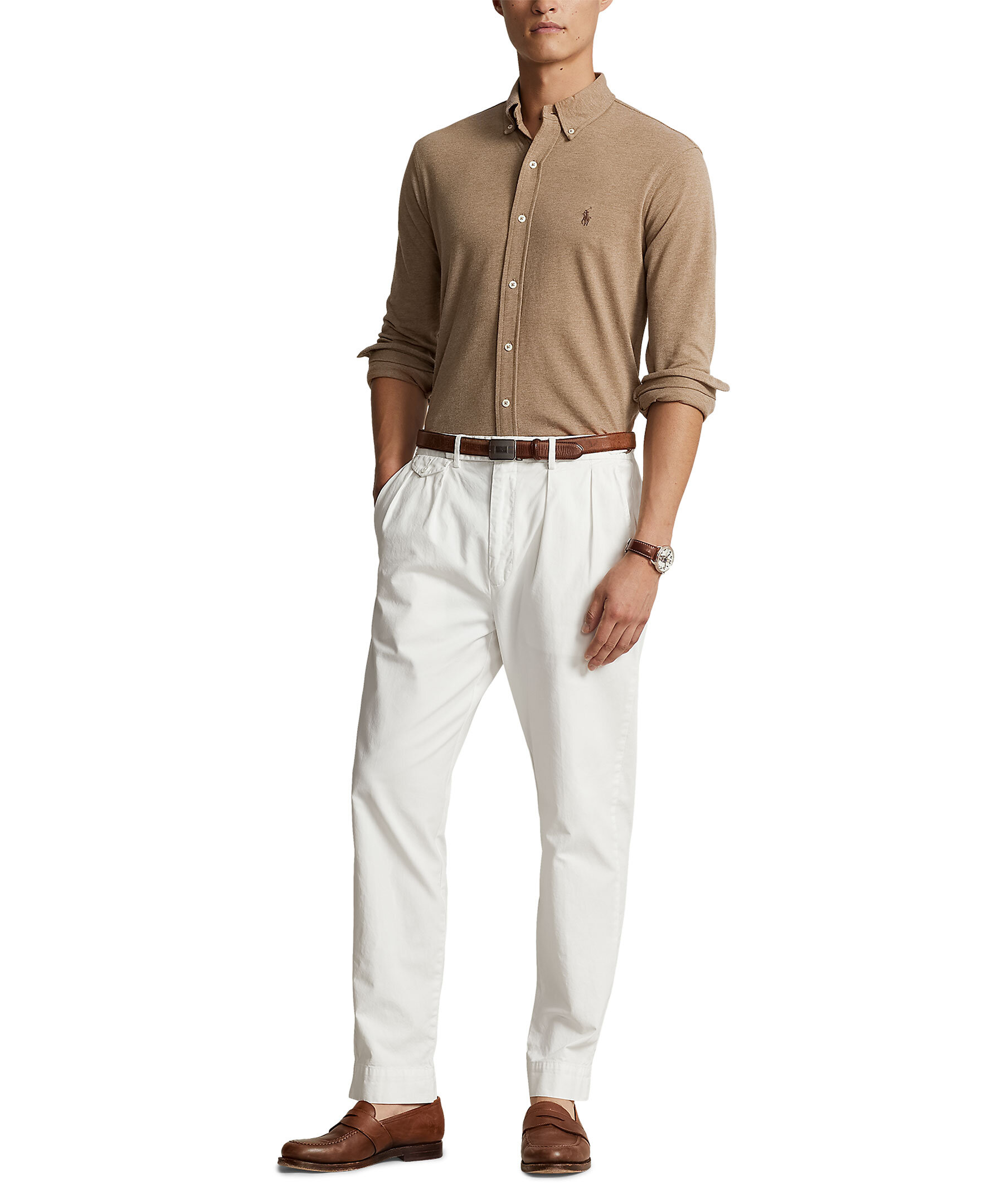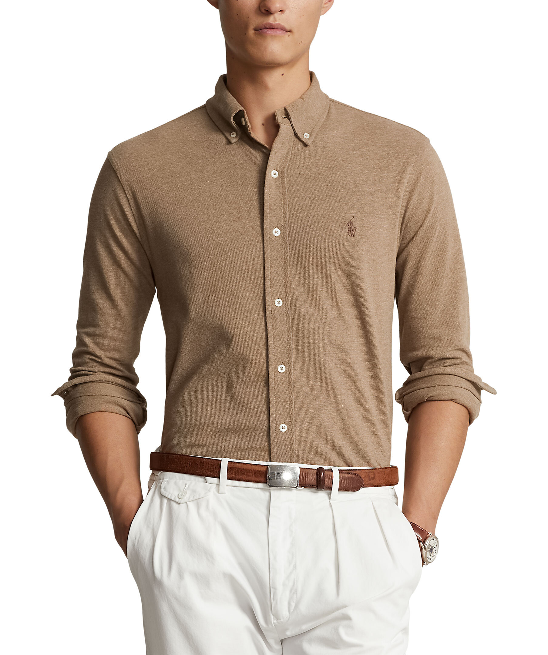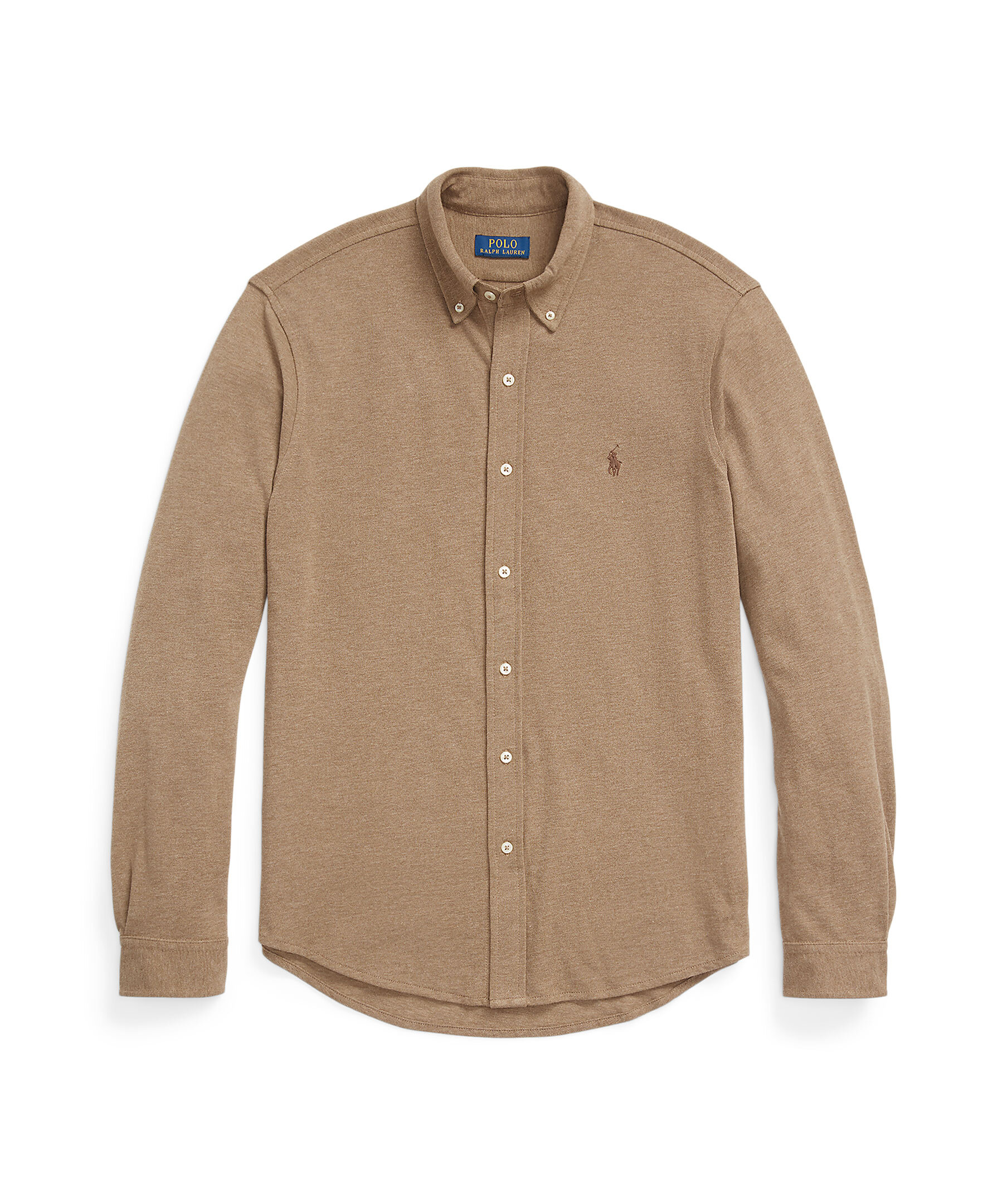 Brun bomullsskjorta med button-down krage från Polo Ralph Lauren. Knappslå, långa ärmar med manschetter. Broderad logotyp på bröstet.