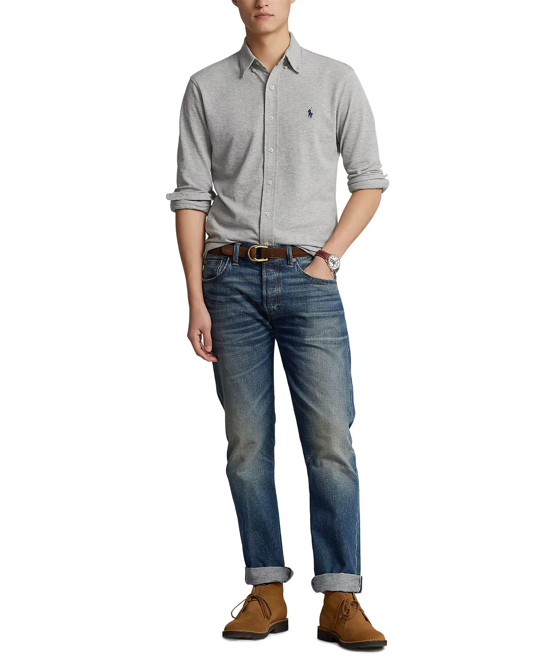 Grå skjorta från Polo Ralph Lauren. Button down krage, broderad logotyp på vänster bröst. Enkla manschetter vid ärmslut. Tillverkad i bomull.