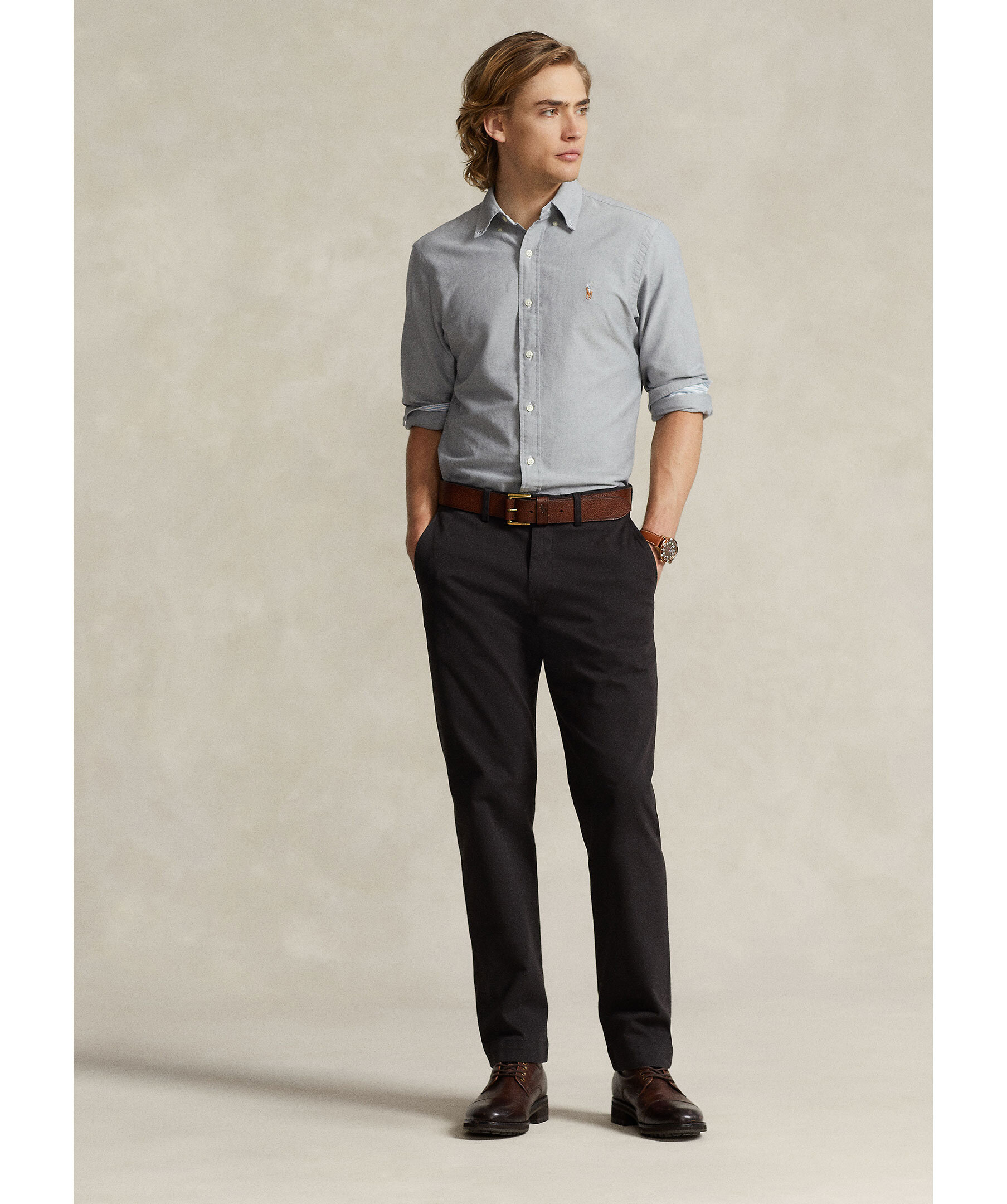 Grå, långärmad skjorta från Polo Ralph Lauren. Skjortan har button-down krage och broderad logotyp på bröstet. Tillverkad i bomull.